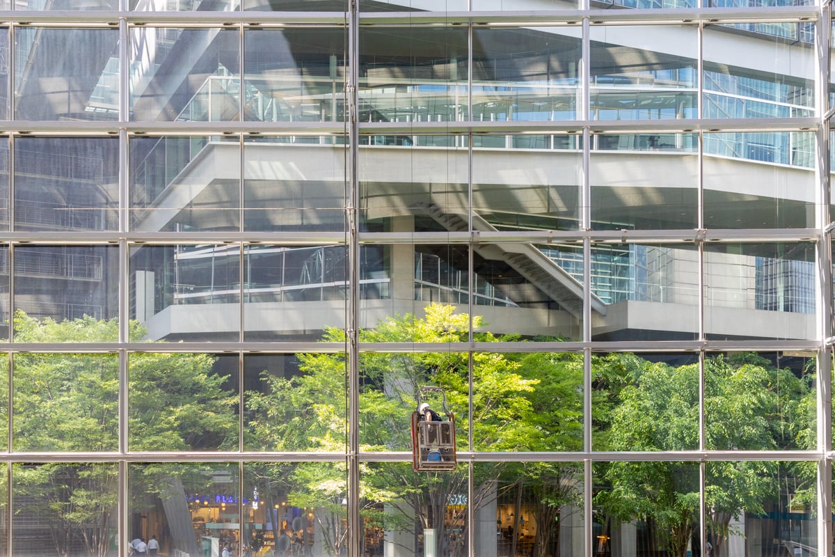 高層ビルの窓は2ヶ月に一度、掃除をするものらしい。