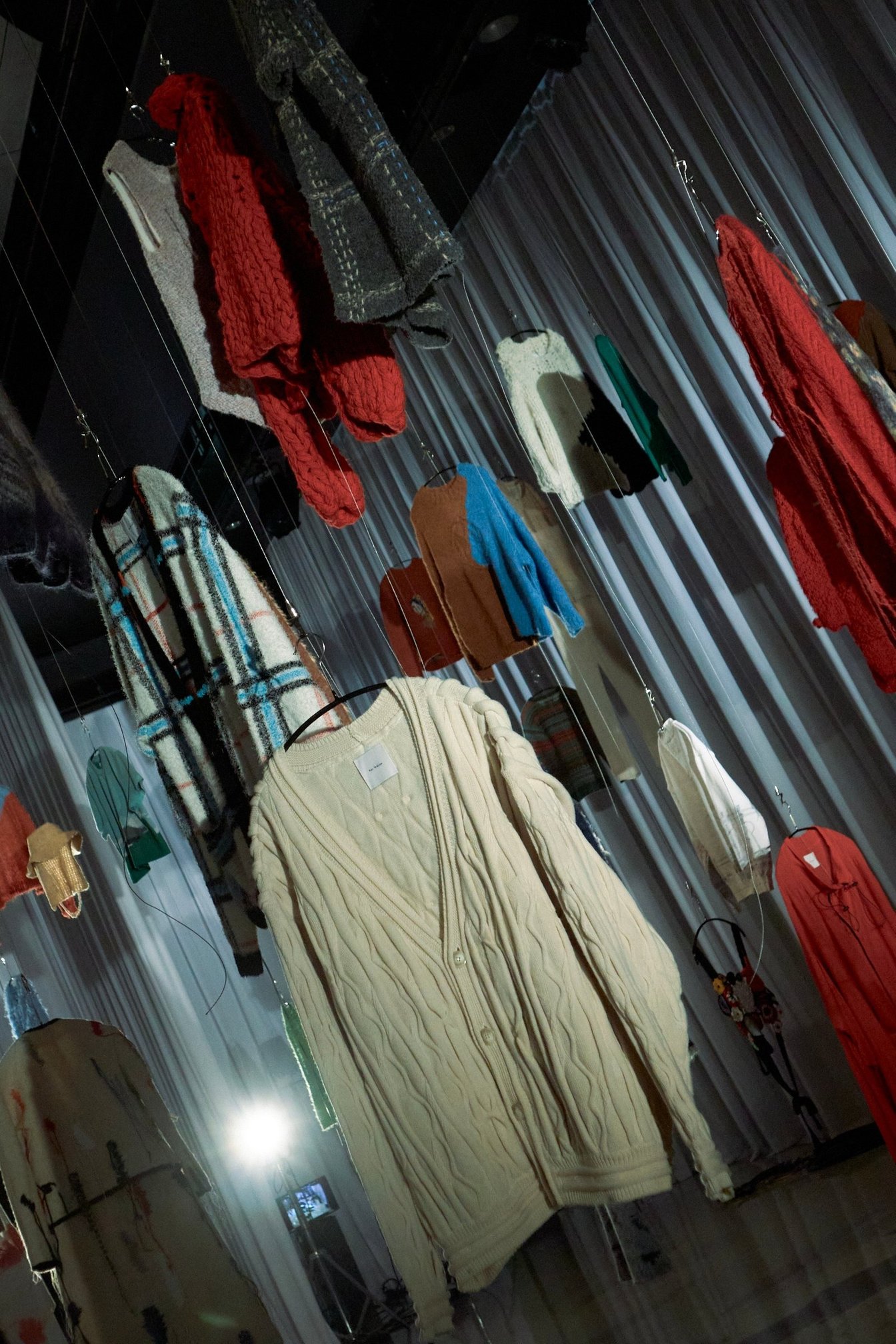話は横道に逸れるが、同ブランドはニットに定評がある。そもそもニットに用いられる毛糸は、他の素材と比べて「編む」「撚る」という動作と密接だ。編むという行為は、彫刻における「彫る」「練る」などの所作にも近く、その昔の人々が信仰の対象として土偶を削り、焼き固めていたように、人の手仕事が生み出す霊性を宿しやすい。ニットという素材に、人々がなんとなく「人のやわらかな温かみ」を感じてしまうのは、毛糸というマテリアルが持つ特性が大きいだろう。