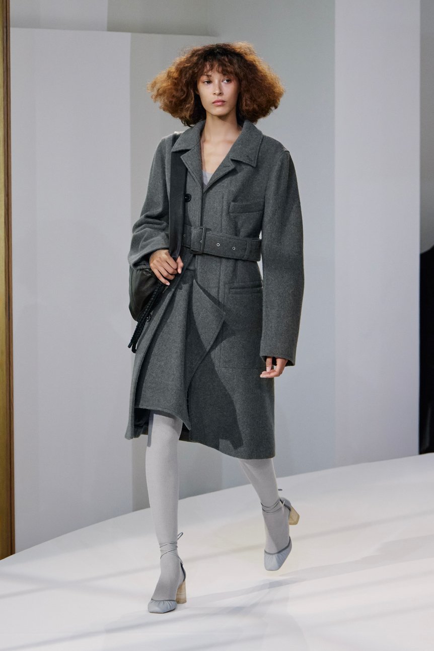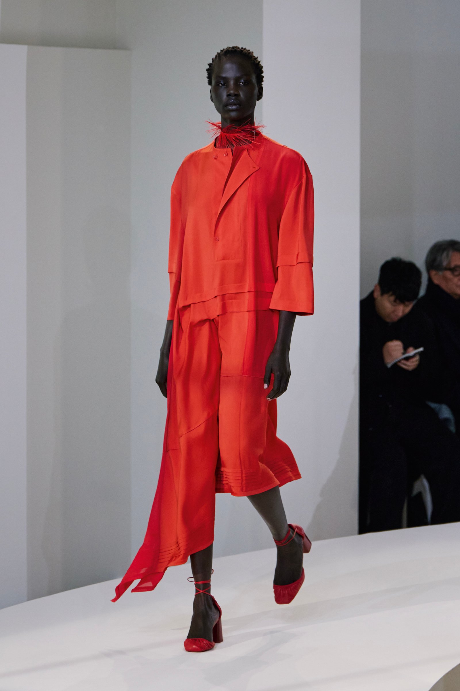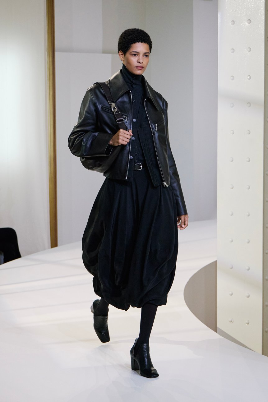 もちろん、キャスティングだけが、今回のショーで語られることではない。服の魅力が、人を際立たせている。丁寧にスタイリングされたルメールの服は、人の個性を存分に引き出しながらも、しっかりと“ルメール色”に染めてもいた。バルーンスカートやスリーブを中心としたシルエットの探求は興味深く、いつもより力強いショルダーラインも目を引く。ストラップやパイピングなど、細かいディテールにも抜かりはなく、スリーブにプリーツが入り、フロントに大きなポケットが配されたシンプルなセットアップも新鮮に映った。