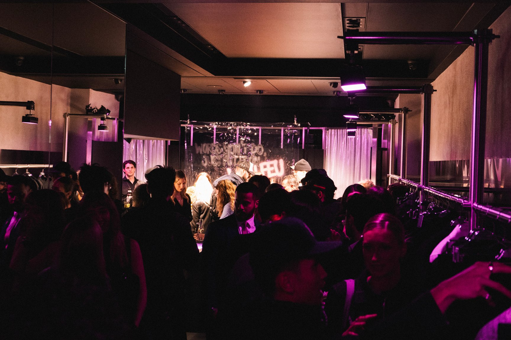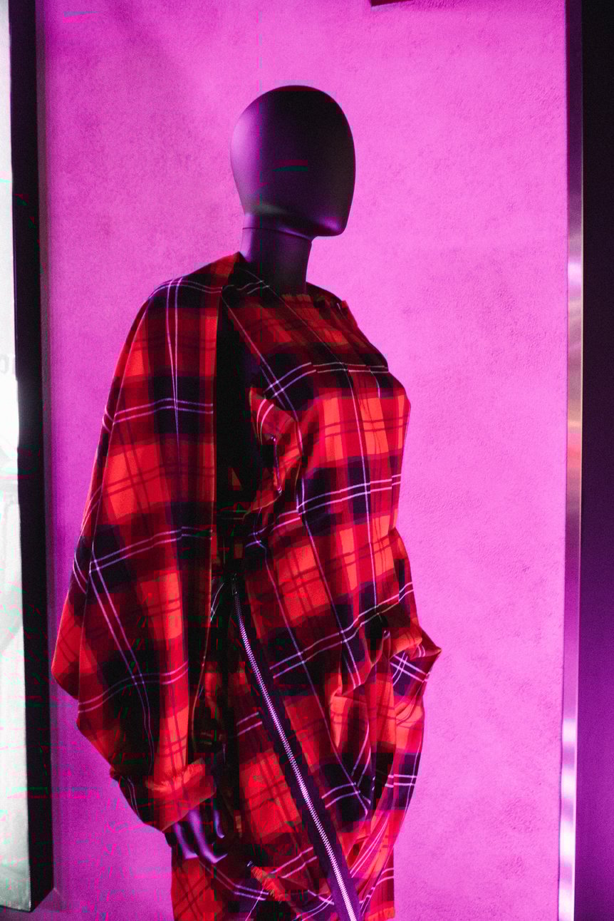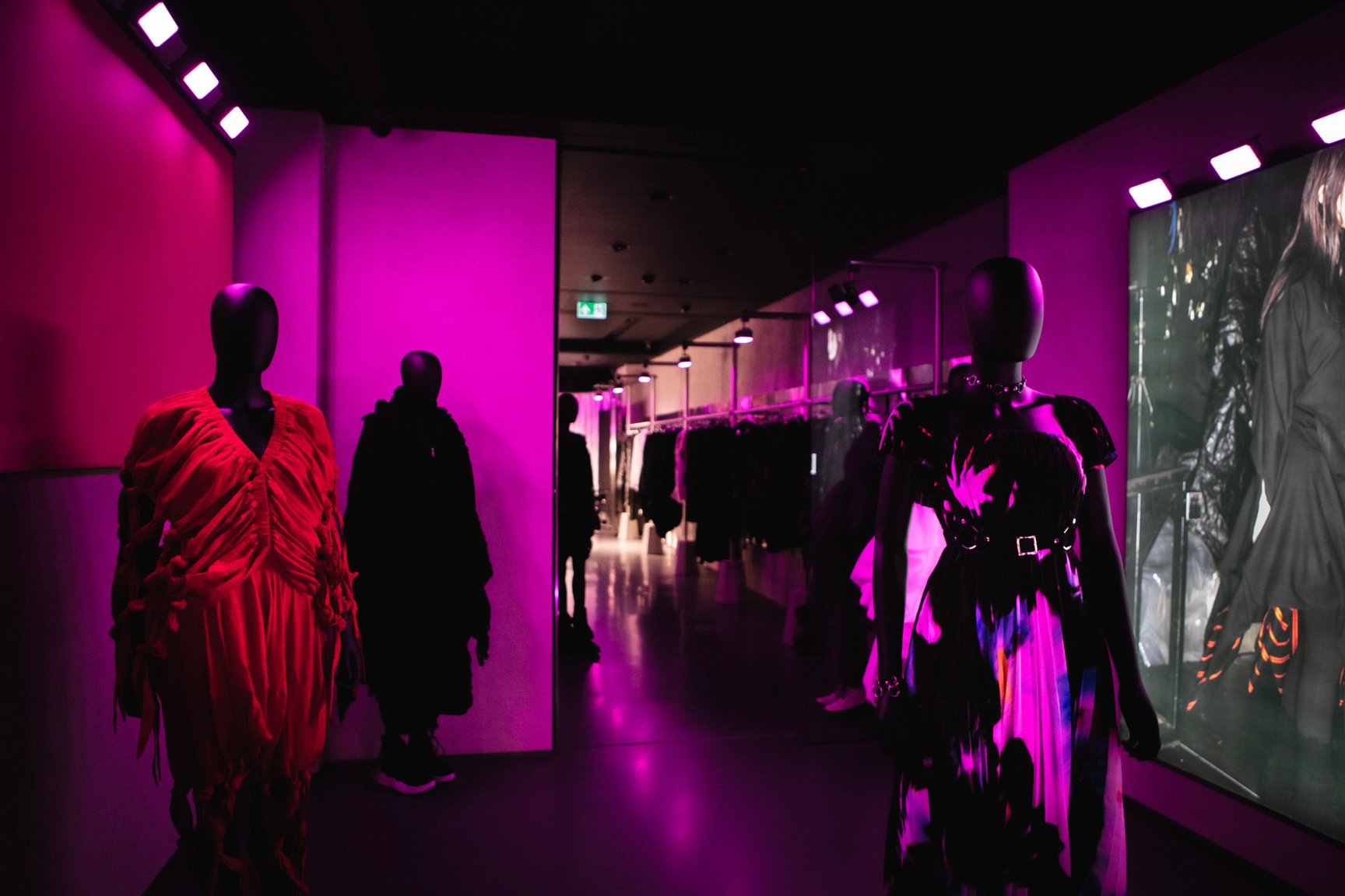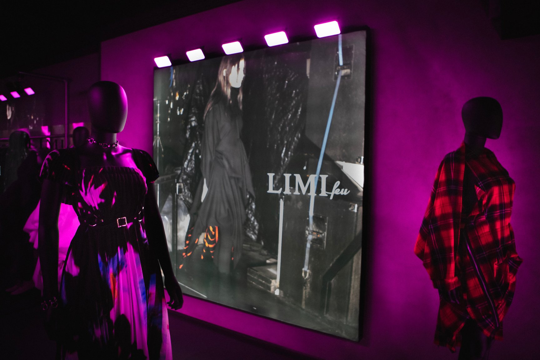 ポップアップショップのオープンに先立ち、レセプションイベントが催された。エントランスでは、リミ フゥを象徴するピンクの光に照らされた過去のコレクションのアーカイヴピースが来場者を迎え、ブランドの世界へと引き込んでいく。