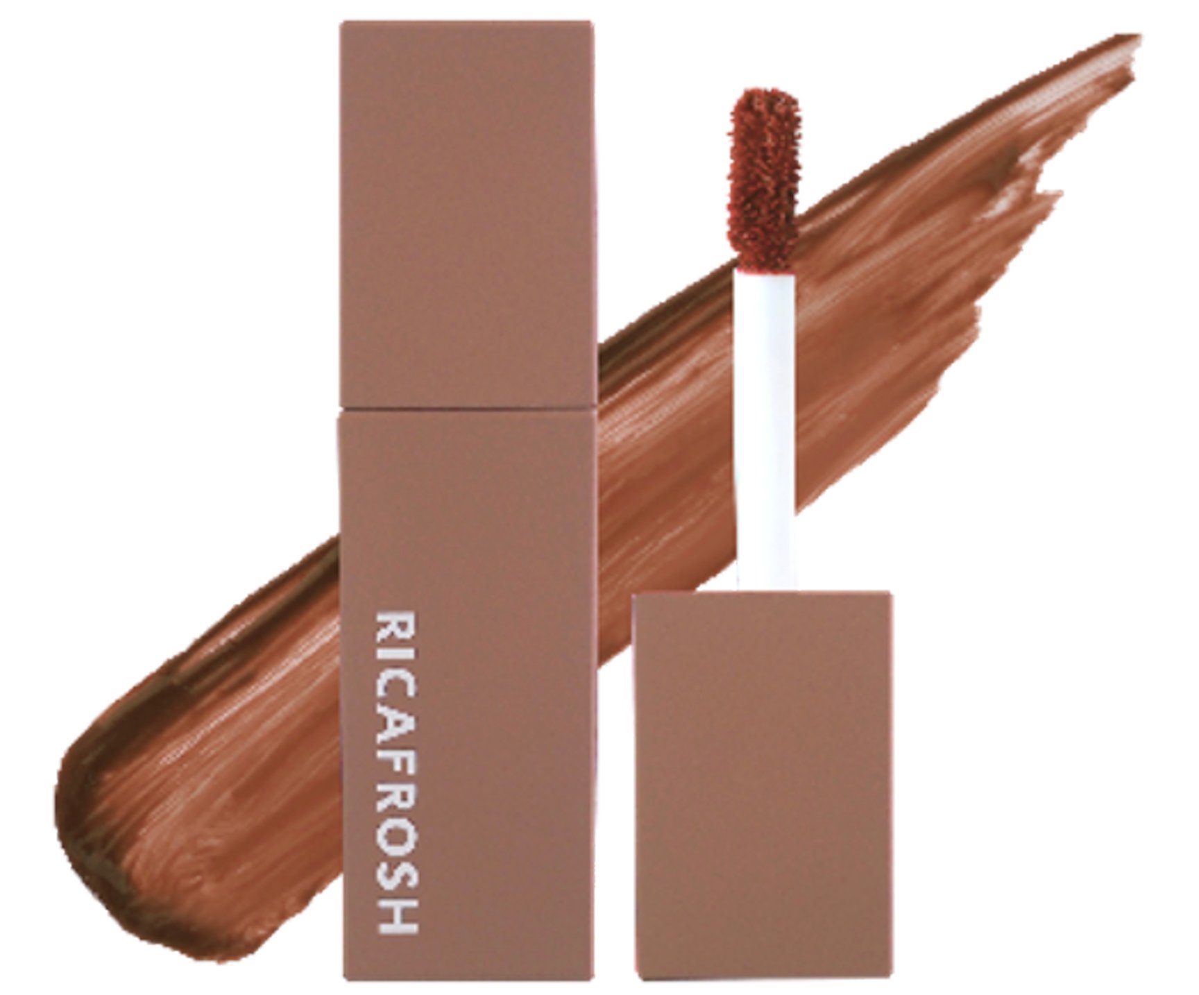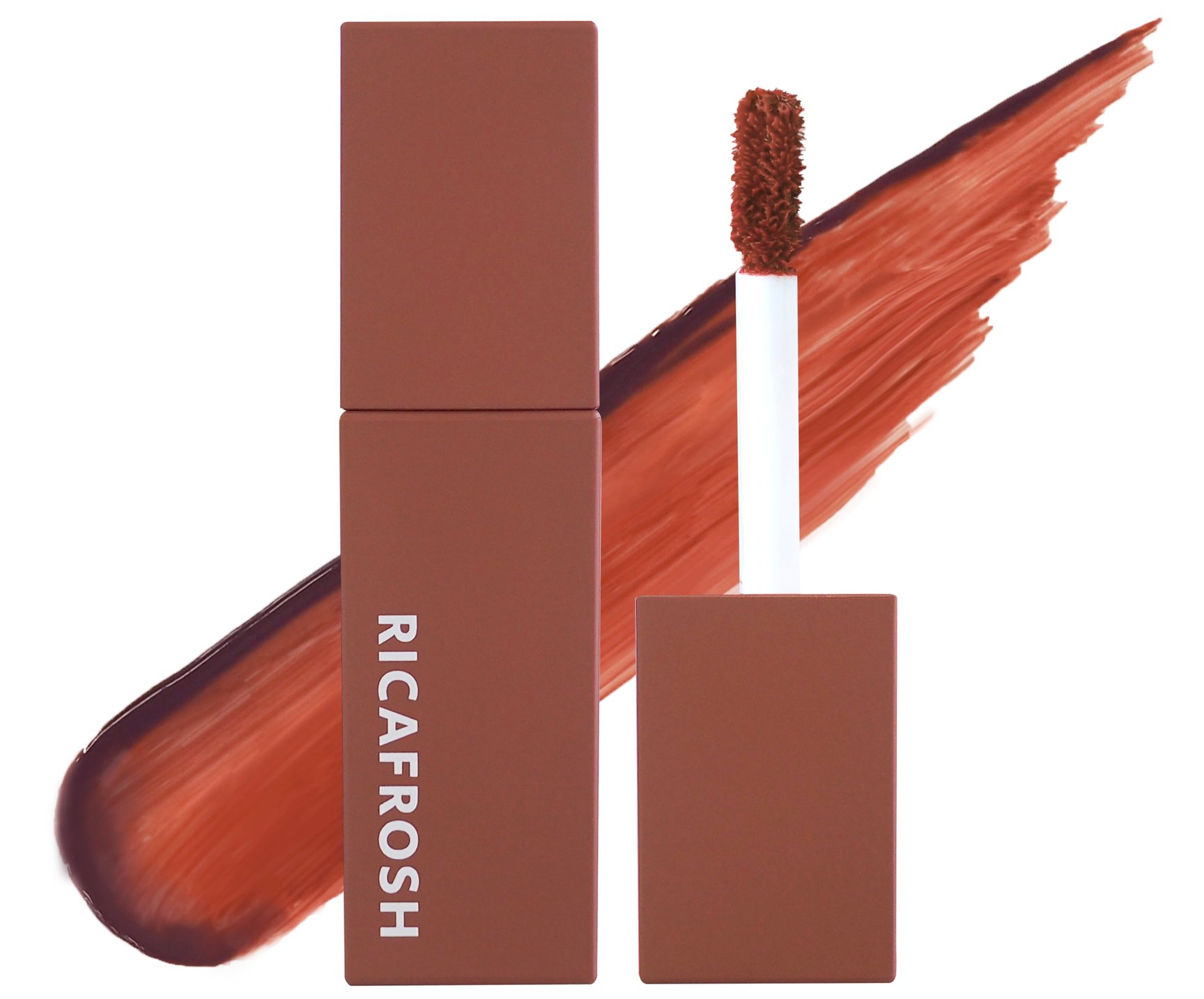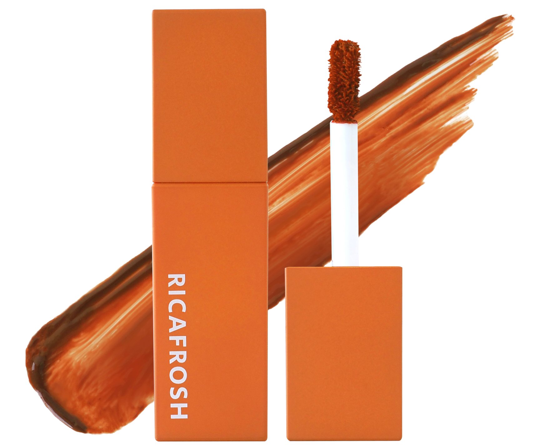 古川優香がプロデュースする「リカフロッシュ(RICAFROSH)」のリップティント「ジューシーリブティント」(同1848)。1度塗りで透け感のある質感を、重ね塗りでしっかり発色のジューシーリップを楽しめるリキッドルージュです。フルーツやチョコなどをイメージした、イエベにもブルベにも合うトレンドカラーが揃っています。
