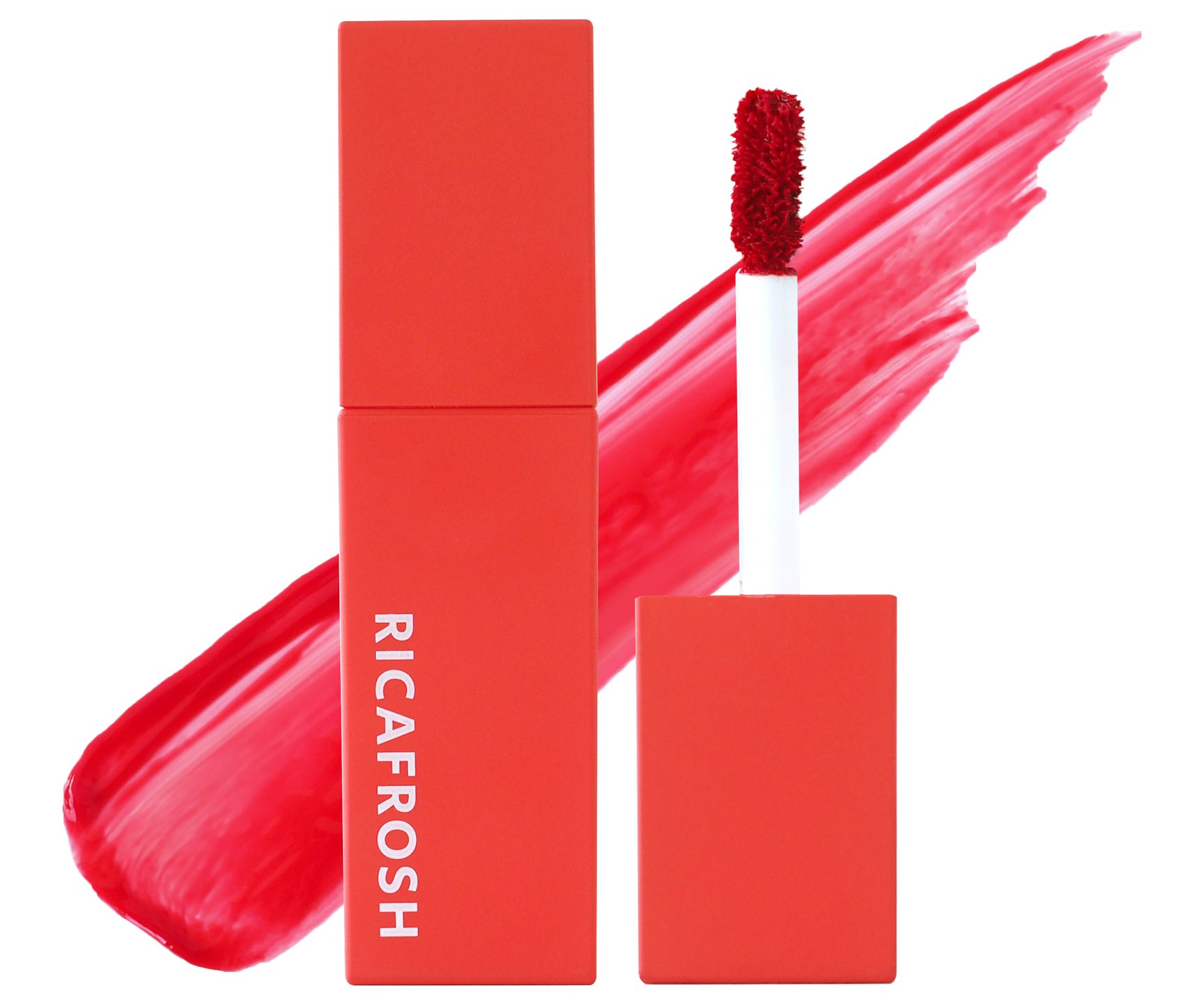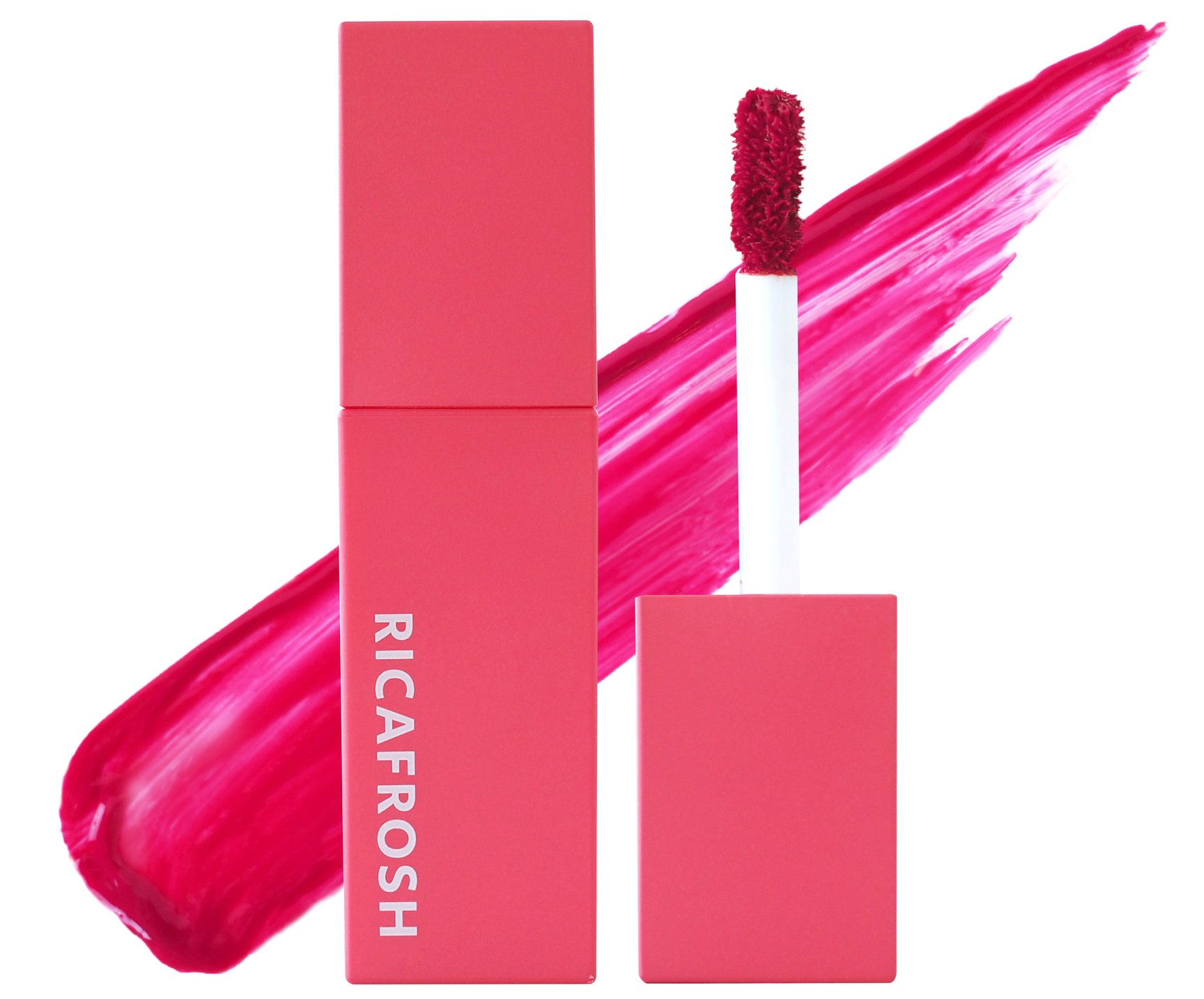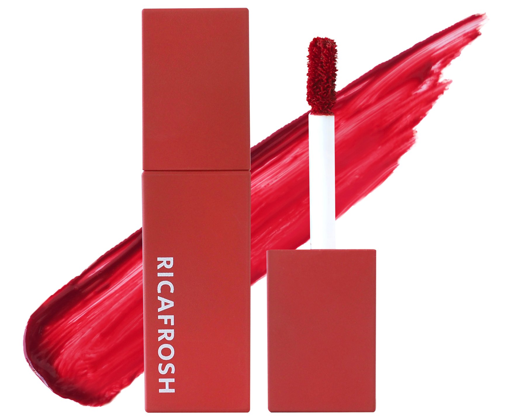 古川優香がプロデュースする「リカフロッシュ(RICAFROSH)」のリップティント「ジューシーリブティント」(同1848)。1度塗りで透け感のある質感を、重ね塗りでしっかり発色のジューシーリップを楽しめるリキッドルージュです。フルーツやチョコなどをイメージした、イエベにもブルベにも合うトレンドカラーが揃っています。