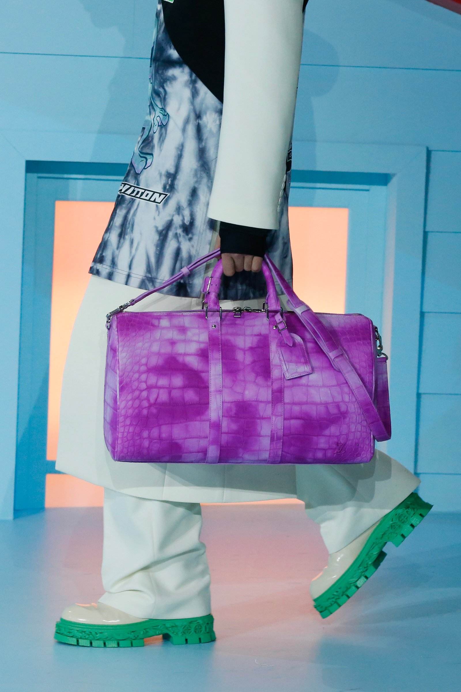 格闘技のプロテクションウェアに着想したというパッド入りのレザーバッグ、レザー製の花が飾られたブーケバッグ、タイダイプリントのクロコダイルバッグなど、メゾンのアイコンを継承しつつユニークな視点を取り入れている。