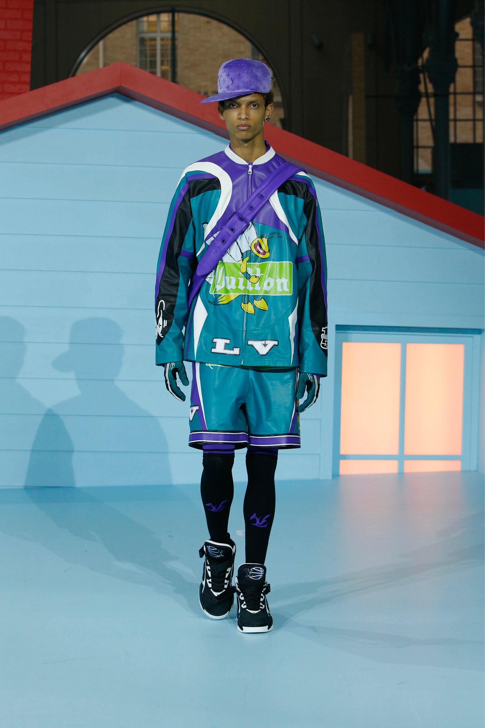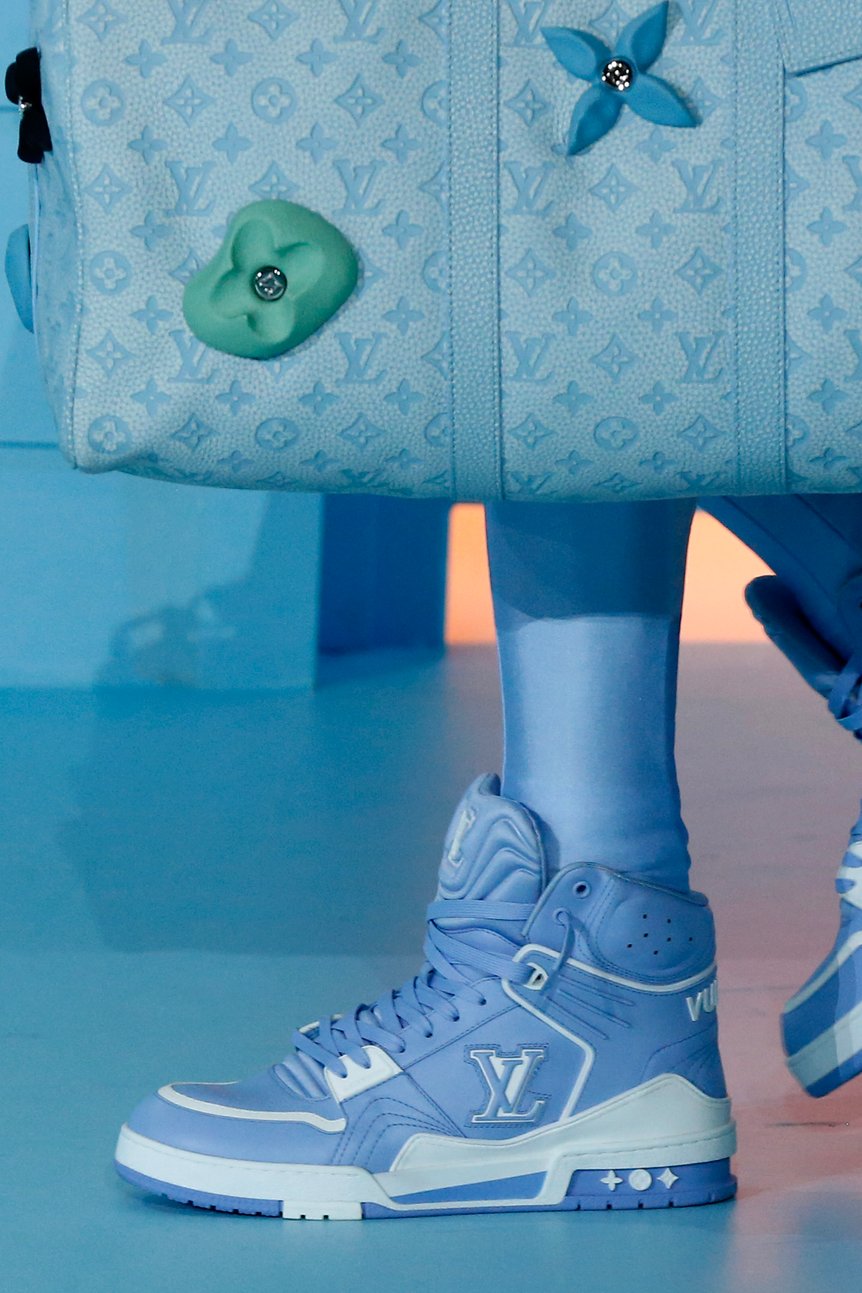 足元は、ヒール付きブーツやポーラーブーツ、そして新しいバスケットボールスニーカー「LV Trainer 2」が6色展開で発表された。