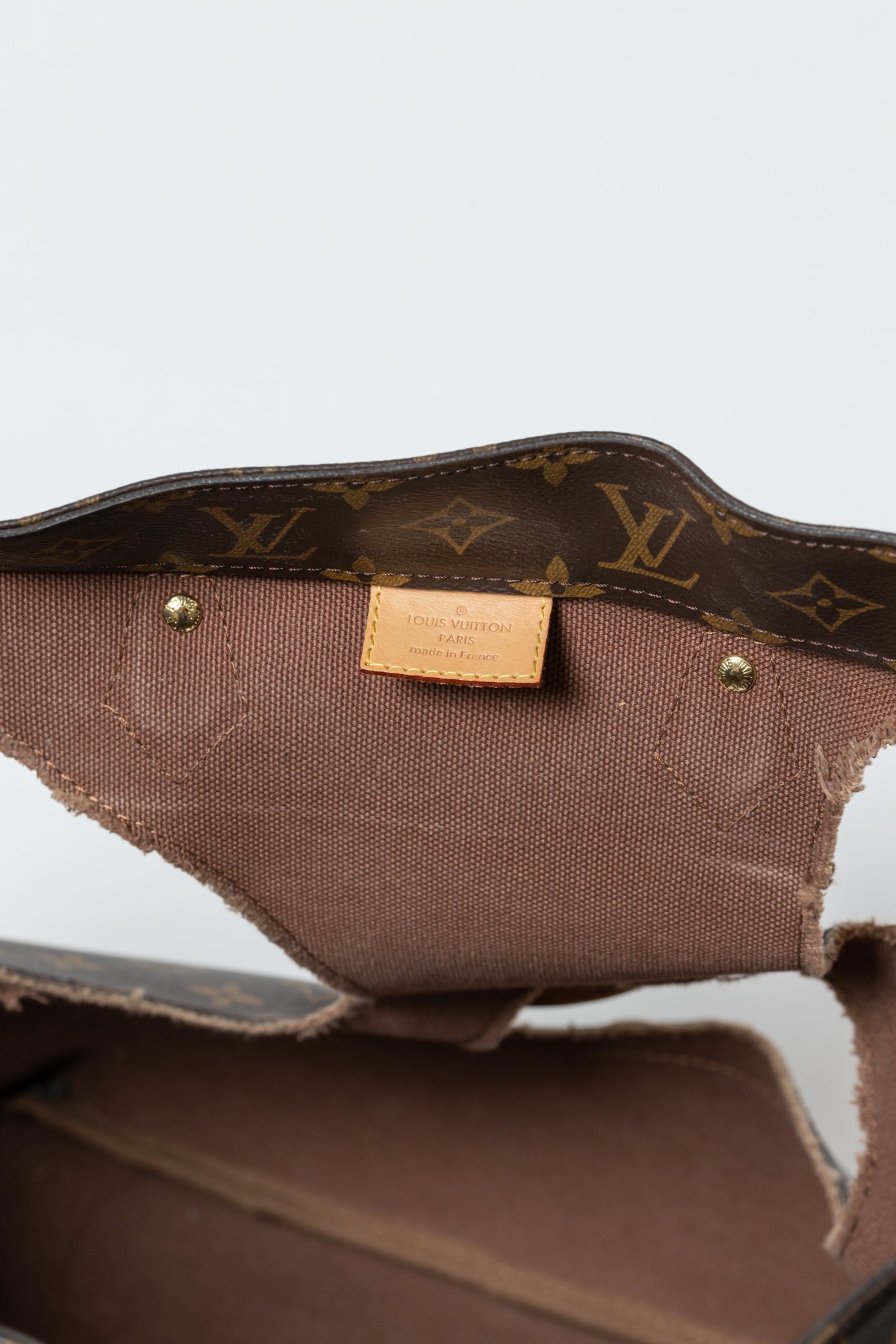 発売前にリリースされた公式ヴィジュアルでは華奢なモデルが持ち手に細腕を通していたのだが、購入した現物は成人男子にとってはよもやよもやの小さき穴で貫通できなかったからだ。無理矢理にでも肩掛け仕様にすべく、モノグラム・キャンバスの上部を内側に折り曲げて持ち手の穴を広げるという、破壊の愉悦を自らも堪能したのだった。