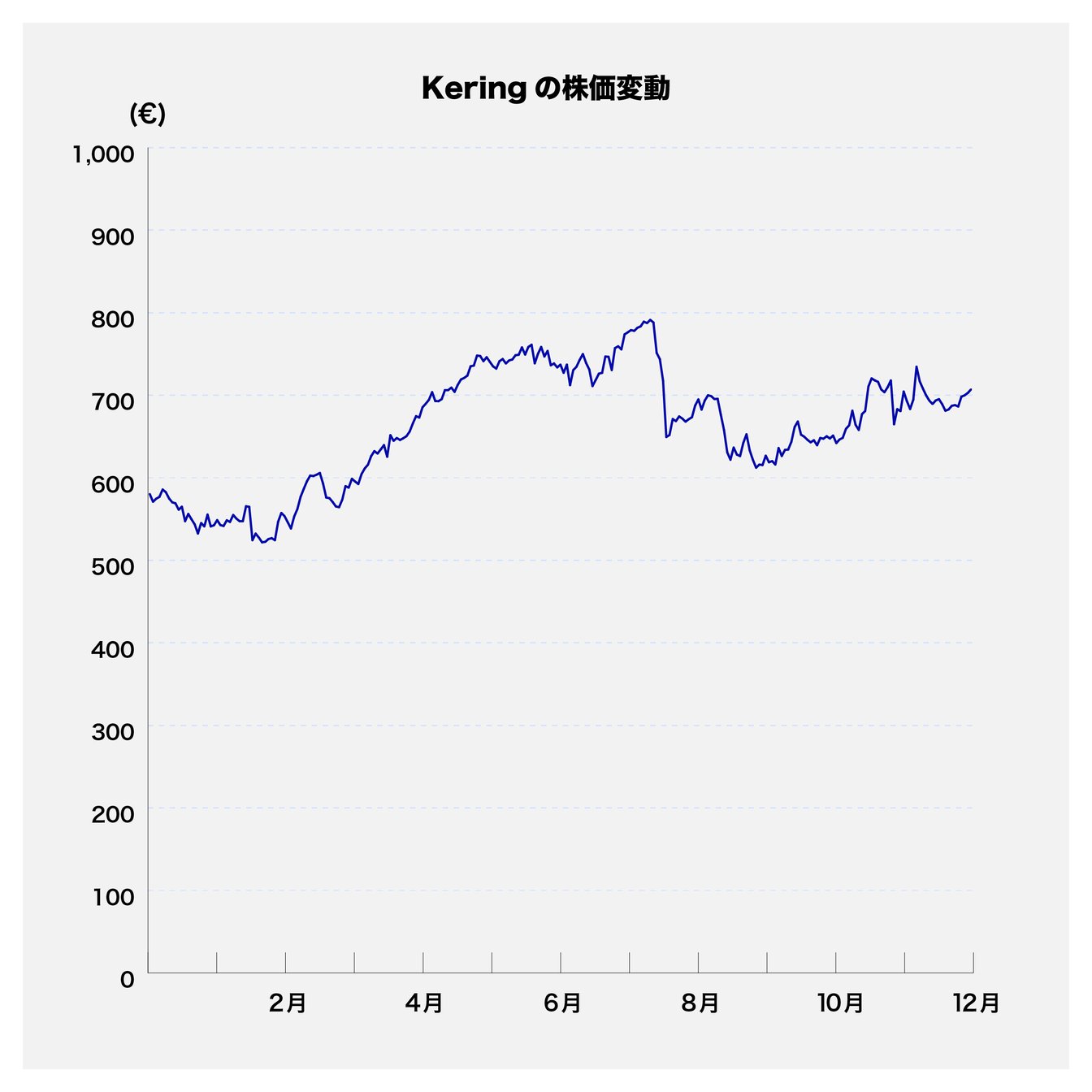 株価は、上半期にはLVMHと歩調を揃え、CAC40を上回って推移。8月中旬に上場来高値をつけている。しかし、中国の「共同富裕」構想発表に加え、第3四半期の業績が市場予想を下回ったことが影響し、LVMHと比較してやや回復が遅れている。現在(2022年3月時点)も下降トレンドが続き、昨夏頃の水準まで回復するには時間がかかりそうだ。