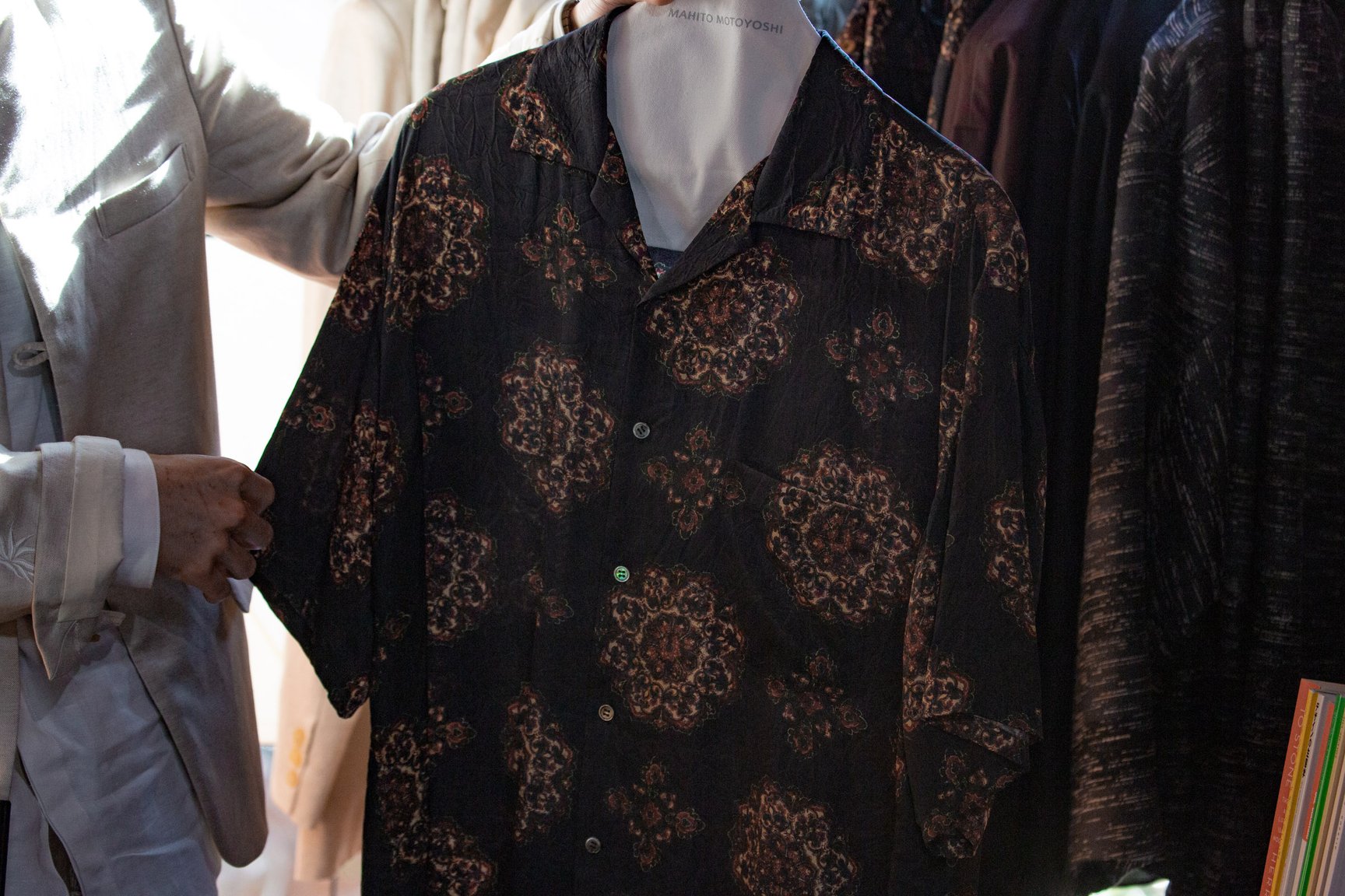 正倉院に納められている生地の「唐花紋」を採用したシャツ