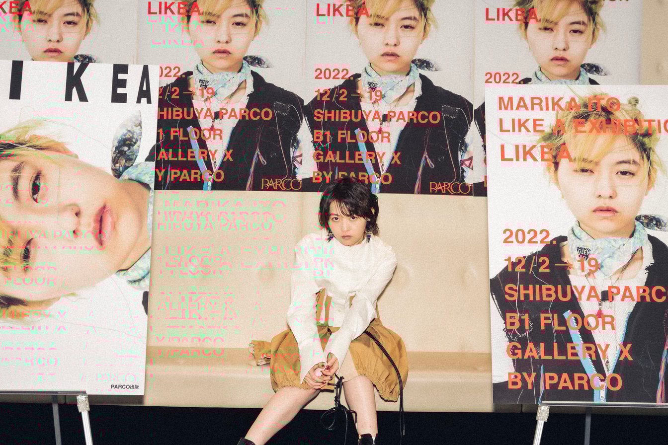 伊藤万理華、26歳。華奢な身体と頭の中には、見た目に反してファッションや音楽、漫画、映像、アートなど、多彩な”好きなもの”がジャンルレスに入り乱れ、ぎっしりと詰まっている。2017年に乃木坂46を卒業した後は展覧会「伊藤万理華の脳内博覧会」(2017年)、「HOMESICK」(2020年)を開催し、クリエイターとしても活躍。そんな伊藤が自身初の書籍「LIKEA」を12月20日に刊行し、書籍と連動して”展覧会三部作の最終章”とする「MARIKA ITOLIKEAEXHIBITIONLIKEA」を12月2日から渋谷PARCOで開催。”完全燃焼”したという書籍の制作舞台裏について聞くと、伊藤が”なぜ作るのか”が見えてきた。