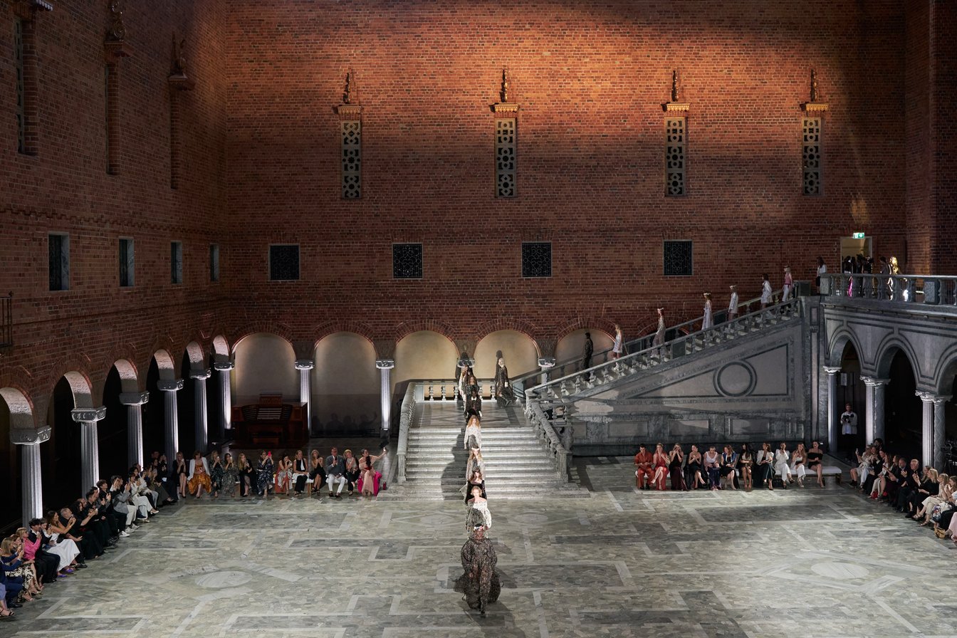 建築家ラグナル・エストベリ(Ragnar Östberg)が手掛けたストックホルム市庁舎は、毎年50万人近くの観光客が訪れる人気スポット。「青の間(The Blue Hall)」は当初、青い壁にする想定だったが、赤煉瓦があまりに美しかったためそのまま残したとされる。また、ノーベル賞晩餐会のダンスホールとしても知られる「黄金の間(The Golden Hall)」でもマックスマーラによるガラパーティーが開催された。