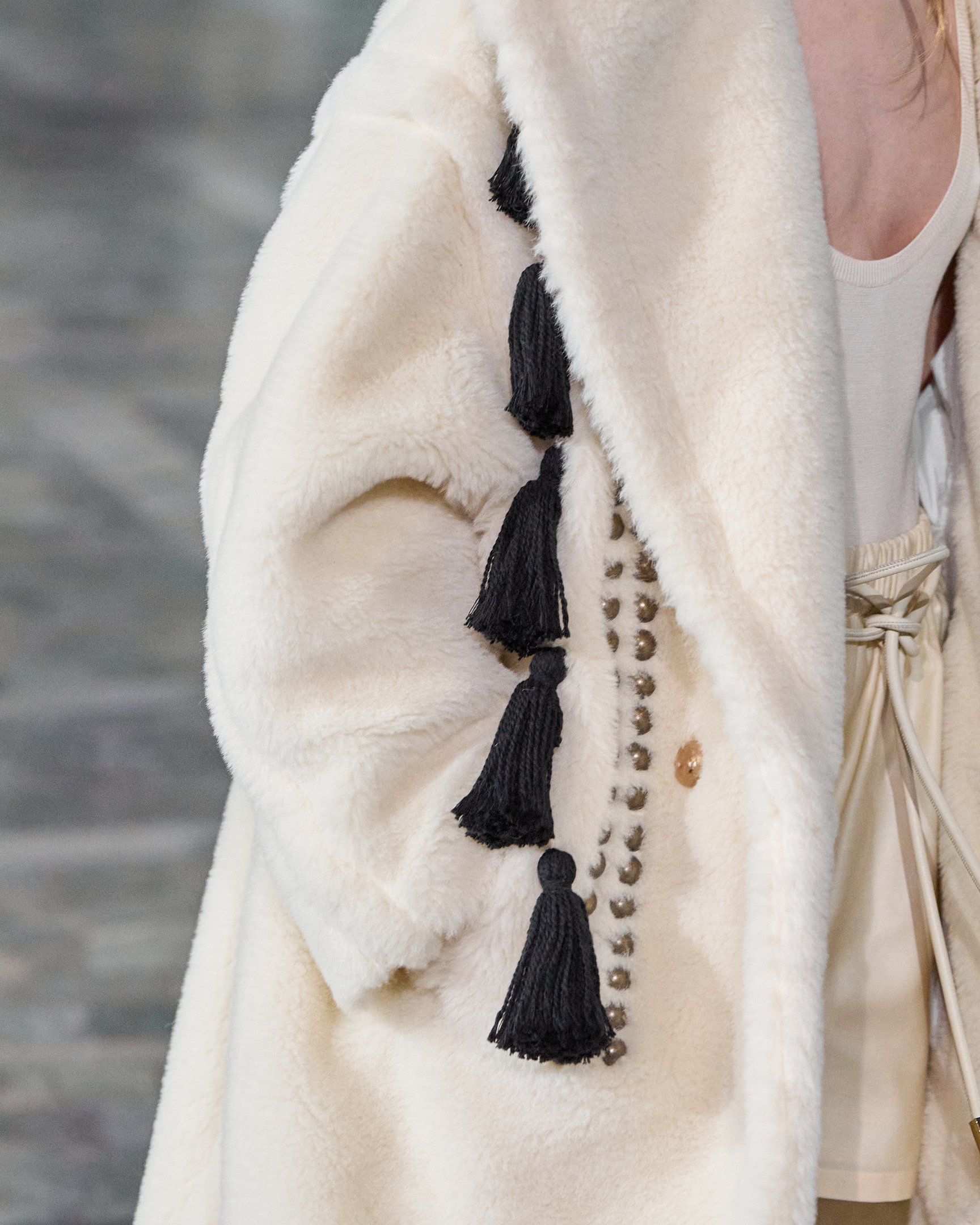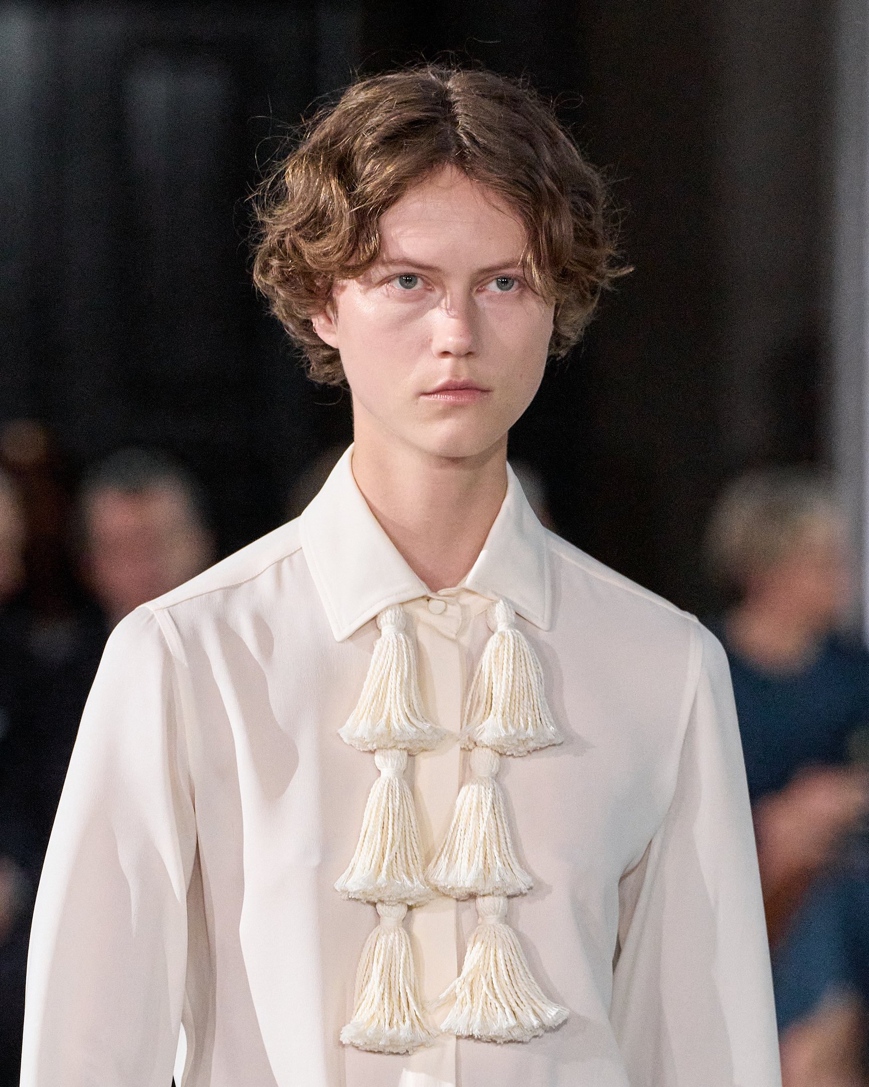 今回のコレクションでは、フォークロアが一つのキーワードに。ポンポンやタッセル、刺繍など、民族的なモチーフを取り入れたチュニックやフォークロアブラウスなどが登場した。また、1900年代のテーラードシルエットが取り入れられており、ラーゲルレーヴの活躍した時代を想起させる。