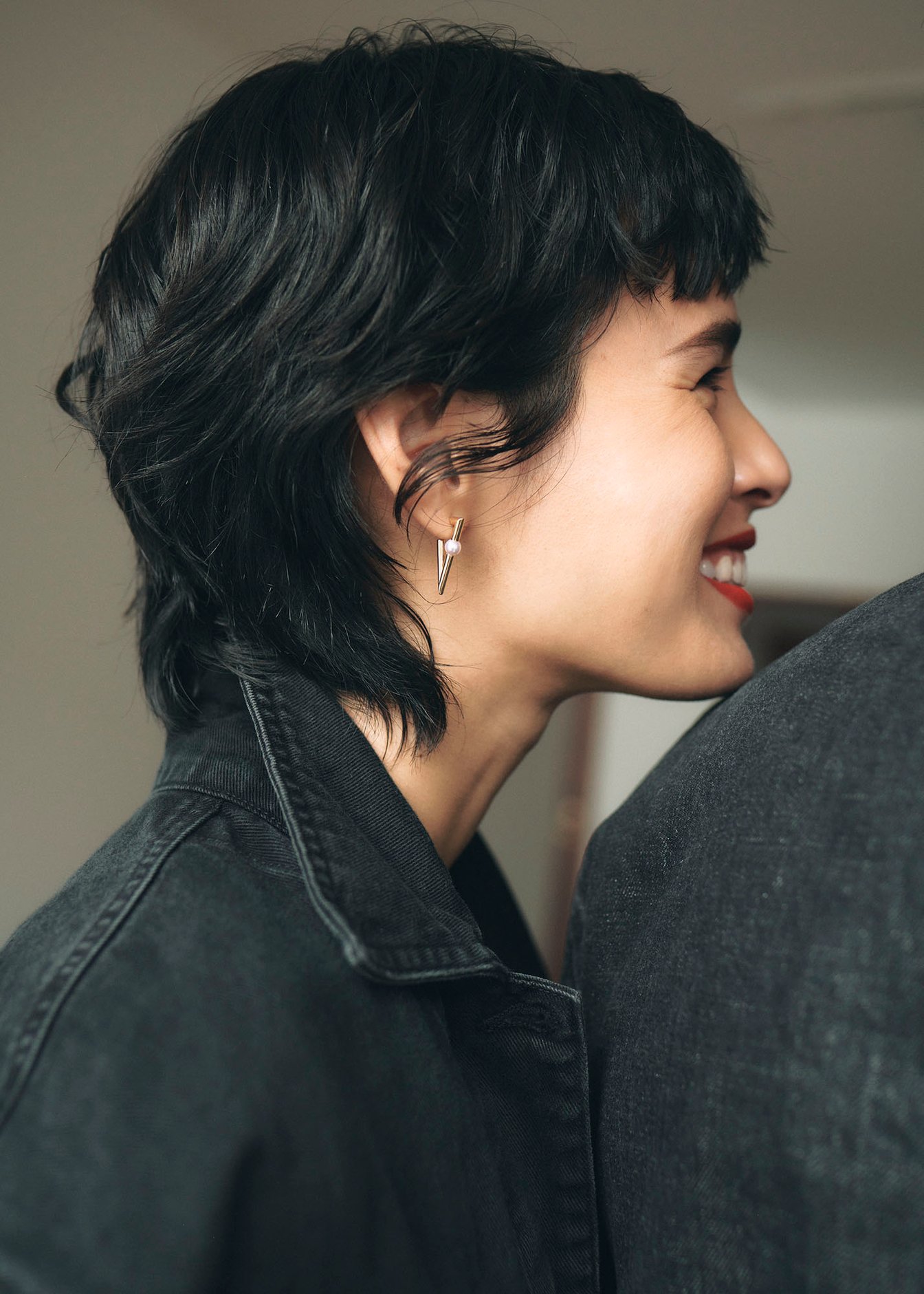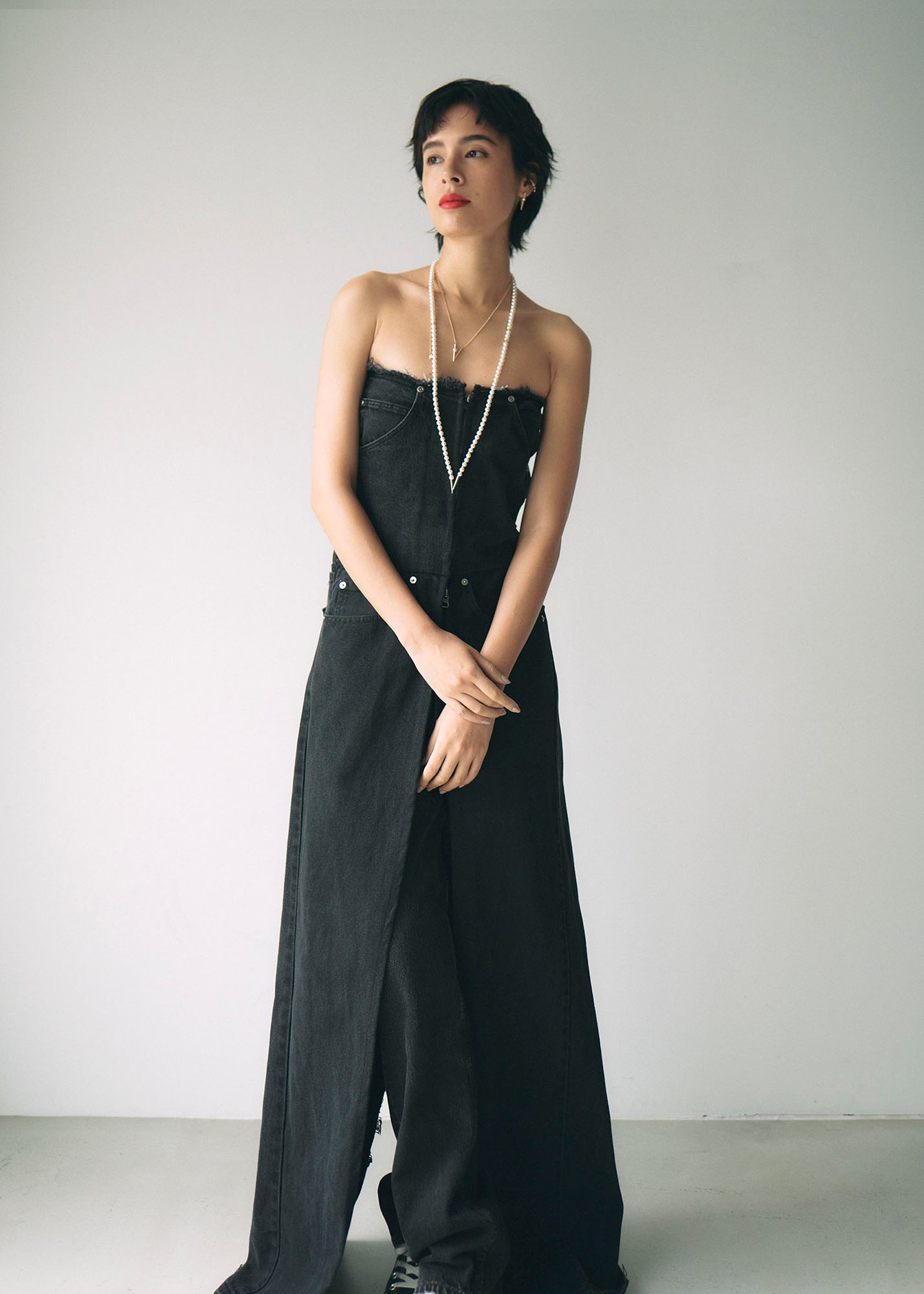 「彼女は着こなしが上手なので、かなり影響されましたね」というSenさんに「私の服、勝手に借りてるよね」と笑う夏南さん。示し合わせたわけではないのに、互いの装いがリンクすることがあるという。この日のスタイリングはブラックデニムとジュエリーのリンクコーデ。「最近は男の子もパールをするようになったじゃないですか。Senがパールをつけるのは新鮮だったけど、すごくかわいい」。