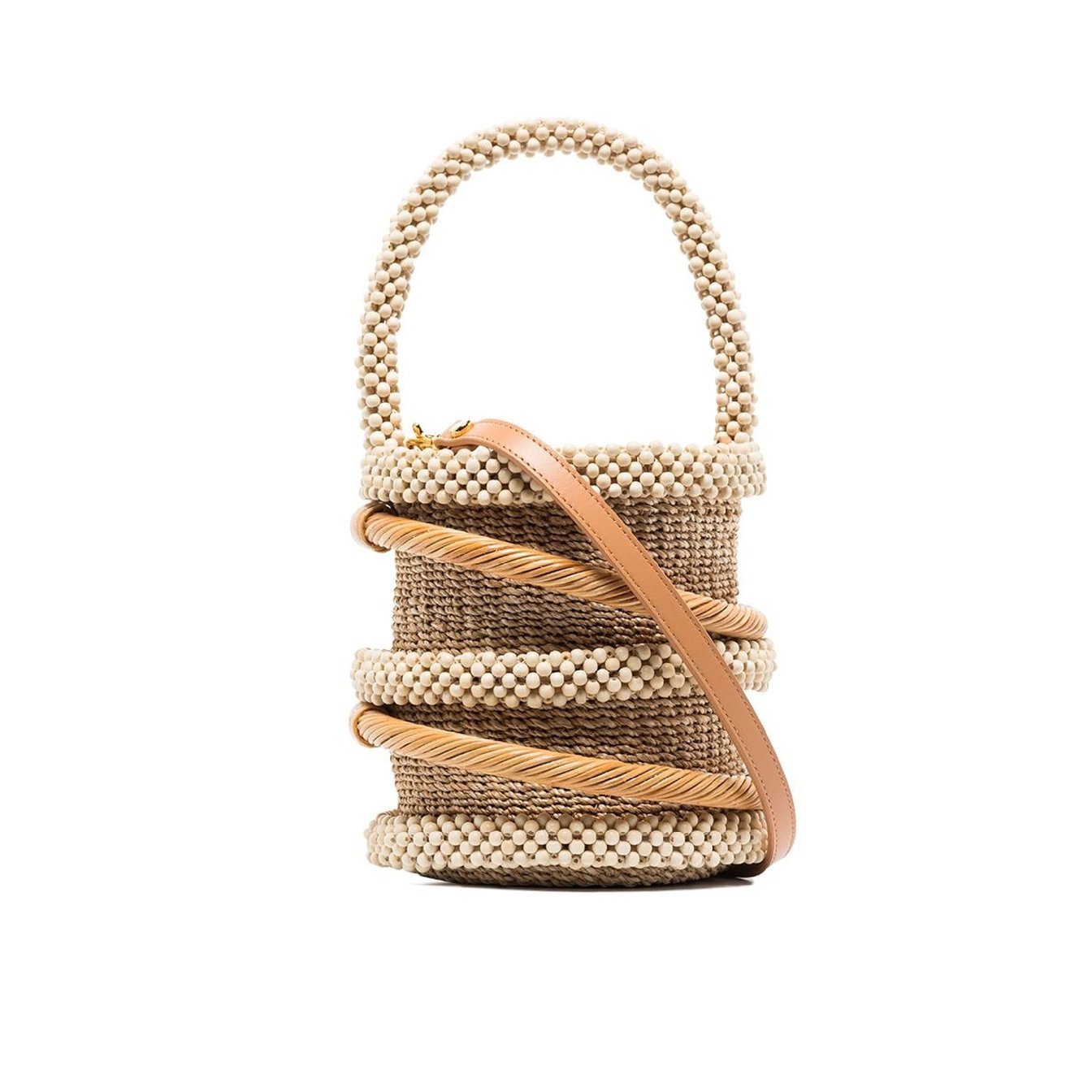 オフスタイルをランクアップできる造形的なデザインのバゲットバッグ。ラフィア素材もベースに、ハンドルとボディにデコレートされたビーズとウッドがポイントです。定番のバゲットバッグだからこそ、周りと差がつく個性的なデザインのアイテムをチョイスしてみませんか?
