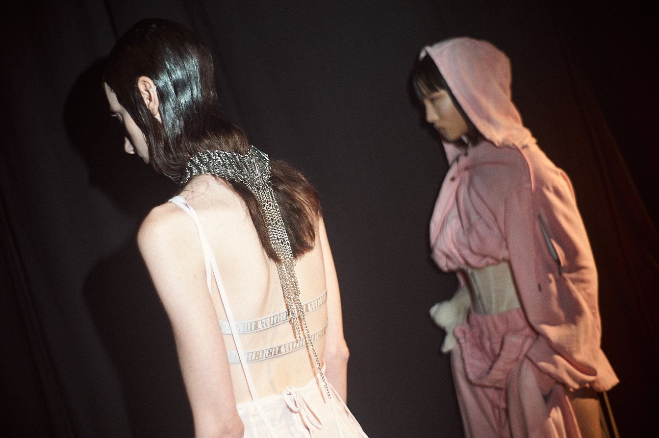今日「ムッシャン(mukcyen)」のショーを取材して思った。ボンデージとかランジェリーの細部を見て思った。白状するが、私は、女性が作る女性の服に、あまり魅力を感じたことがない。勿論、例外はある。女性が作る女性の服に、感服することはある。意中の女性デザイナーの名前を一つ一つ数えると切りがない。ここで誰々と名前を挙げるのは相応しくない気がするから割愛するけれど、寧ろ、男のデザイナーの比ではないかも知れない。