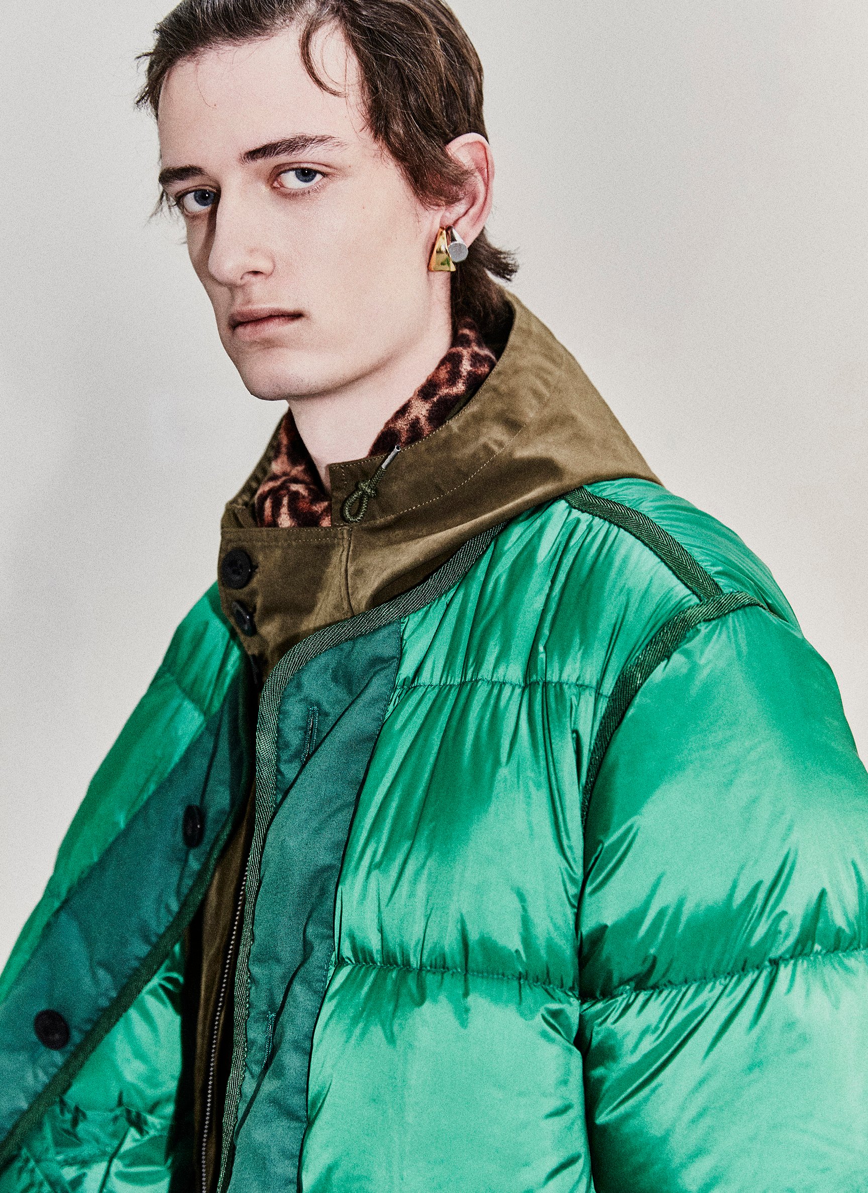 「サカイ(sacai)」が、2020年秋冬メンズコレクションで「テンシー(Ten c)」との初のコラボアイテムを発表。日本製のナイロンとポリエステルを高密度に編み上げたテンシー独自のニット素材「Original Japanese Jersey」を、サカイのハイブリッド技術を用いてミリタリーウェアに落とし込んだアウターコレクションを製作しました。ステンカラーコートとパーカをドッキングしたモッズコート(25)、MA-1をベースにアノラックのディテールを脇に施したブルゾン(18万5000)、ミリタリーのライナーの内側にアノラックを組み合わせたジャケット(23/すべて税別)の3型を、サカイ直営店舗などで販売します。