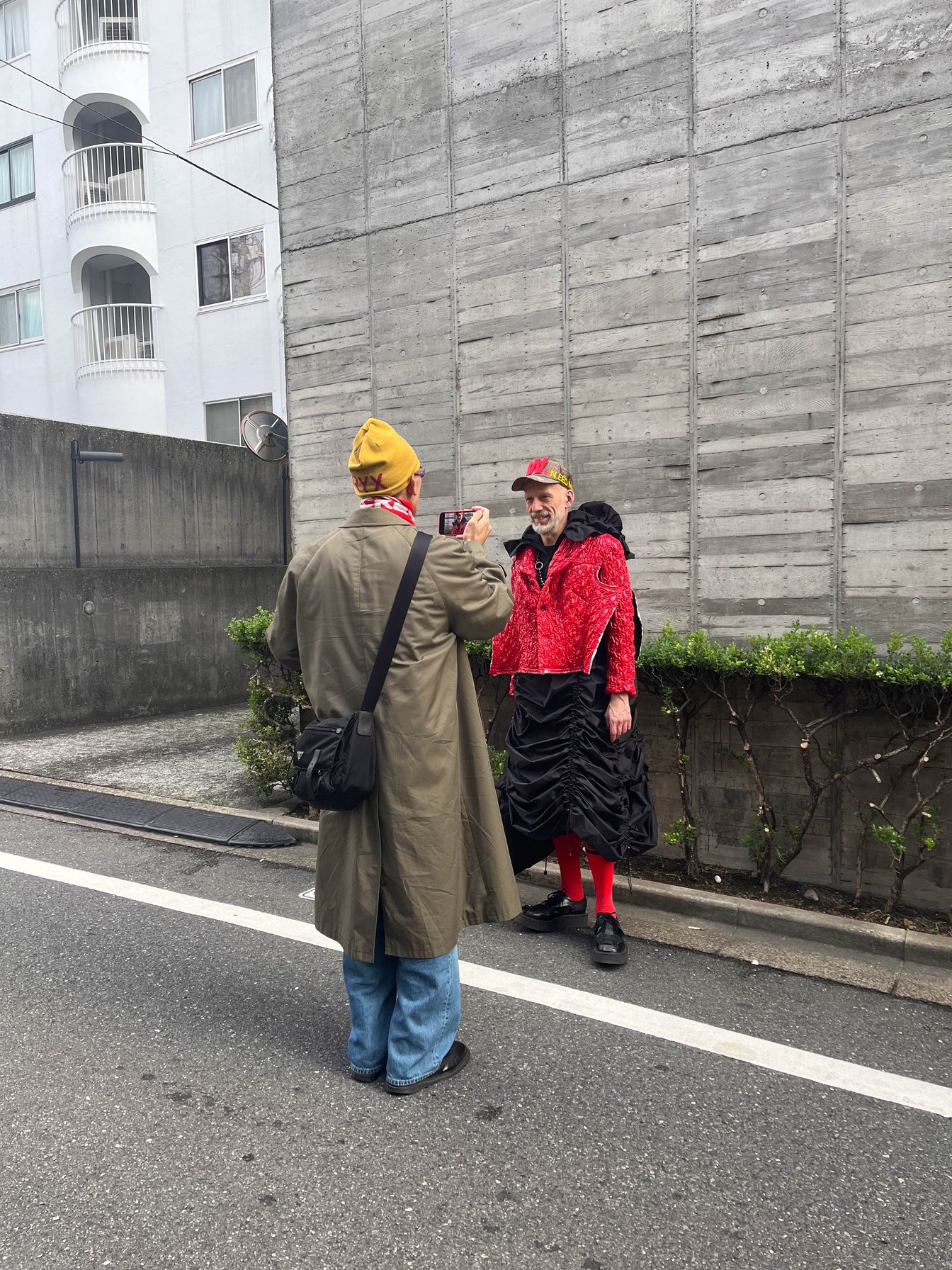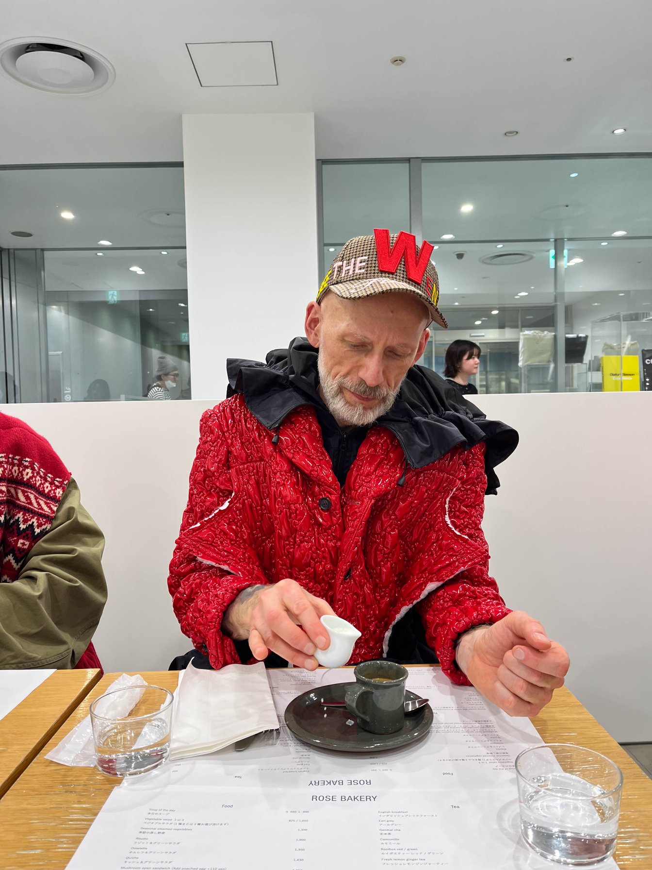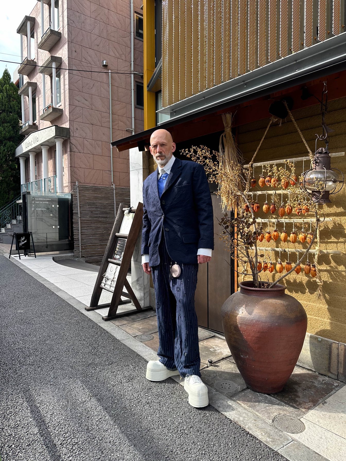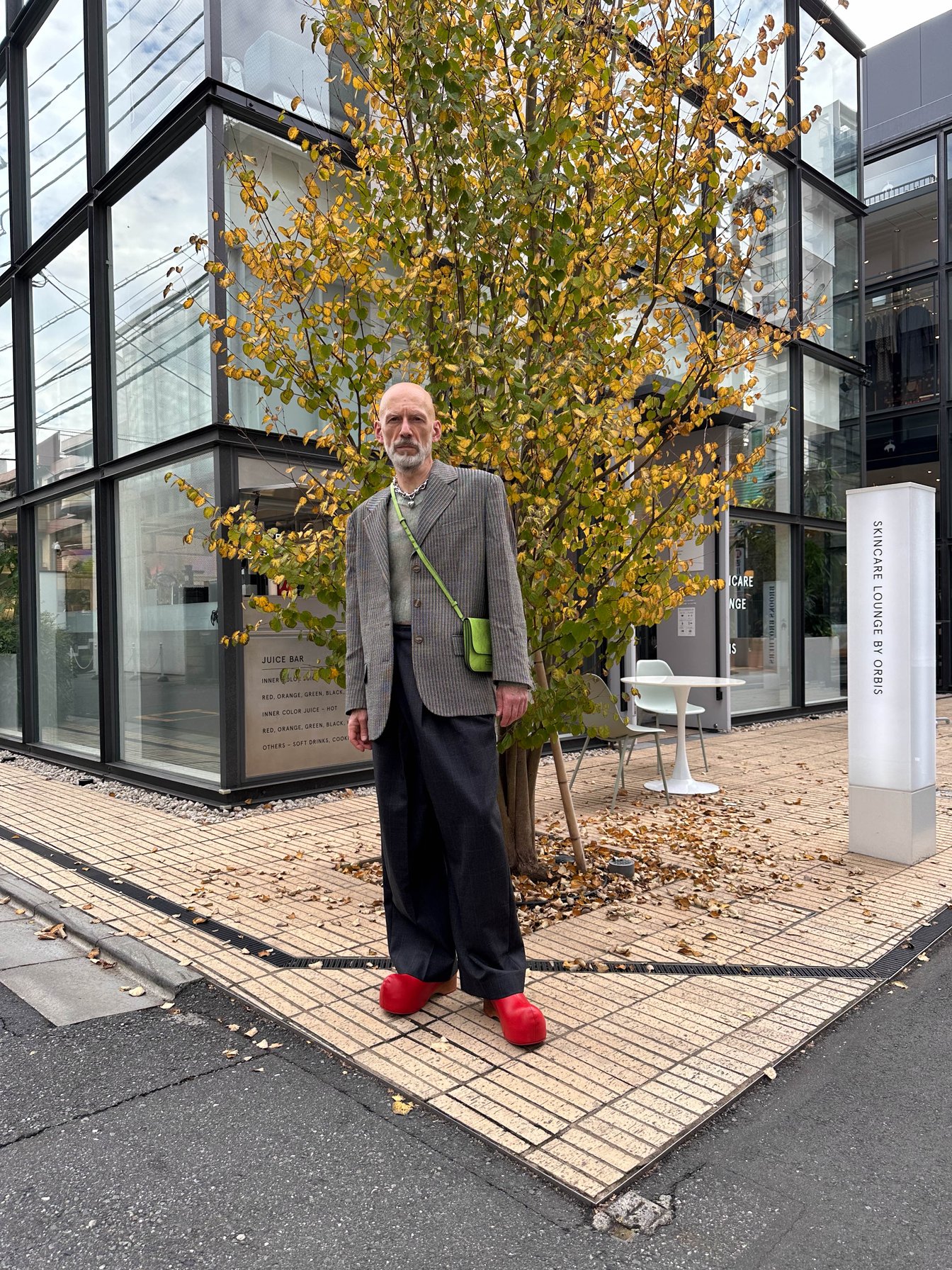 4日目はドーバー ストリート マーケット ギンザでショッピング。コーヒーとスイーツに目がないマグヌスは、ローズベーカリーでコーヒーブレイクを堪能。街を歩くたび「スナップを撮らせてほしい」と声をかけられるが、どんな急な依頼にも快く応じる。途中、アクネ ストゥディオズのジャケット&パンツに着替え、グリーンのクロスボディバッグをアクセントに効かせた。