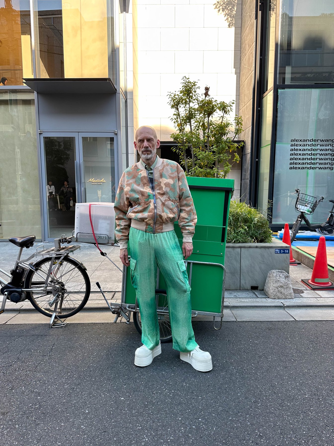 最終日はグリーンのカーゴパンツにカモフラージュ柄のブルゾンという、アクネ ストゥディオズの装いでストックホルムへと帰国した。「初めての東京はとても刺激的で、またすぐにでも来たい」と語ったマグヌス。1週間の東京滞在中もファッションアイコンとして強い存在感を示し、多くの人にインスピレーションを与えたようだ。