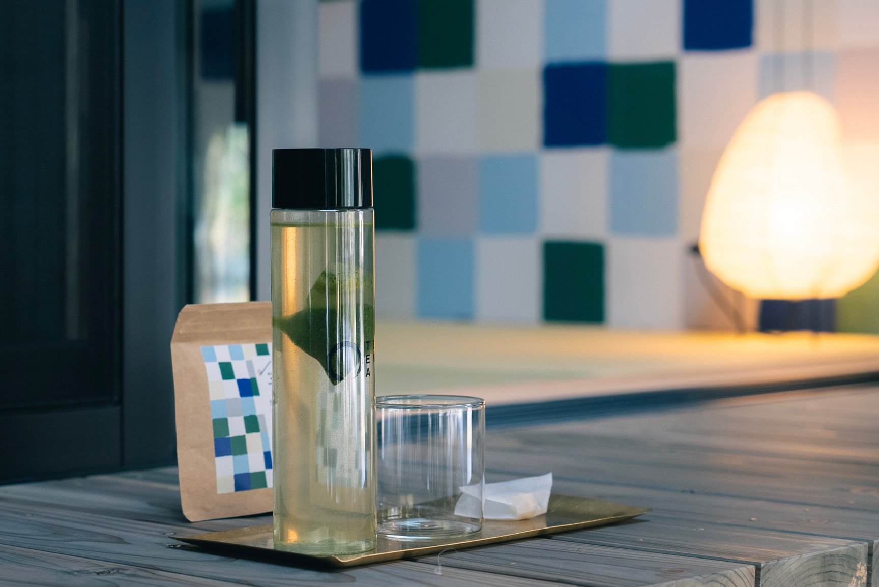 室内で振る舞われたのは、丸若裕俊が主宰する「EN TEA」が手掛けた緑茶。NIHON NOIE PROJECTとともに開発した大分カボス入りのオリジナルブレンドで、アイスとホット、そして茶葉を茶香炉で炊く香りの提案も。さらに、大分県の酒造メーカー三和酒類の「いいちこ」と、大分県産大麦を使用した「西の星」を合わせた緑茶ハイが提供された。