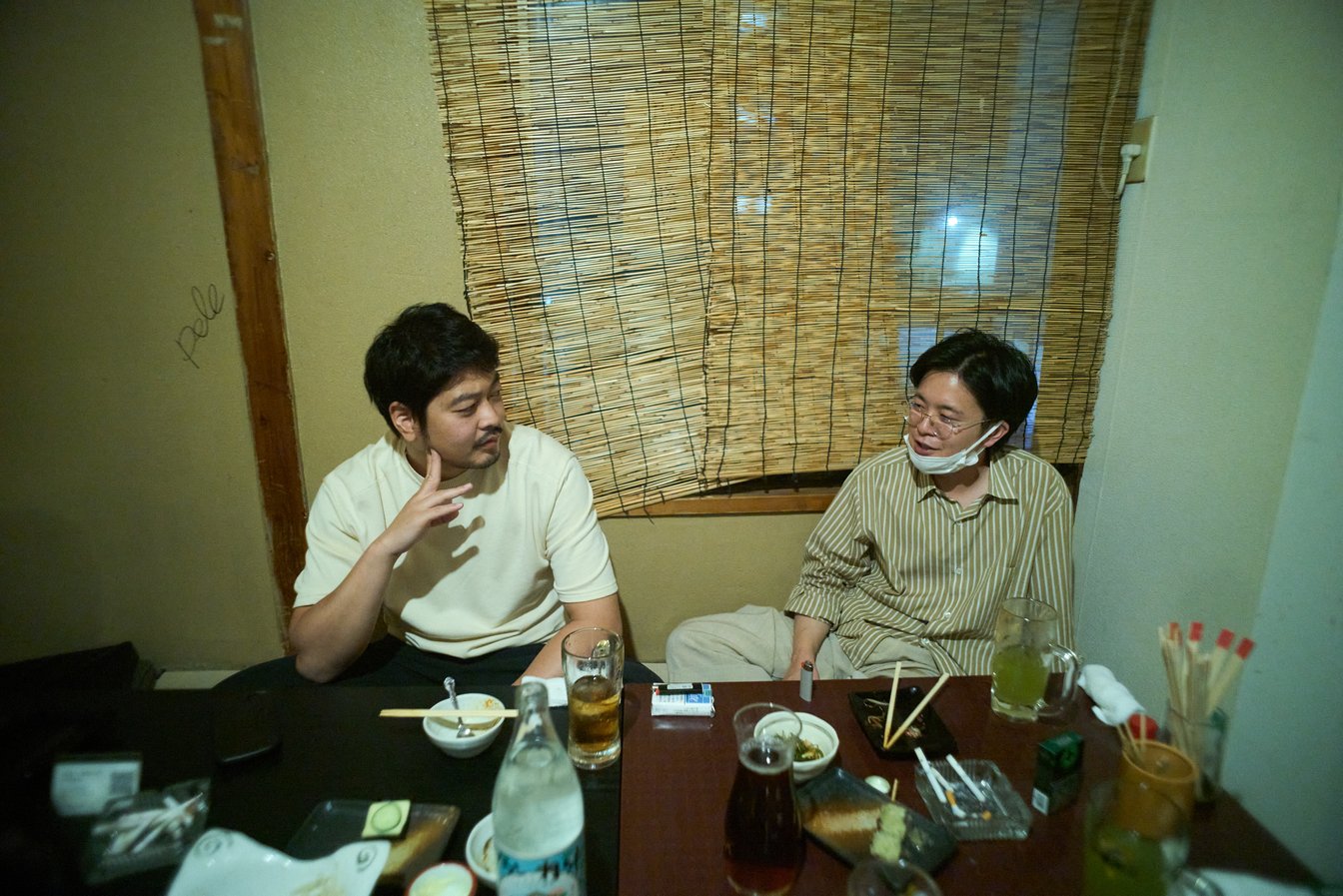 会議室でのかしこまった対談よりも、お酒とタバコを片手に話した方が素直な話を聞けるかもしれない、とまたもや二人のデザイナーと一人のカメラマンを居酒屋に呼び出した。