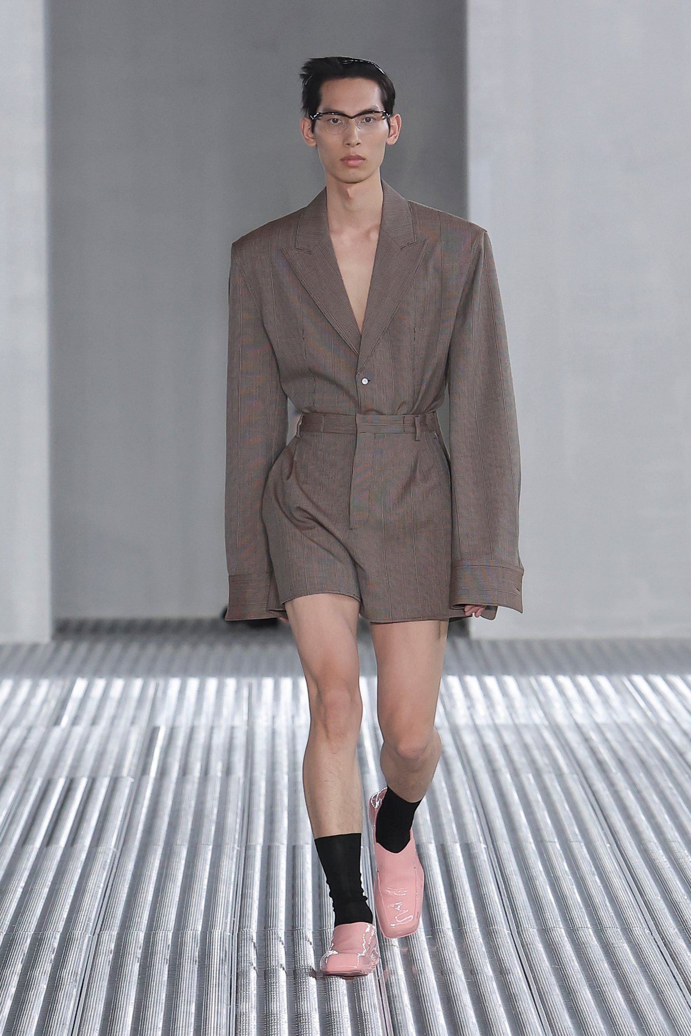 ヌーディなカラートーンや、光沢感のある靴の差し色などもジェンダーレスなムードを漂わせていた。