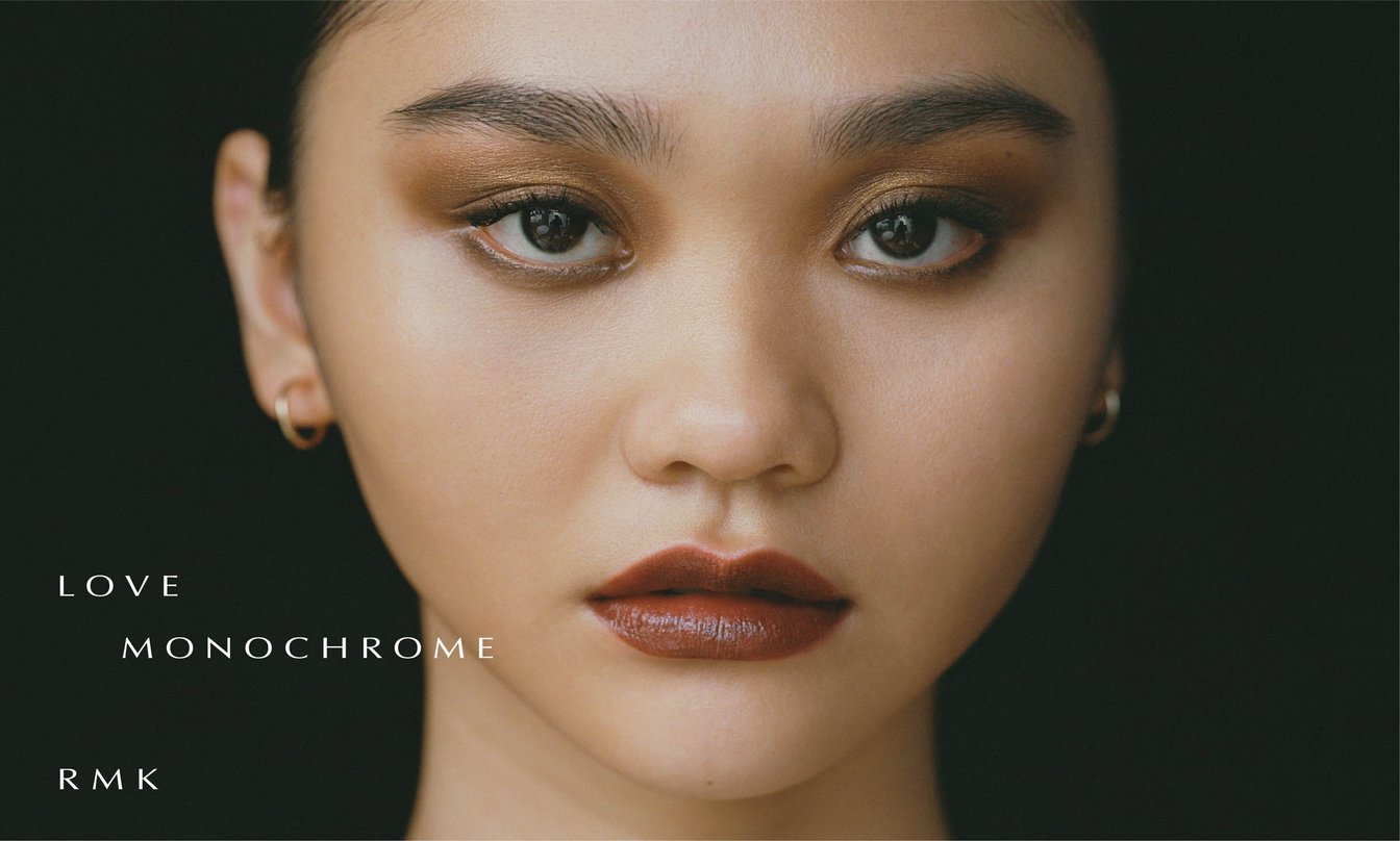 RMKの2023年秋は、「LOVE MONOCHROME」をテーマに、きらめく個性を投影させるモノクロマティックなスモーキーアイを提案します。こなれた印象を引き出してくれる、深みカラーのリップにも注目です。