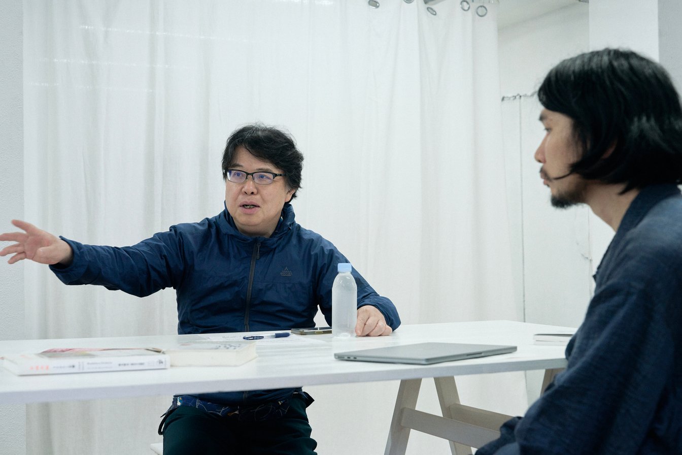 「リトゥンアフターワーズ(writtenafterwards)」の山縣良和と美術評論家で多摩美術大学美術学部教授の椹木野衣の“談義”をお届け。ファッションデザイナーと美術批評家という一見相いれない関係でありながら、どちらも領域を縦横無尽に横断し、共に日本らしさに「うつろい」を見出している。ファッションが「流行」と訳されるなら、2人の「うつろい(流されるもの)」の視点は、日本のファッションシーンに新たな姿勢をもたらすかも知れない。連載二回目は「自然災害が多発する日本という土壌は、どんな土壌も根こそぎ水に流されるために“今、ここ”が築きづらい」という土地における“日本ファッションの現在地”について。