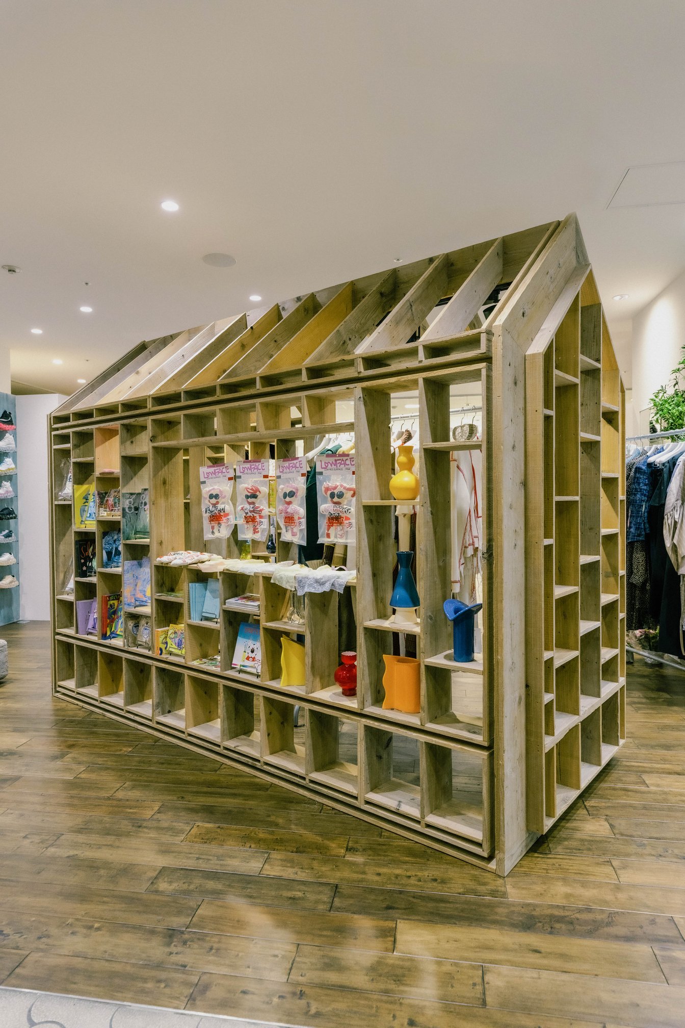 緑の要素や木の要素を取り入れて、気持ちのよい空間をラフォーレ原宿の入り口に作ろうということになりました。店内には木の小屋があるんですけど、そこにニューヨークなどからセレクトしたZINEやアート・カルチャーよりのものを展開しています。ほかにも、フラワーベースや陶器などインテリアも充実させたり、定期的にお花屋さんのPOPUPも企画したりしていきたいです。加えて、お店でないと体験できないことをやっていこうと思っていて、様々なワークショップを実施するなど、実店舗ならではの価値を作りたいと考えています。