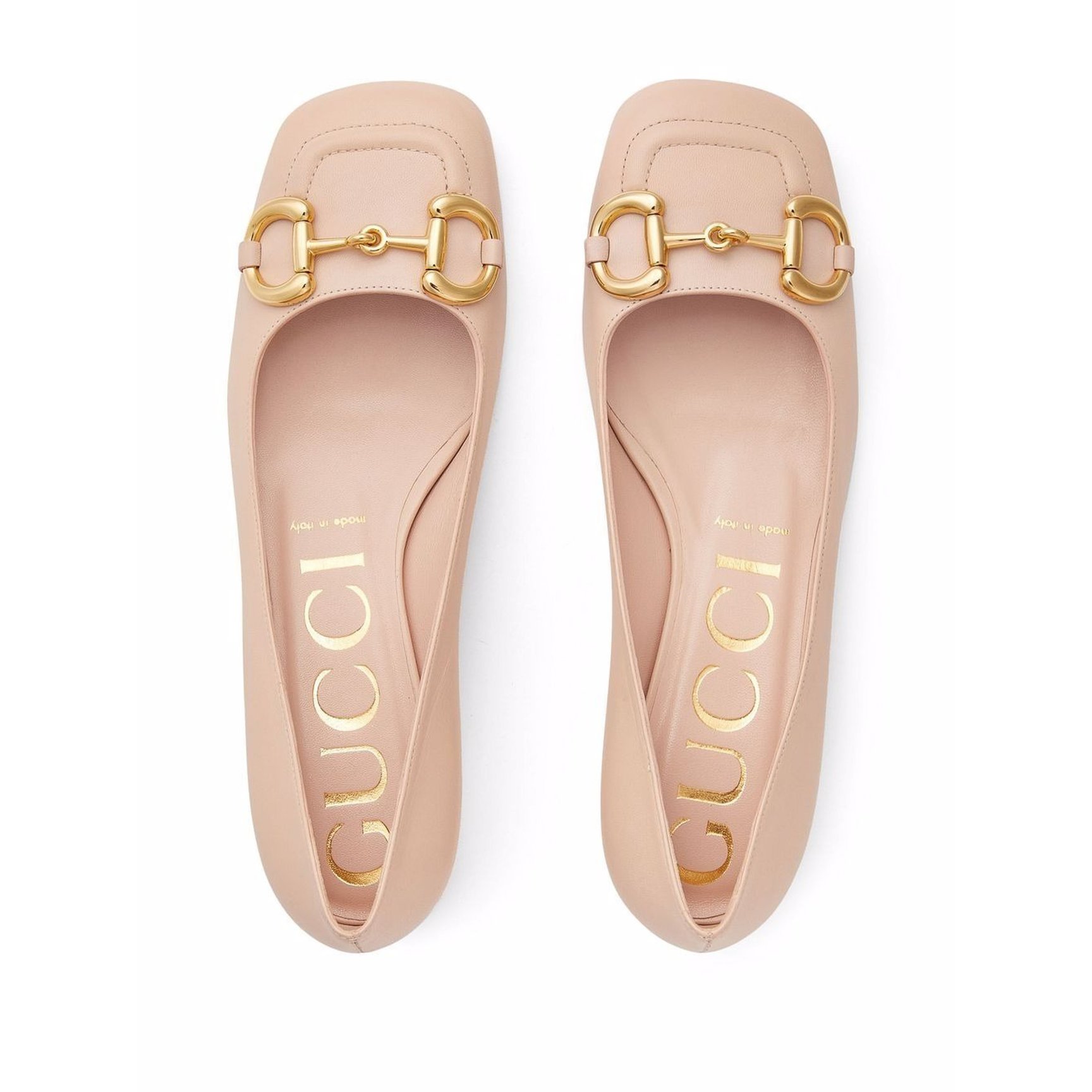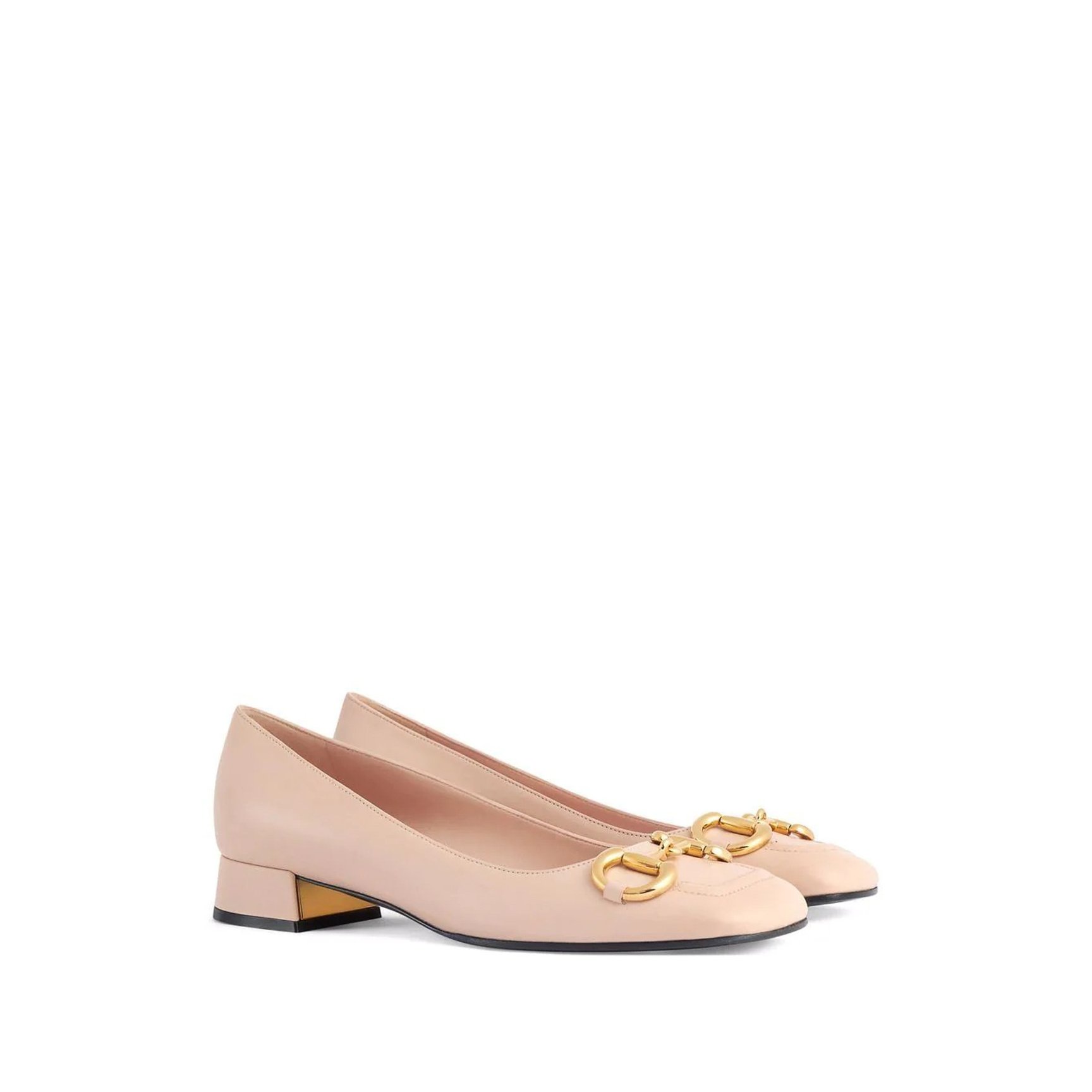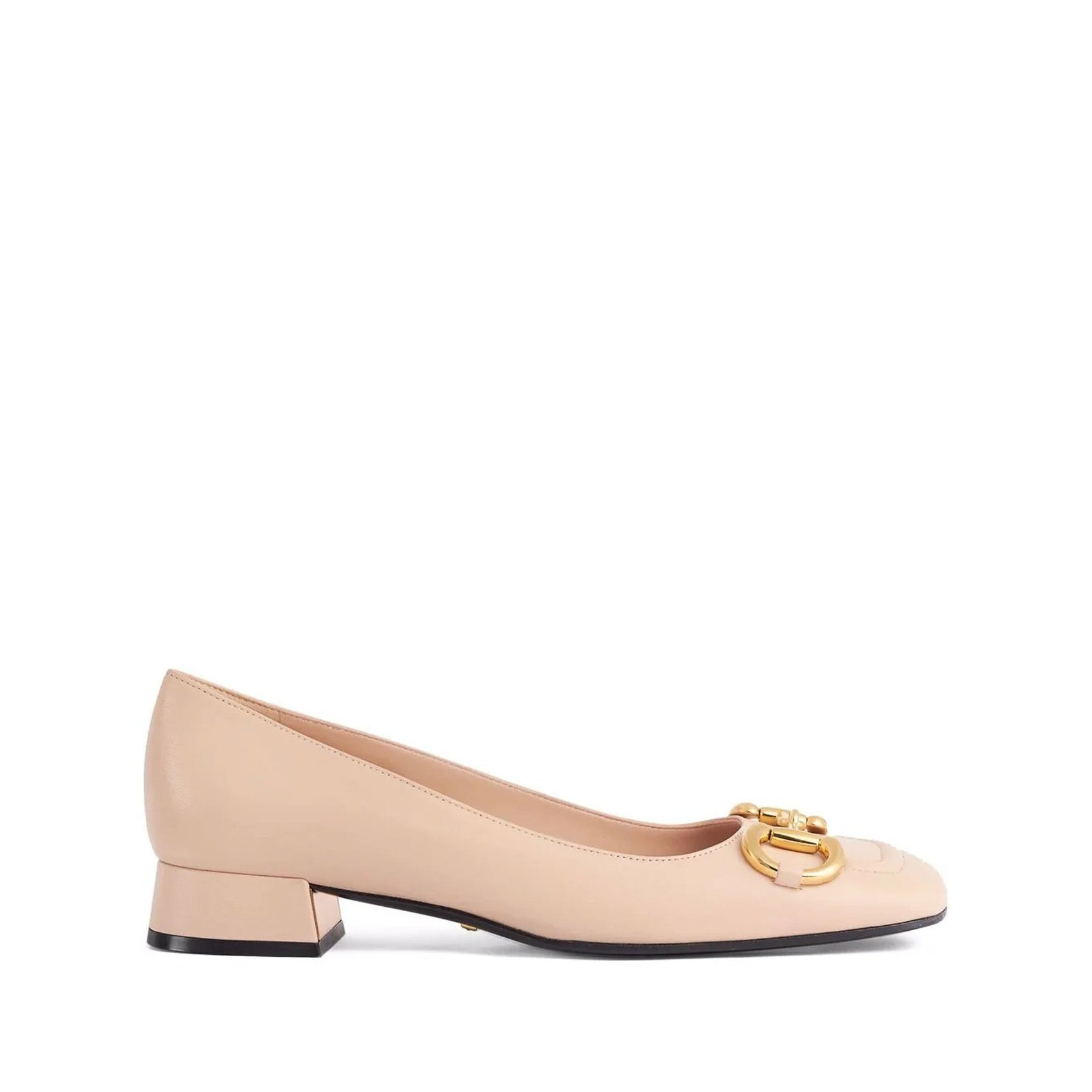 存在感のあるゴールドのホースビットが、都会的な洗練を漂わせる「グッチ(GUCCI)」のフラットパンプス。滑らかなスクエアトゥがやさしくコーディネートに寄り添い、肌馴染みの良いヌーディーカラーで足元から春を演出します。