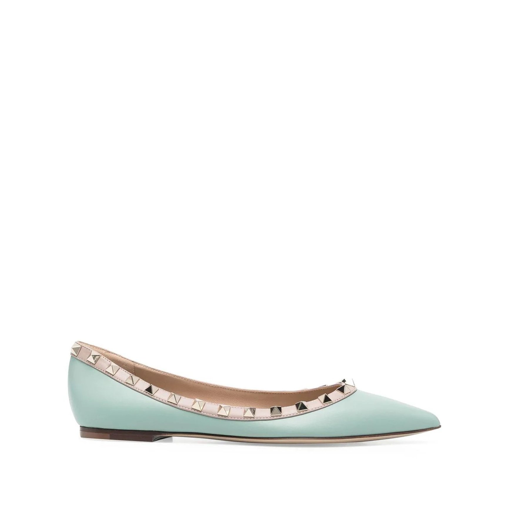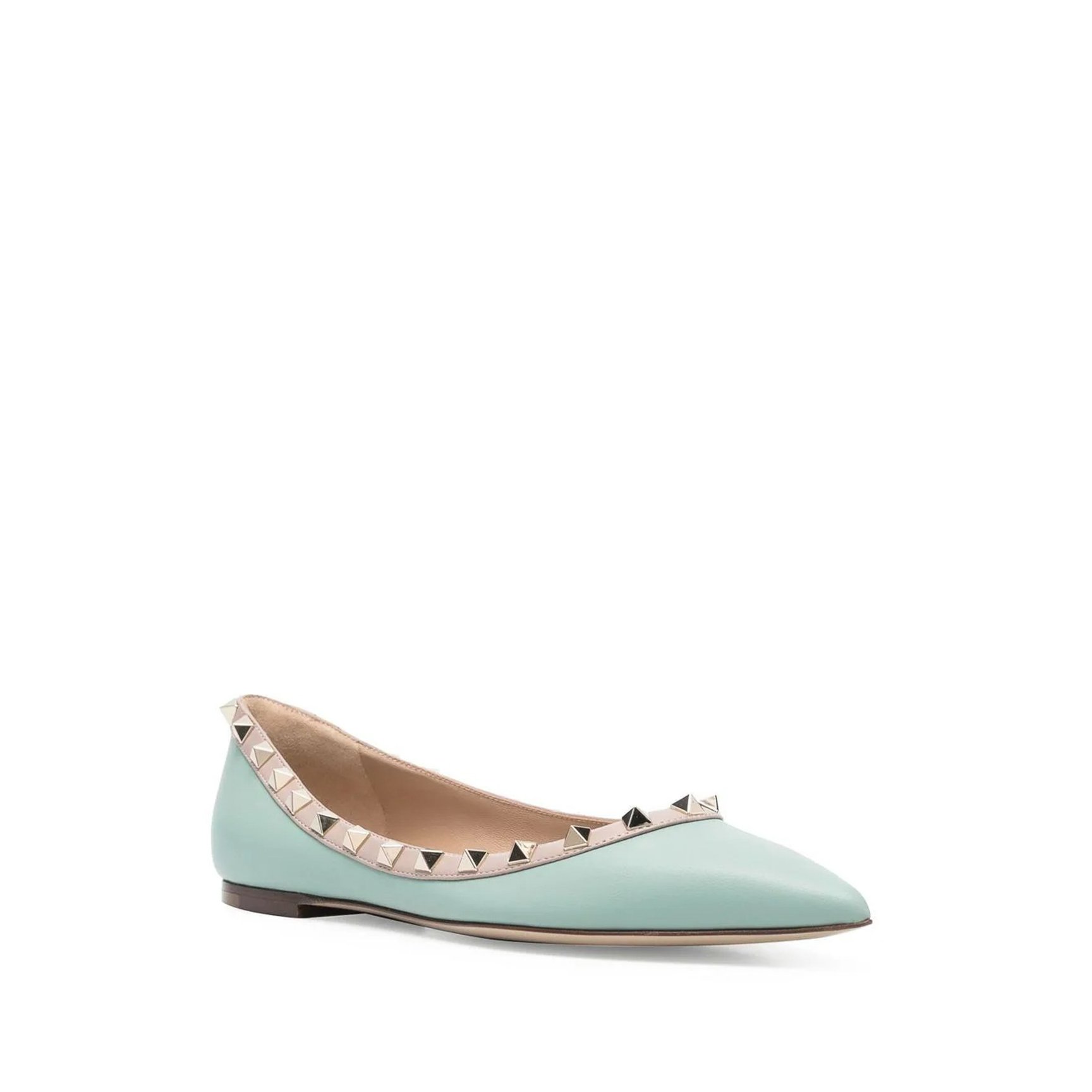 スタッズのパワーと、清涼感のあるパステルミントが融合した「ヴァレンティノ ガラヴァーニ(Valentino Garavani)」のフラットシューズ。足元にアクセントを効かせて、いつものコーディネートに春の気分をプラス。ピンクやブラックなど色違いも必見です。