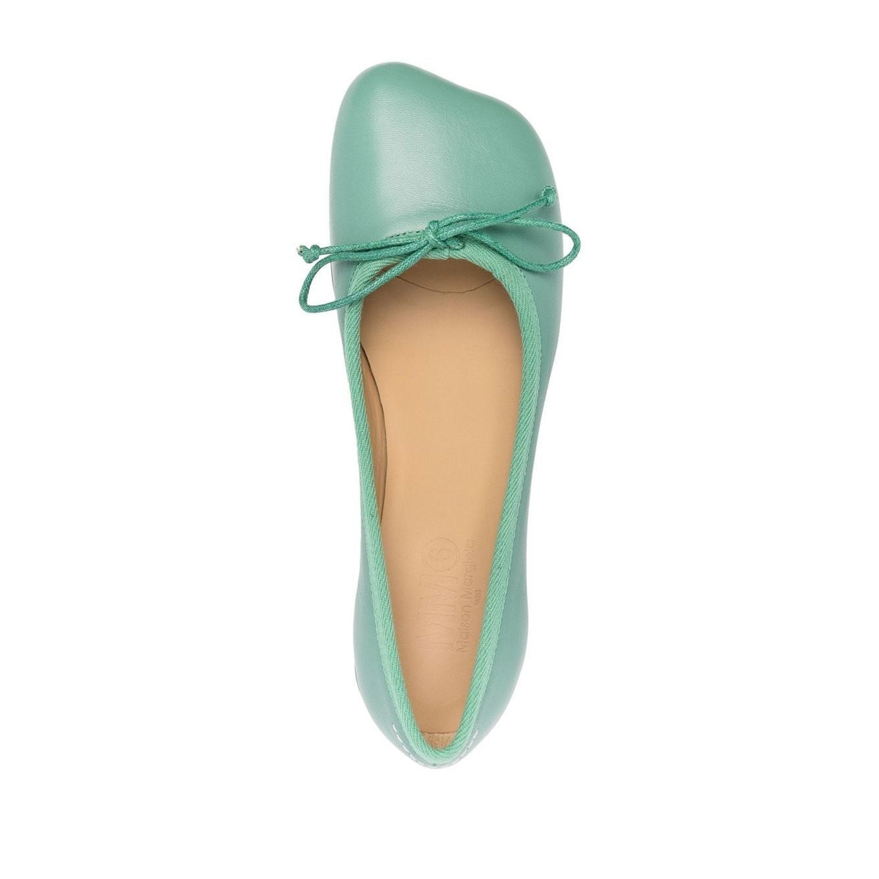 独特なトゥシルエットとヒールのステッチが個性を惹き立てる、「エムエム6 メゾン マルジェラ(MM6 Maison Margiela)」のフラットパンプス。シンプルなデザインにマットなライトグリーンが映える、これからのシーズンにぴったりな一足です。