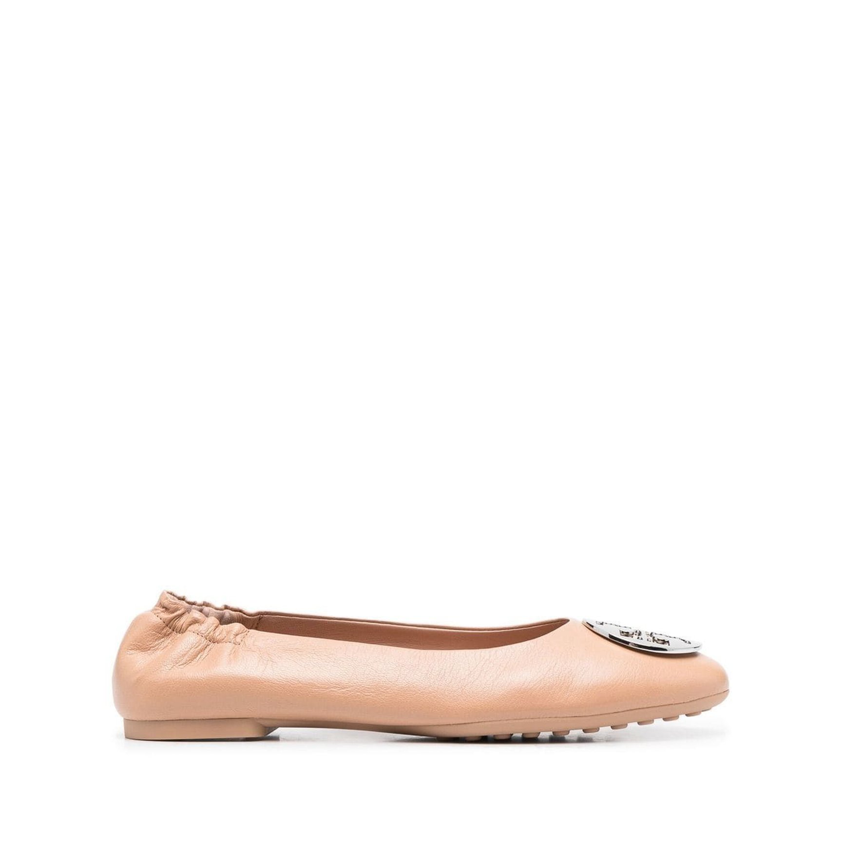 大胆なシルバーのモチーフプレートが印象的な、「トリー バーチ(TORY BURCH)」のフラットシューズ。柔らかなレザーのボディとラバーのソールで、着用感も動きやすさも抜群です。折りたたみ式なので、室内履きとしてもおすすめ。