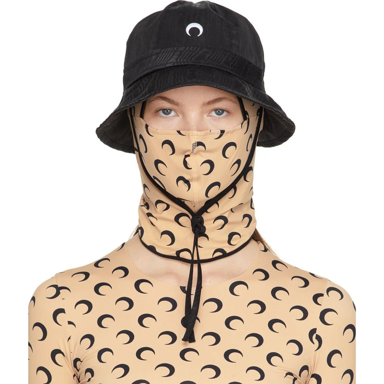 バケットハットカテゴリは、「マリーン・セル(MARINE SERRE)」のカジュアルなアイテムからピックアップ。どんなコーディネートにも調和する、ムーンモチーフが静かにパッチされたブラックのハットは、あご紐付きでアウトドアなどにも活躍しそうな予感。