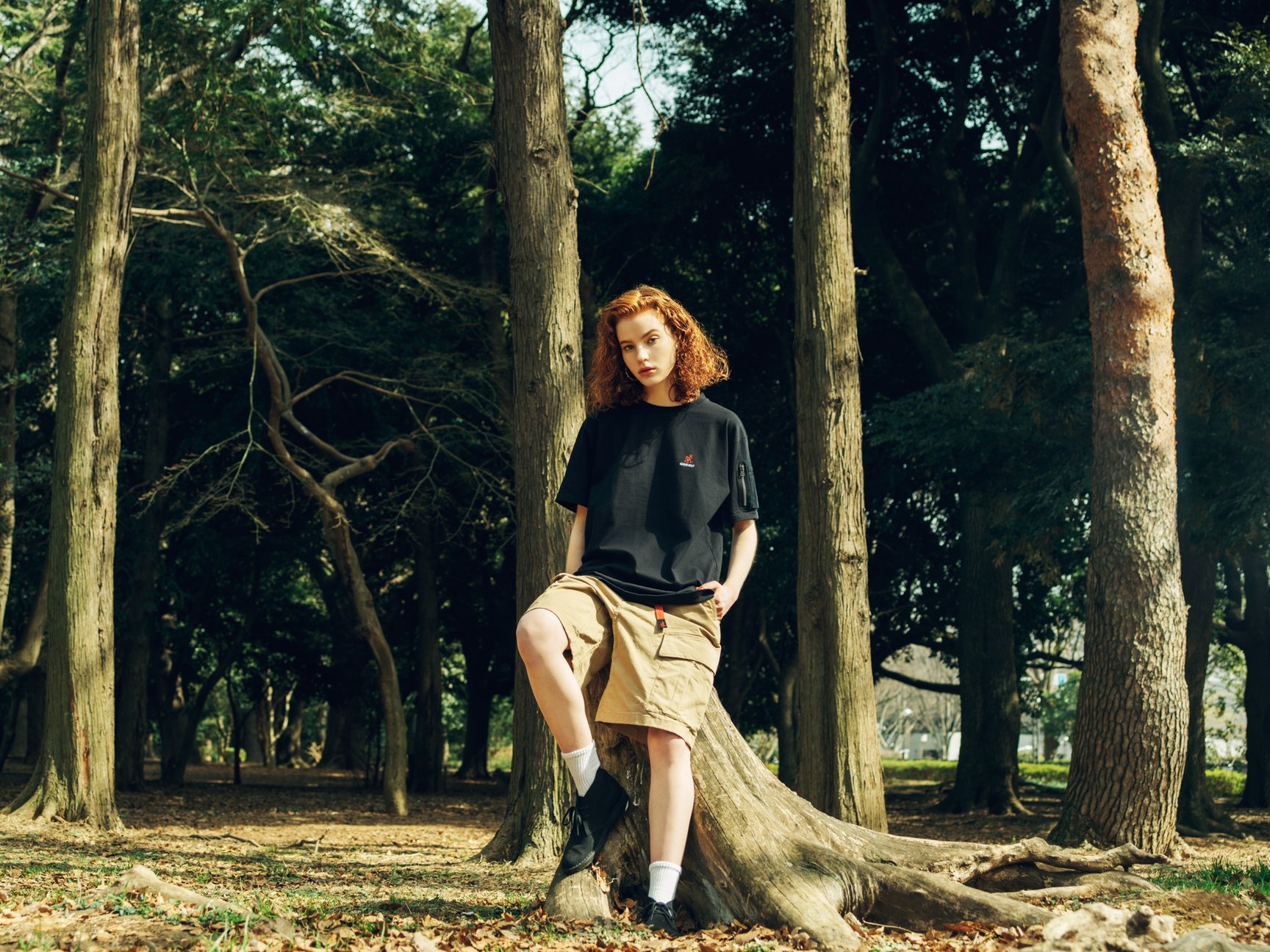 「グラミチ(Gramicci)」と「アルファ インダストリーズ(ALPHA INDUSTRIES)」のコラボが初めて実現。フライトジャケットに採用されているシガレットポケットをあしらったTシャツ(6600)や、ミリタリーカモモチーフのタイダイ染めで仕上げたTシャツ(6600)、ミリタリーパンツのディテールをグラミチを代表するクライミングパンツに落とし込んだカーゴショートパンツ(9680)とカーゴロングパンツ(1万4080)の全4型を展開します。いずれのアイテムにも両ブランドのロゴを配しており、パンツのベルトはアルファ インダストリーズを象徴する赤リボンの配色でアレンジ。アルファ インダストリーズの渋谷店とオンラインストアで取り扱います。