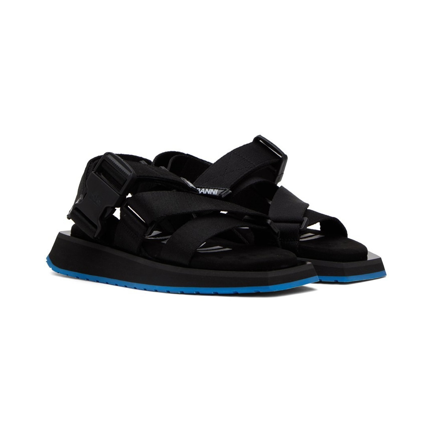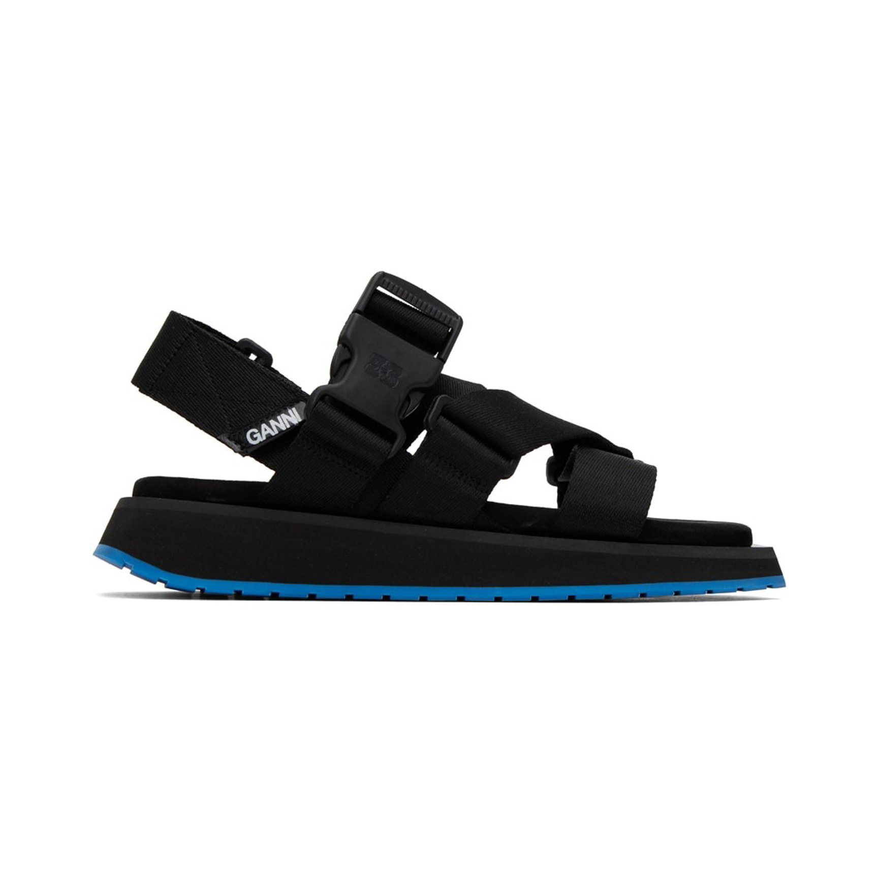 ブラックとブルーのコントラストがクールな「ガニー(GANNI)」のサンダル。サイドリリースバックルで着脱もラクに行えるのも嬉しいポイント。デイリーユースにもぴったりな、都会的なデザインです。