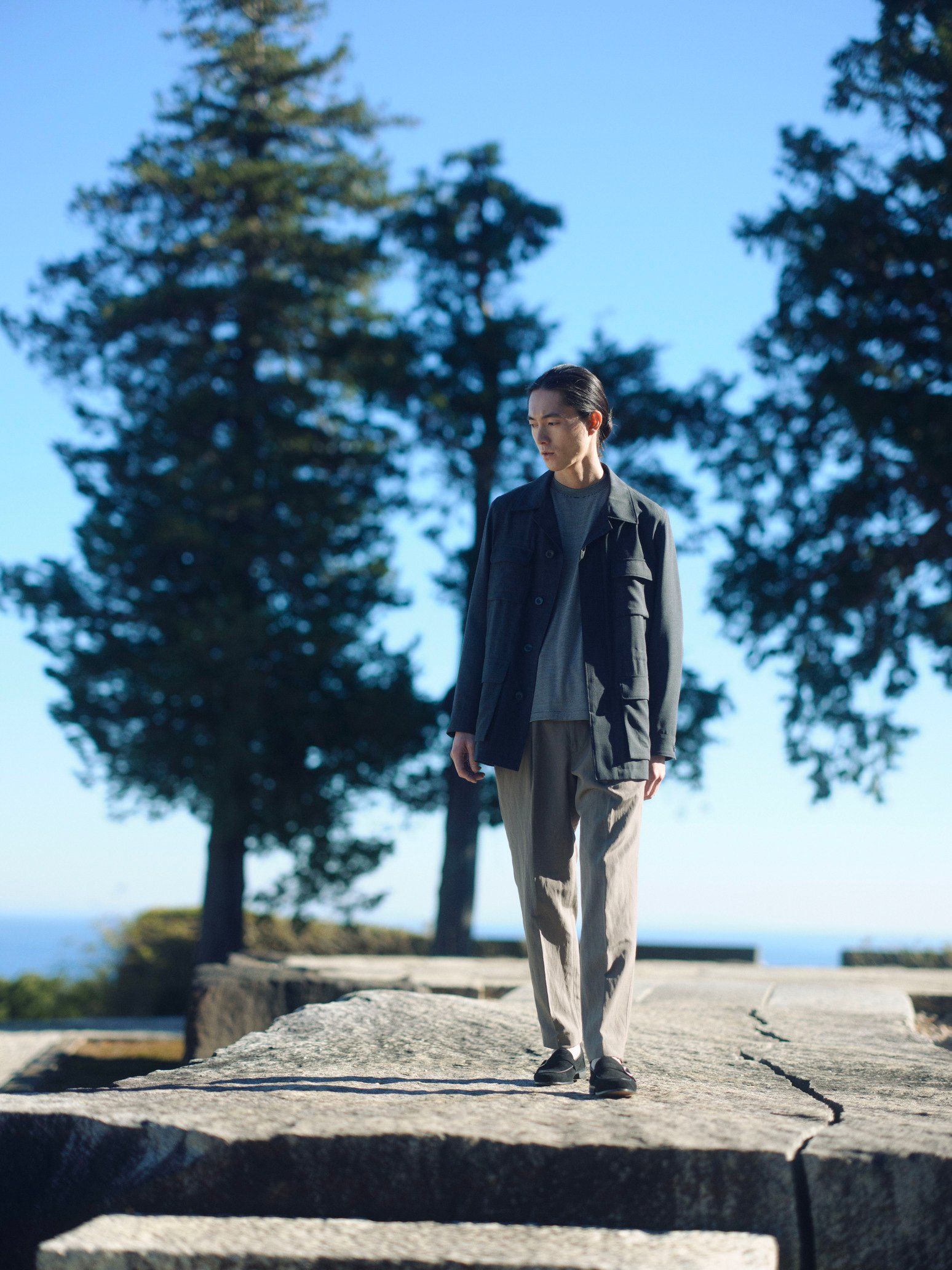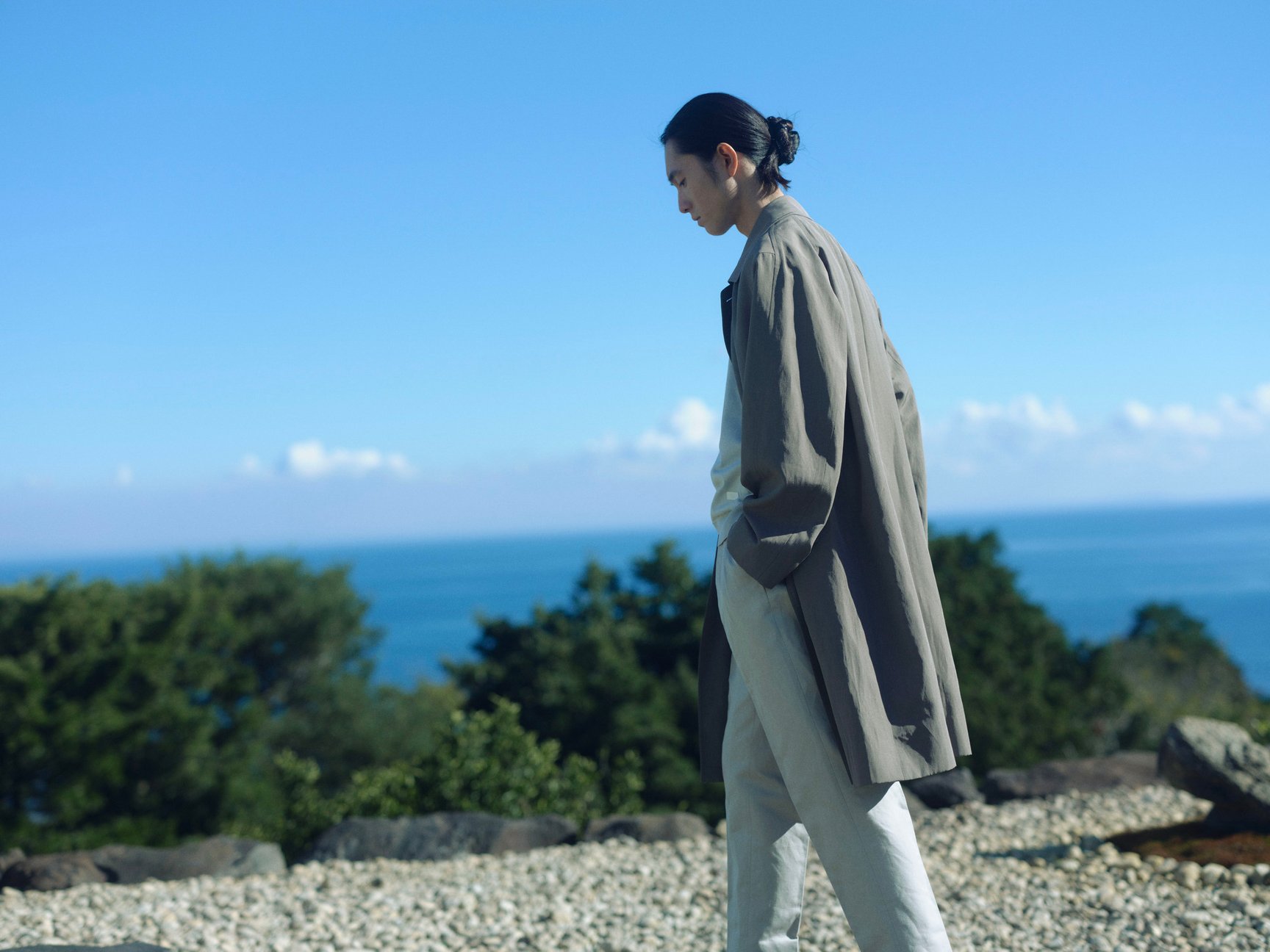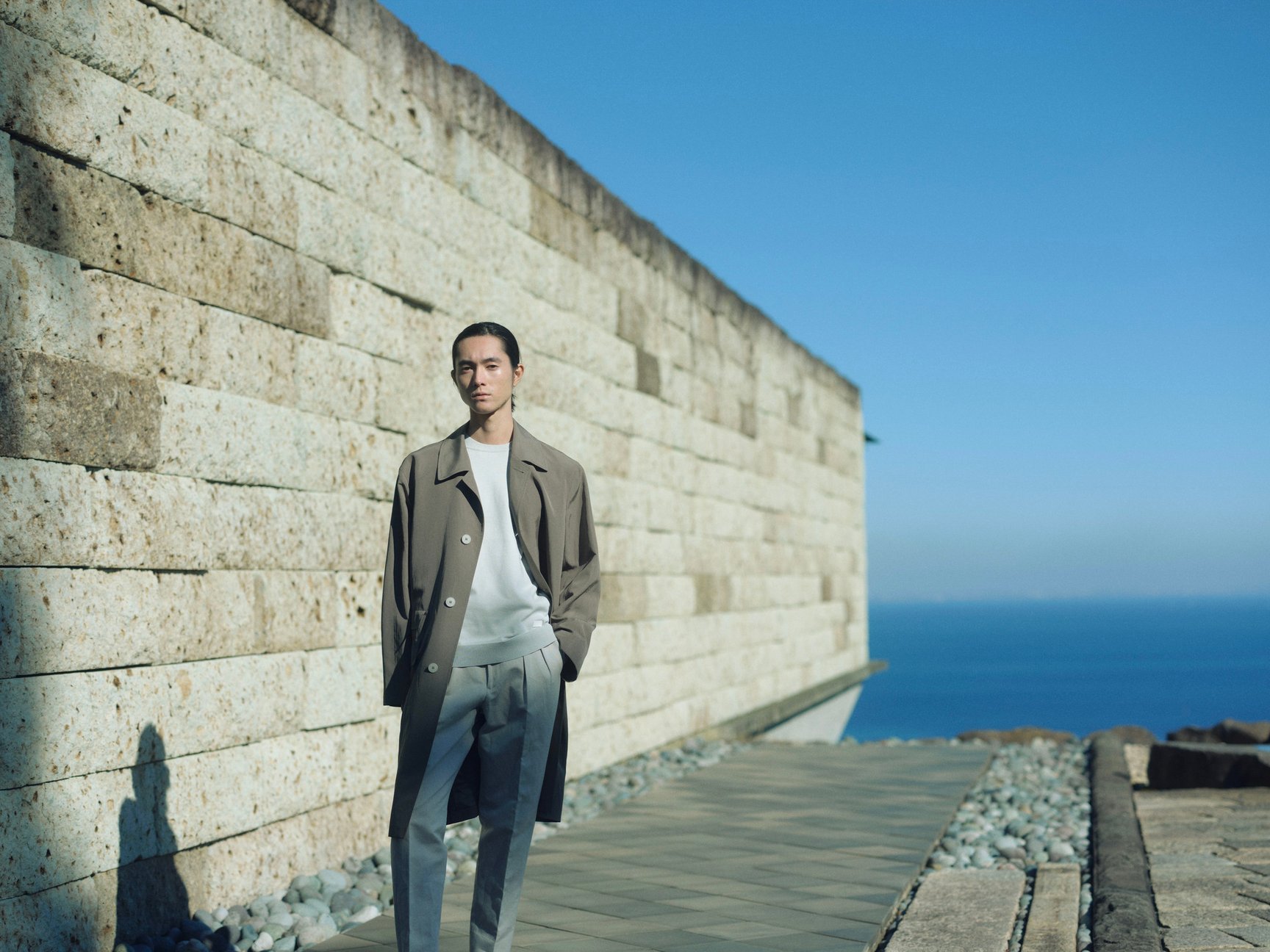 タケオキクチのアイデンティティや、アーカイブを掘り下げ、さらに今の時代感も取り込んだ、ブランドを象徴するレーベル「THE FLAGSHIP」。厳選した国内の素材を使用し、日本で最高峰の技術を誇る工場で縫製した品質の良さは、コンセプトの"THIS IS THE JAPAN BRAND"を体現している。洗練されたシンプルなアイテムで彩られたスタイリングは、着る人をより魅力的に見せる。