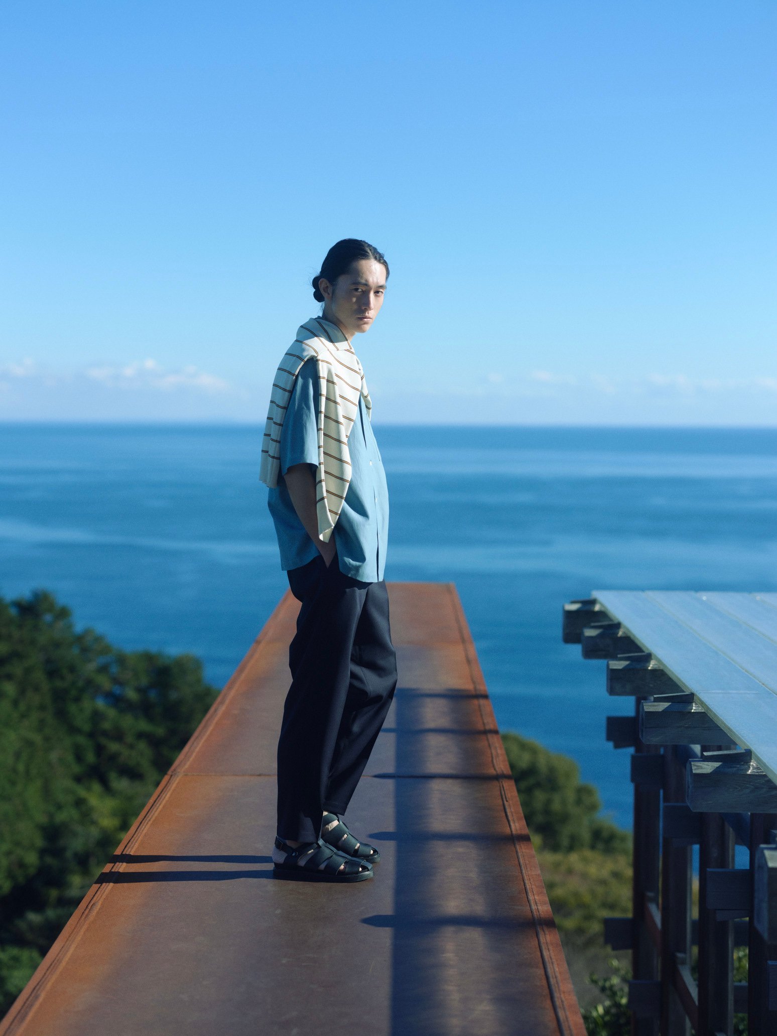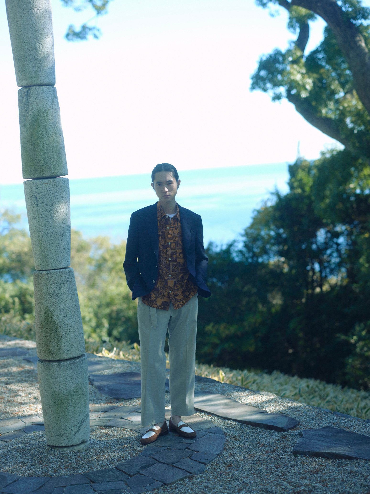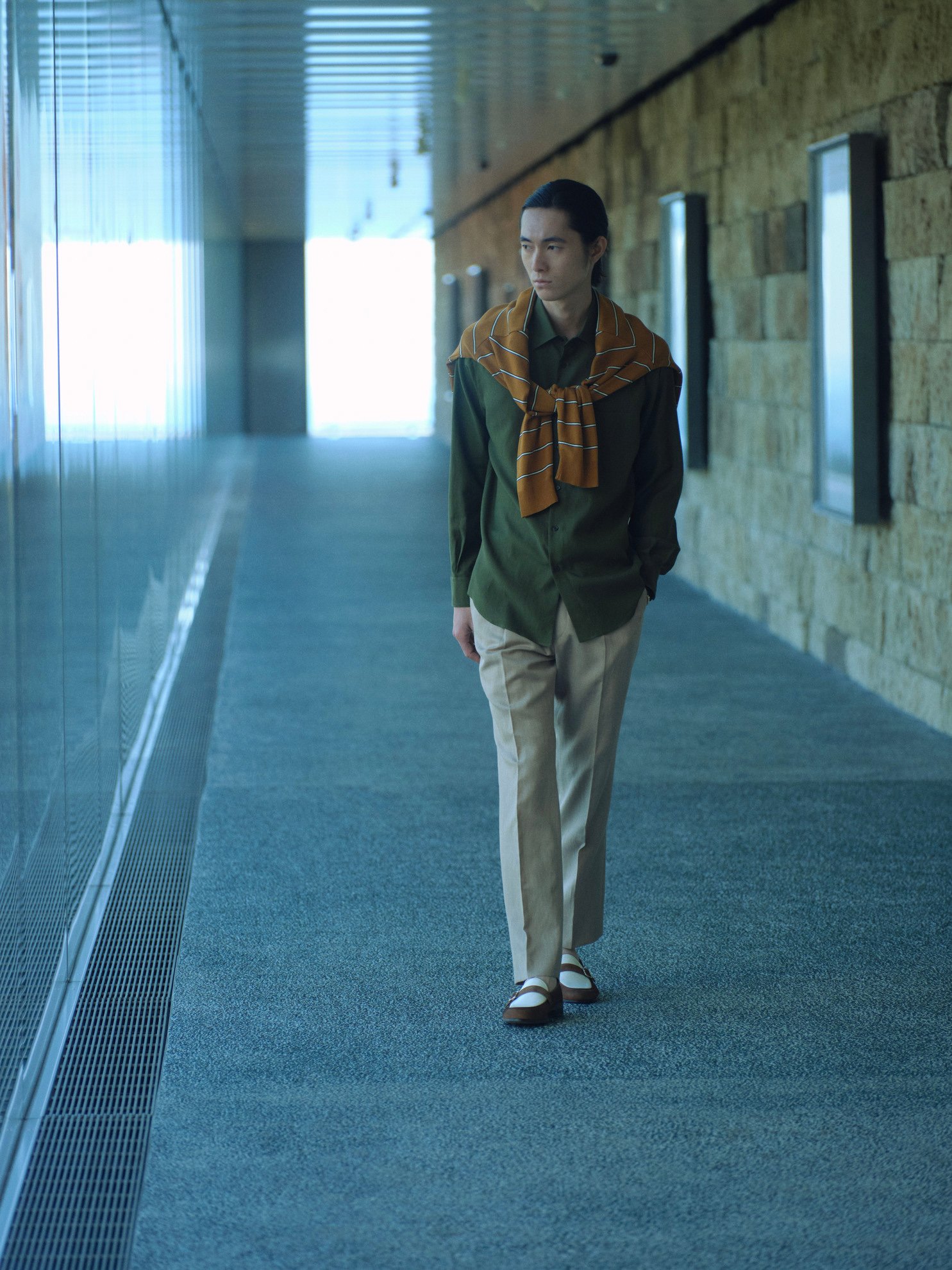 タケオキクチのアイデンティティや、アーカイブを掘り下げ、さらに今の時代感も取り込んだ、ブランドを象徴するレーベル「THE FLAGSHIP」。厳選した国内の素材を使用し、日本で最高峰の技術を誇る工場で縫製した品質の良さは、コンセプトの"THIS IS THE JAPAN BRAND"を体現している。洗練されたシンプルなアイテムで彩られたスタイリングは、着る人をより魅力的に見せる。