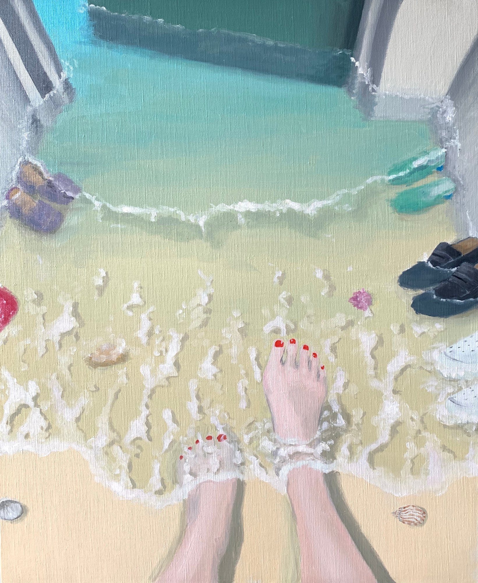 元々、高校生の時に美術部に所属していて。中高生の時には文化祭を通して作品発表をしていたんですが、大学院時代はまったく制作をしていませんでした。そんな時、就職先も決まってあとは卒業するだけというタイミングで、友人から「ギャラリーで企画展示をするから作品を発表してくれないか」と誘われて。今思えば、それがアーティストとして活動するきっかけになりました。おかしな話なんですが、それまでは漠然と「絵は描き続けるもんだろう、私は」とずっと思っていたんです。でも、はじめてギャラリーでしっかりと発表の場を設けていただいたことで「やっぱり絵を描くことは楽しい。描くだけではなくて発表もしていこう」と自覚したんですよね。
