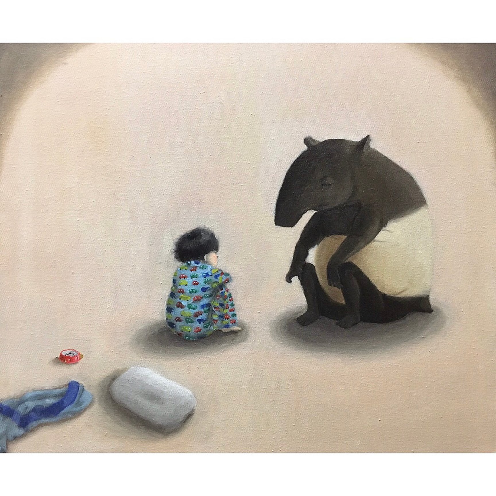 話は少し逸れるかもしれませんが、前回の個展名を「食べる前に相手をよく見る」というタイトルにしたんです。一応、英語表記タイトルもつけておこうかなと思って調べてみたんですが「相手」というニュアンスを正確に捉える英単語が無かった。Youだと人間を指している感じがするし、ThisやItだと物になる。「相手」というものがどういった物体なのかをきちんと特定しなければ英訳が作れないということに衝撃を受けました。日本語であれば、たとえそれが人間でも、物でも、動物でも「相手」と言える。すごい便利な言葉ですよね。そういう余白が私は好きで、その余剰が絵にも表れているのかもしれませんね。「余白が好きなので、世の中に強く伝えたいことがあるわけではなく、描きたいヴィジュアルから表現を始めています」と。