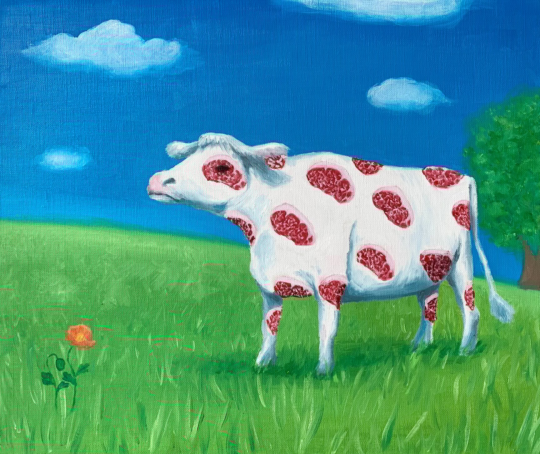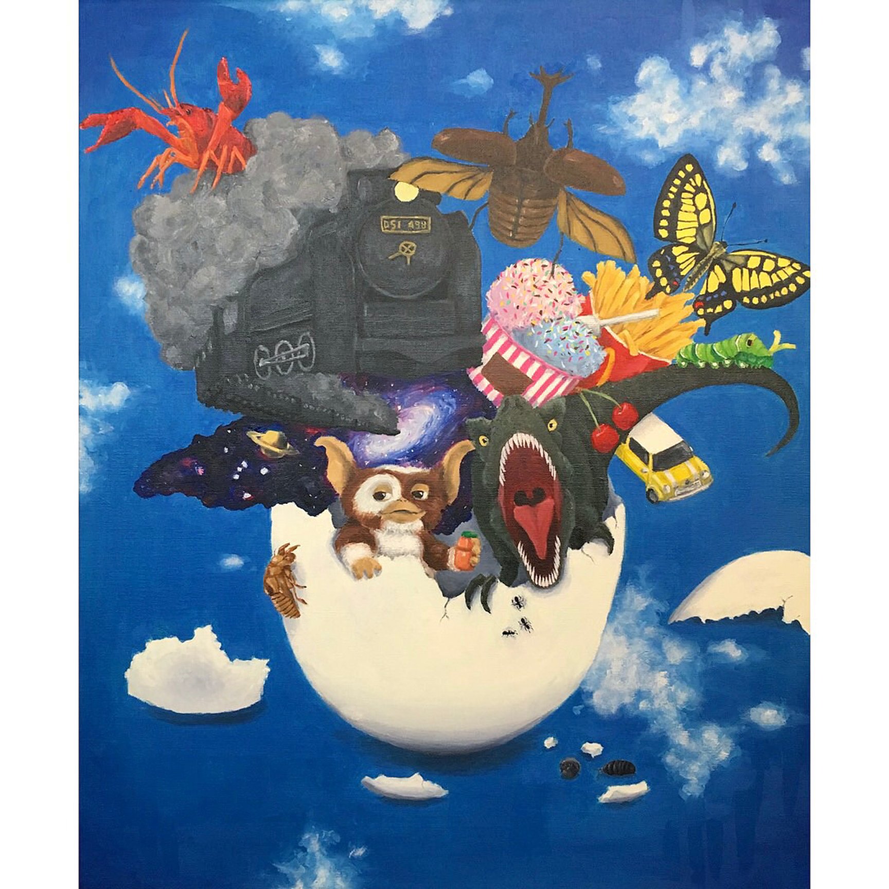 慶應義塾大学薬学部を卒業した銀座三越のアシスタントバイヤー、その傍で「箸でつまんだお肉」の絵を描いているアーティスト。この一文だけで、アーティスト 田辺美那子への興味は否が応でも高まる。箸でつまんだ肉たちは、関連性を感じる食卓やスーパーではなく、青空や森などの大自然を背景に背負っておりその異様さを際立たせている。一方で「コンセプトはない、なぜなら余白が好きだから」と田辺は話す。なぜ薬学からファッション、そしてアートの道に進むことになったのか。本人に話を聞いた。