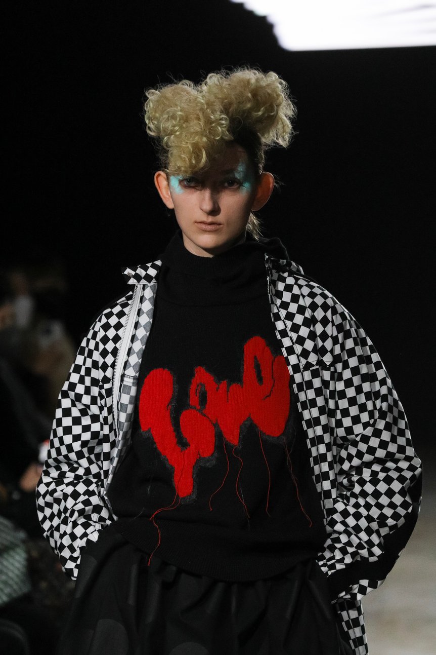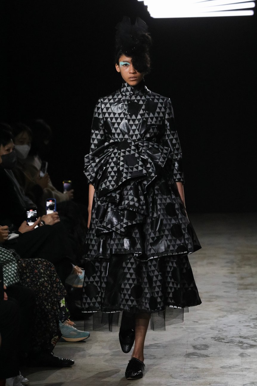 「トリコ コム デ ギャルソン(tricot COMME des GARÇONS)」から「タオ(tao)」に変更し3シーズン目を迎えるコレクションのフロアショーは、東京・青山のコム デ ギャルソン本社で開催。薄暗い会場にテンポ感のあるBGMが響き、音に呼応するようにライトがチカチカと点灯してショーがスタートした。