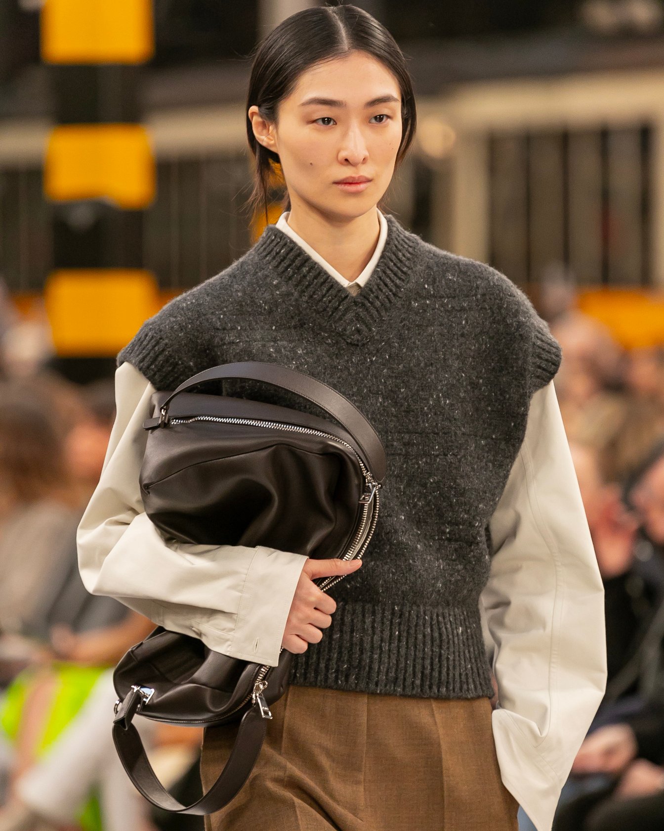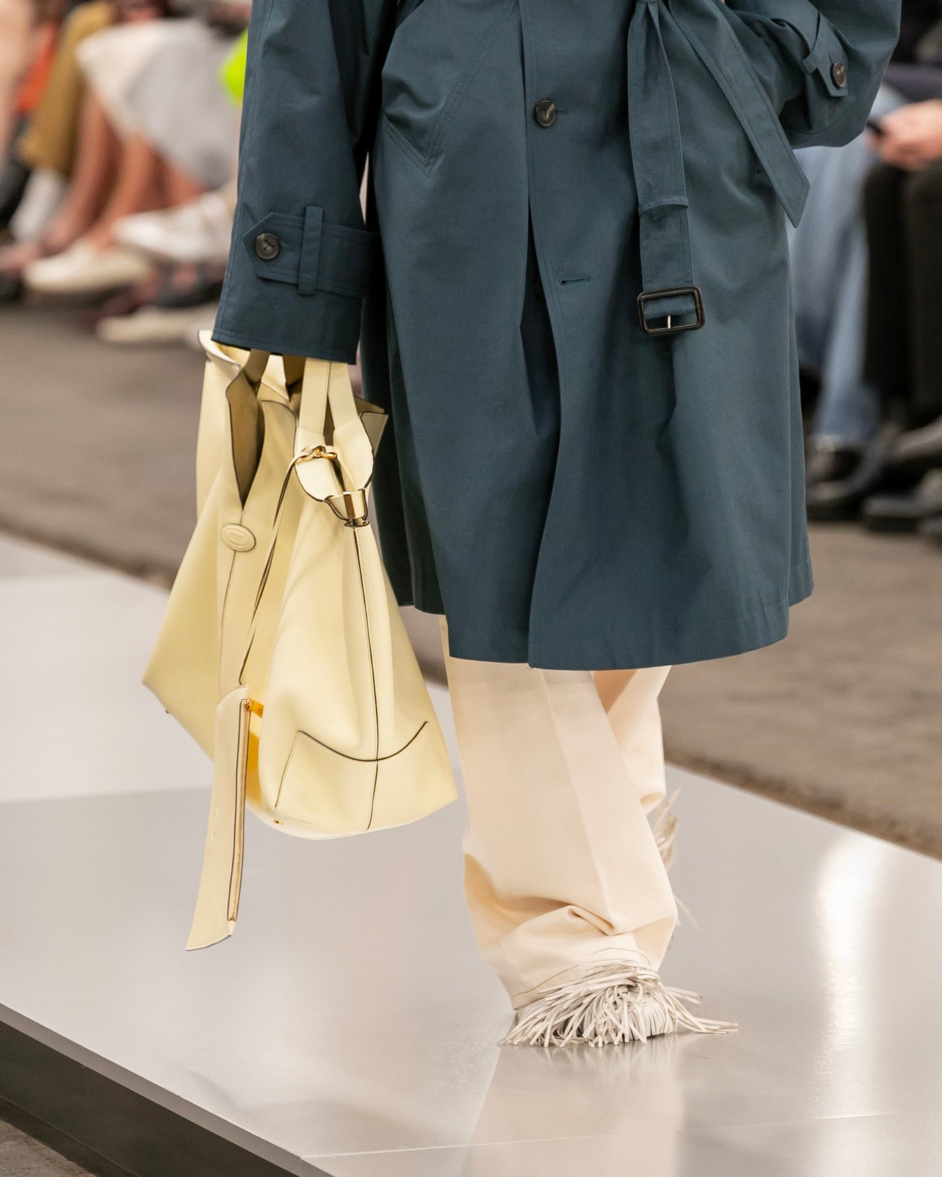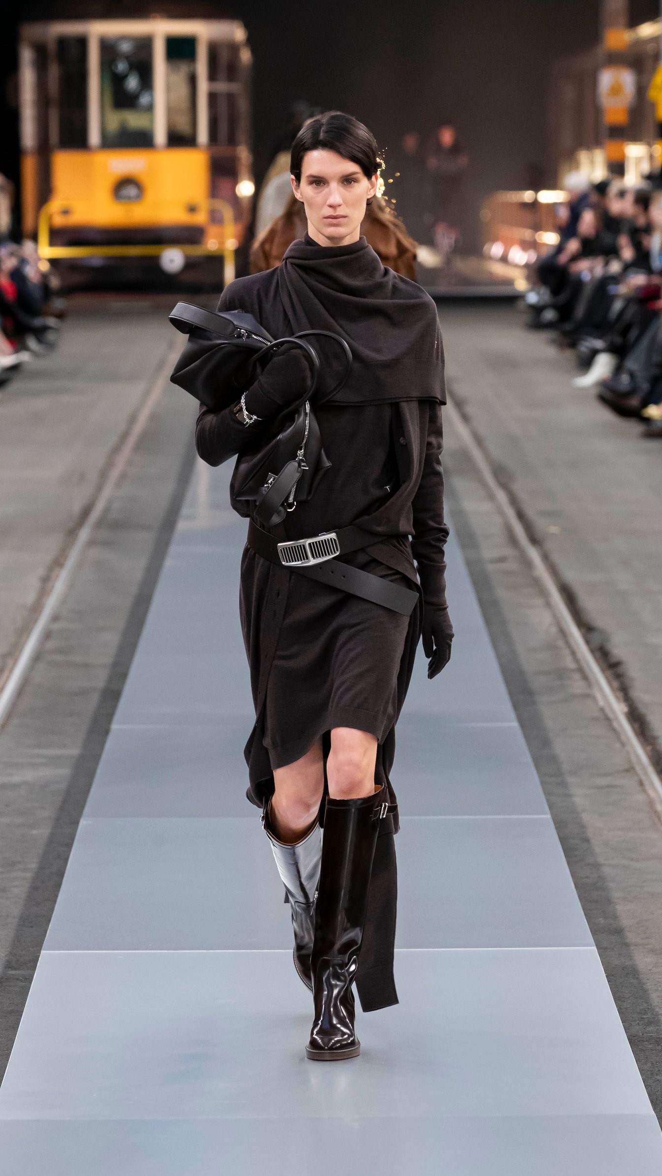 会場は歴史ある路面電車の倉庫で、ミラノの街中を巡る路面電車が発着する場所。テーマの「トッズ・イン・モーション」を感じさせる、活気に溢れたショーで新たなスタートを切った。