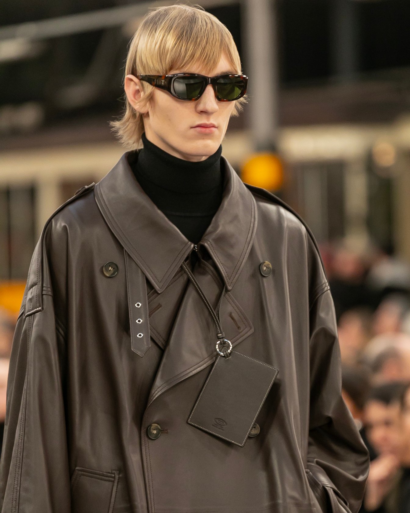バッグはTシリーズの新作として「ディー アイ バッグ スウィング」がお目見え。柔らかいレザーを使用しているため、ワイドなファスナーを開くとシルエットを変化させることができるもの。ファスナーにベルトをあしらった新作ハンドバッグはランウェイではクラッチのように抱えたり、ハンドバッグとして手提げにしたりと持ち方を提案。またクロスボディのガーメントケースや、首からかけられるストラップ付きのカードケースなど、小物も新鮮だった。