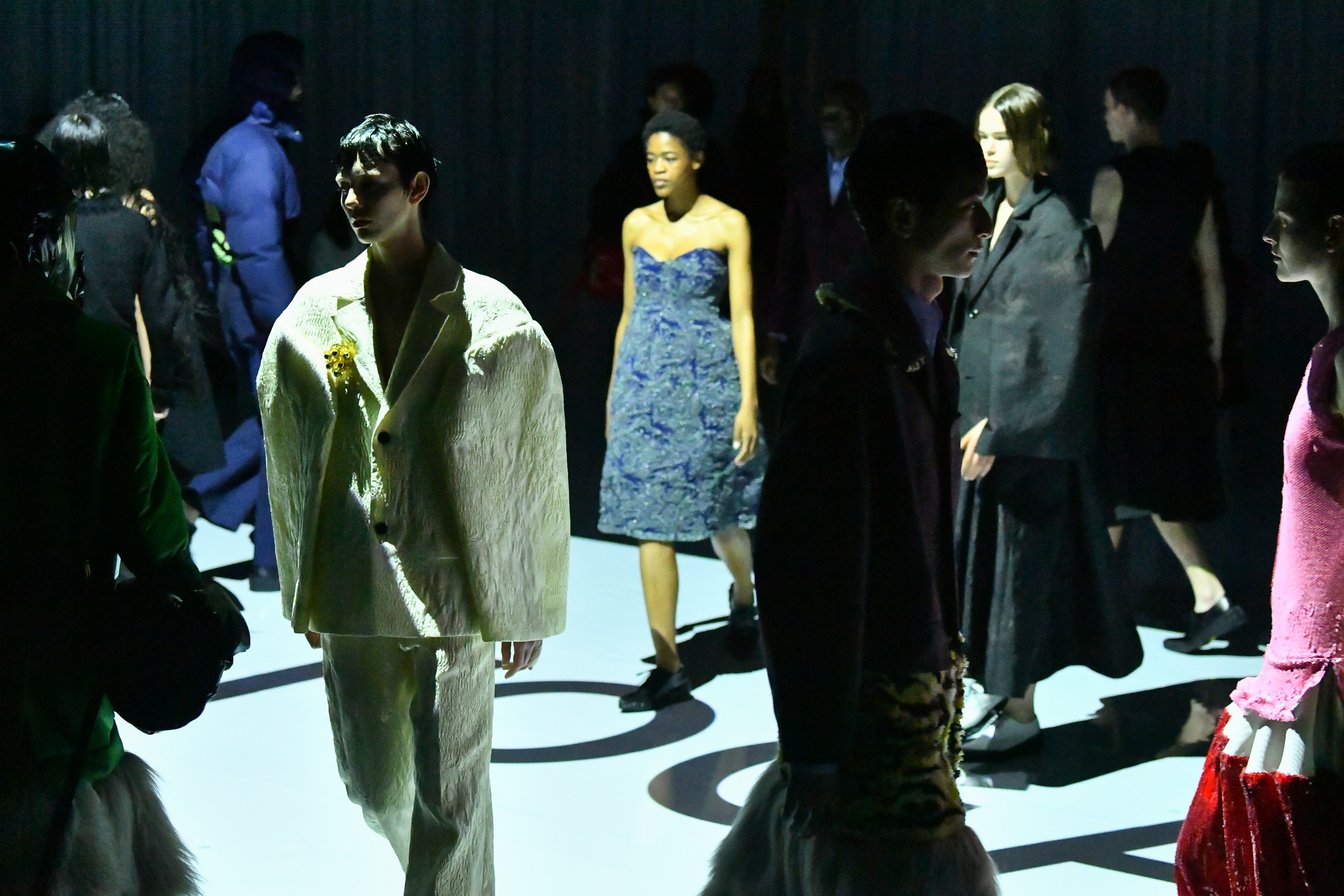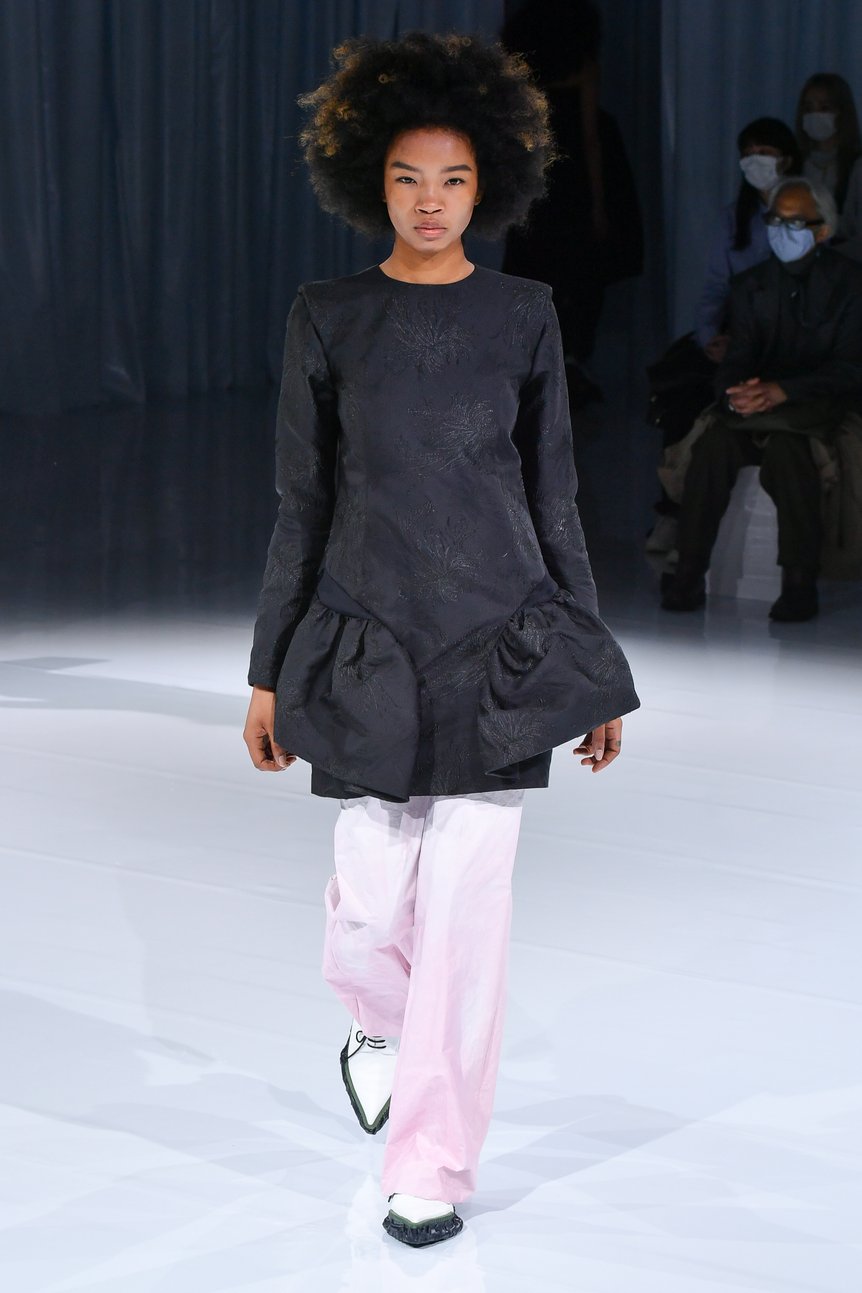 ショーは、ロンドンファッションウィーク中に発表したムービーとは異なる演出で、新たなアイテムを追加した東京オリジナルのルックで提案。着る人の個性に寄り添うブランドらしく「場所や着る人が違えば、それぞれの個性で服も変わって見える」というデザイナー古田泰子の考えで、同じコレクションでも2都市それぞれ違った見え方となった。ショーのラストは、多様な人々が行き交うスクランブル交差点のように、モデル全員が入り乱れる演出で締め括った。