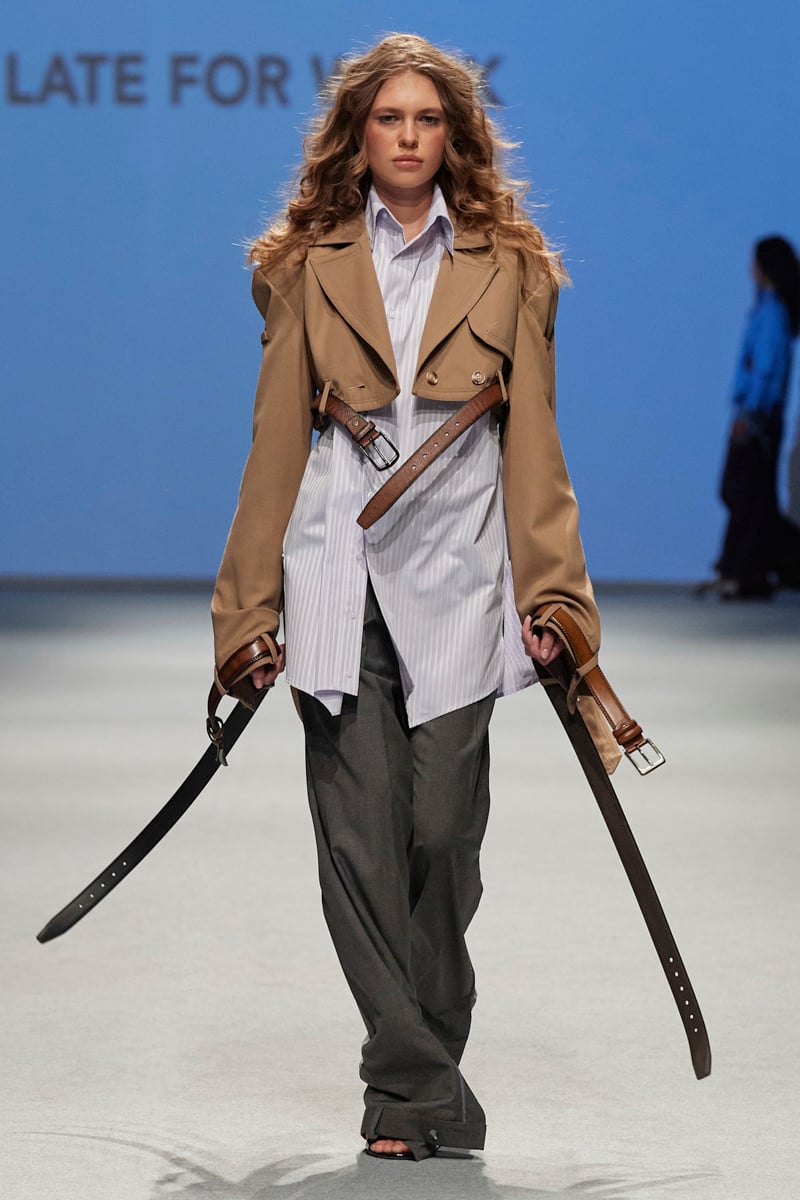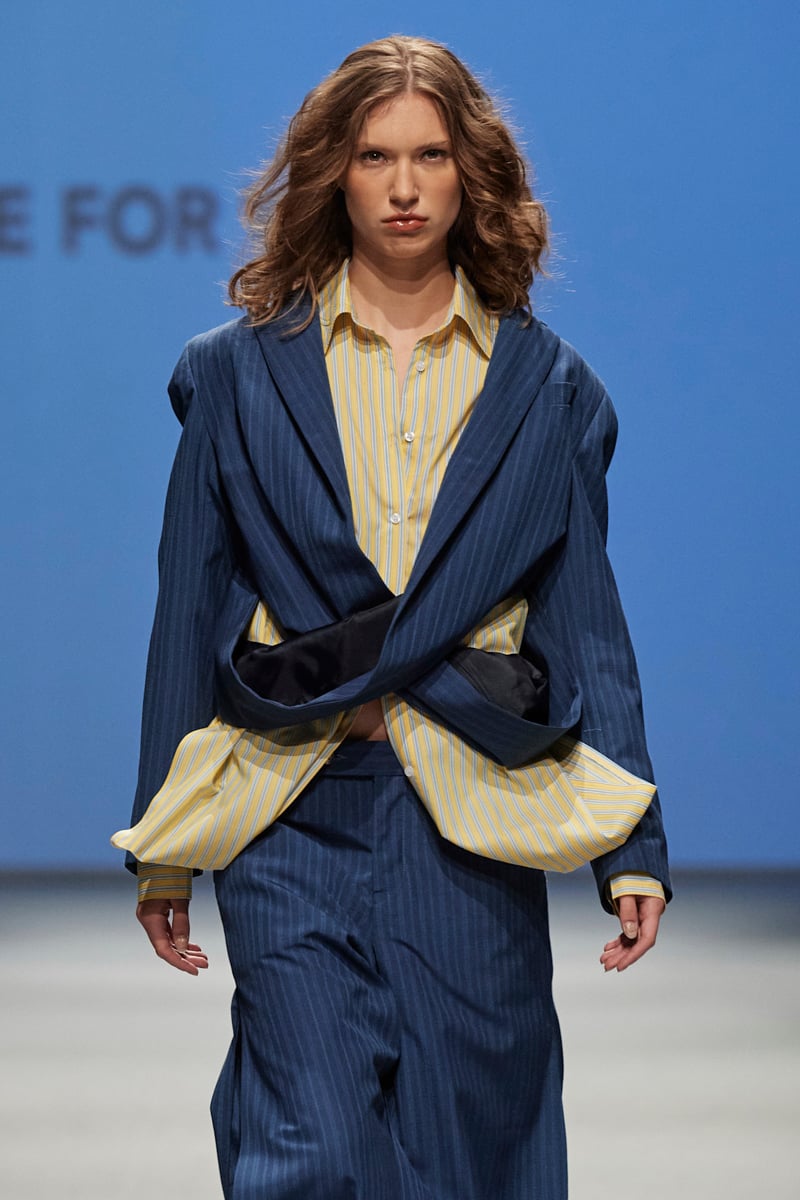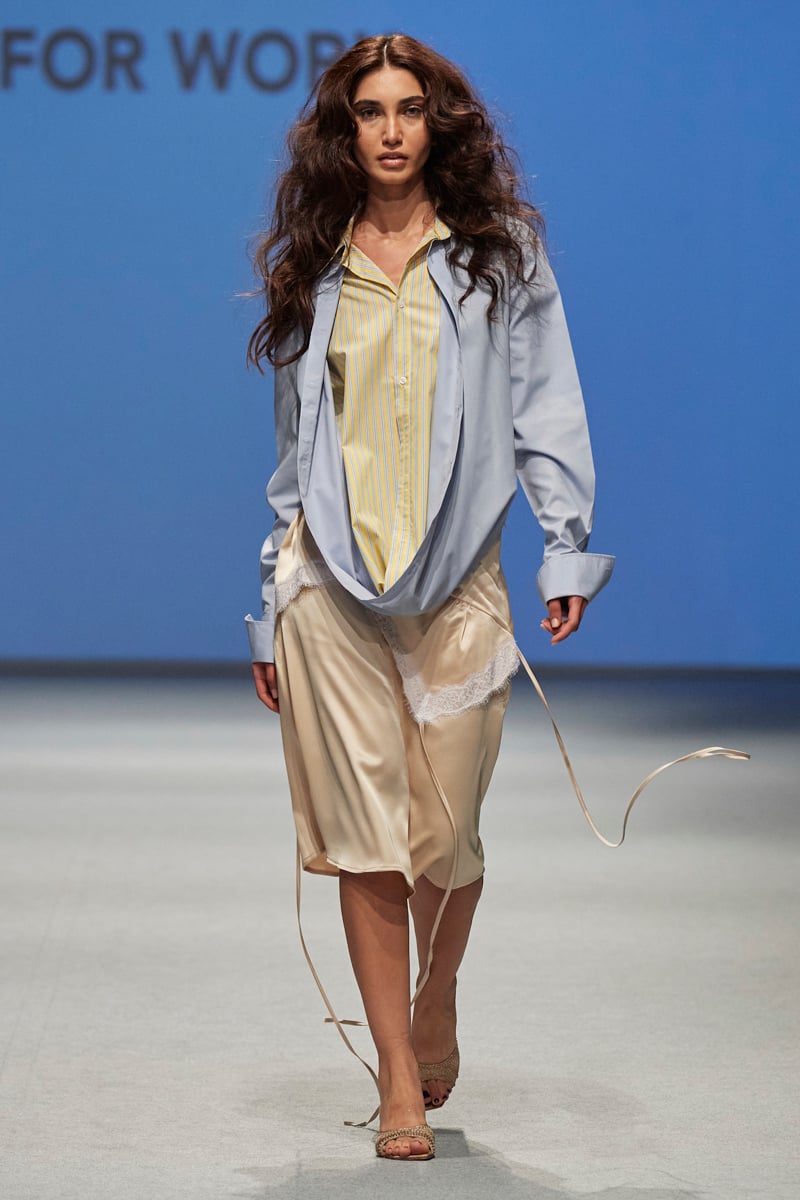 ドリッシは、「曖昧になりつつも、服装の上でも未だTPOとして区別される、オフィスと日常の境界を揺さぶり、仕事と人生というつまらない二項対立を破壊したい」と語る。ジャケットやシャツ、スラックスを基本としたワークウェアのコードを、ドッキングやレイヤード、大胆かつ不均衡なカッティングといった自由な視点で解体し、再構築したアイテムが揃う。