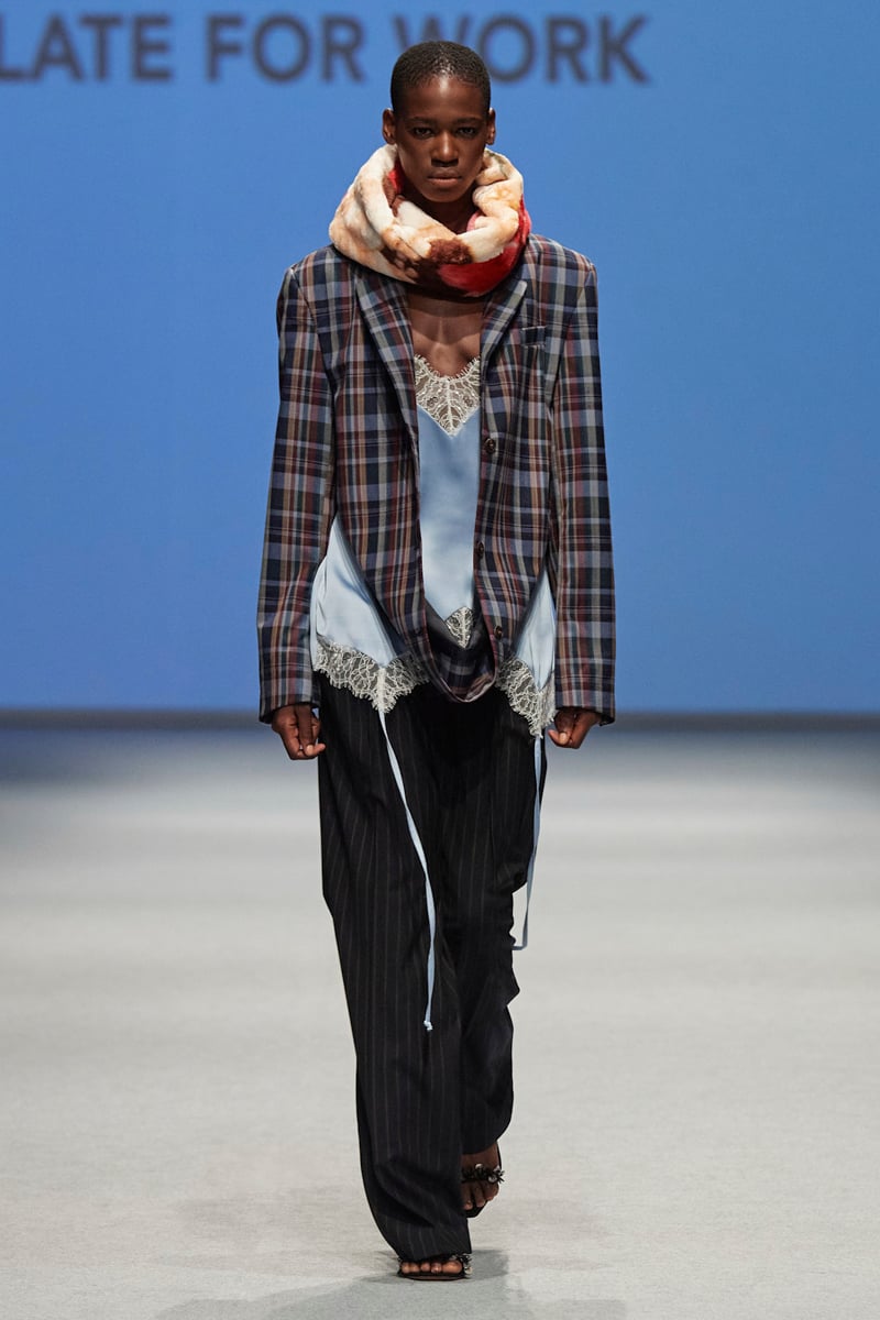 インサイドアウトなディテールのジャケットやパンツ、「オフィスでは隠すべき」ランジェリーをドッキングさせたアイテムなどユニークなムードを兼ね備えたアイテムは、デスク仕事に遊び心を加えてくれそうだ。