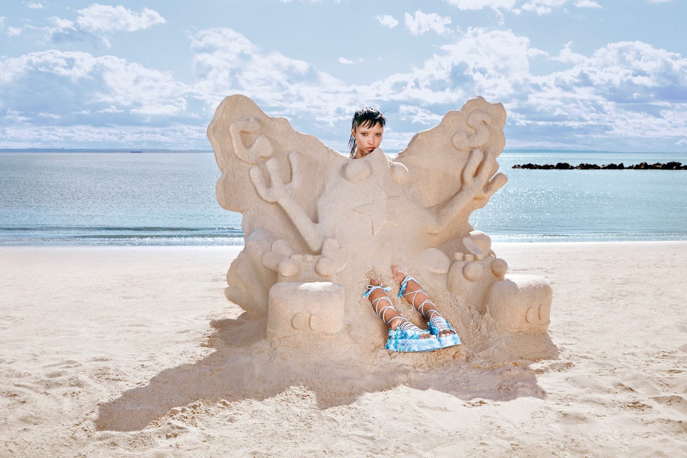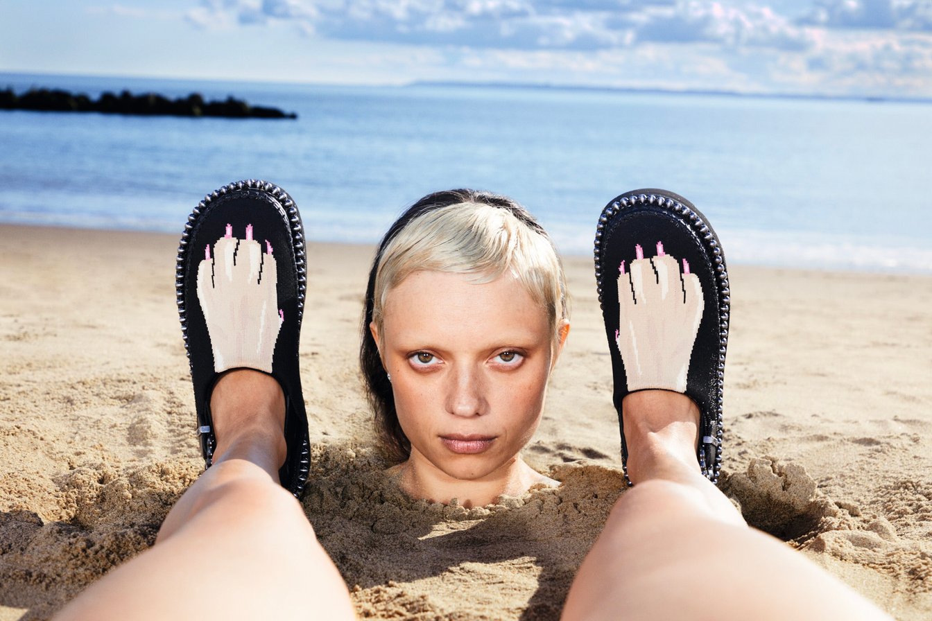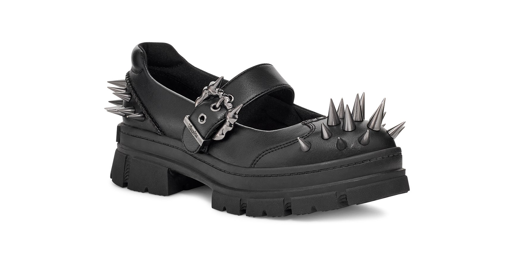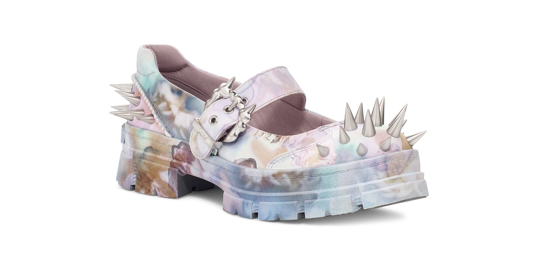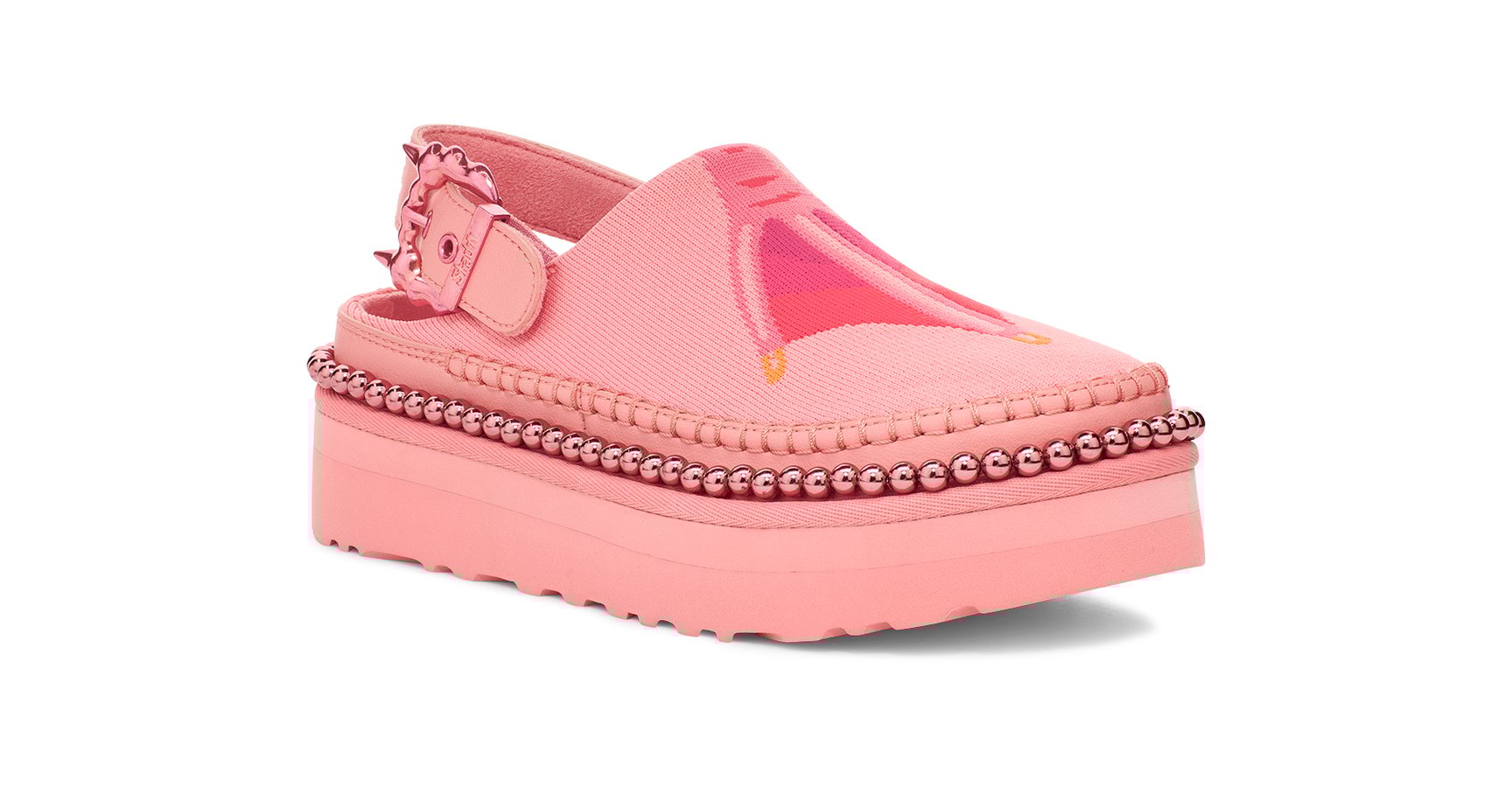 「UGG CS ゴールデングロウ サンダル(UGG CS Goldenglow Sandal)」(2種、3万8500)は、私のお気に入りアイテムでもあるコリーナ ストラーダのメドウスウィート ドレスのプリーツをモチーフにしていて、素晴らしい出来上がりに仕上がったと思います。動物の足の甲をプリントした「UGG CS ドッグ クロッグ(UGG CS Dog Clog)」と「UGG CS フラミンゴ クロッグ(UGG CS Flamingo Clog)」(各4万6200)は、ブランドの2023年秋冬ショー「私の友達を食べないで(Please Don't Eat My Friends)」の再演です。あのショーではモデルの顔に動物の特殊メイクを施し、動物の足の甲をプリントしたシューズを用意して、まるで自分の足が動物の足であるかのように見せました。「UGG CS メリー ジェーン(UGG CS Mary Jane)」(2種、5万600/いずれも税込)は、今みんなが履いている(アグの)クラシックな「メリー ジェーン(Mary Jane)」を、パンクなエッジを加えてアップデートしました。