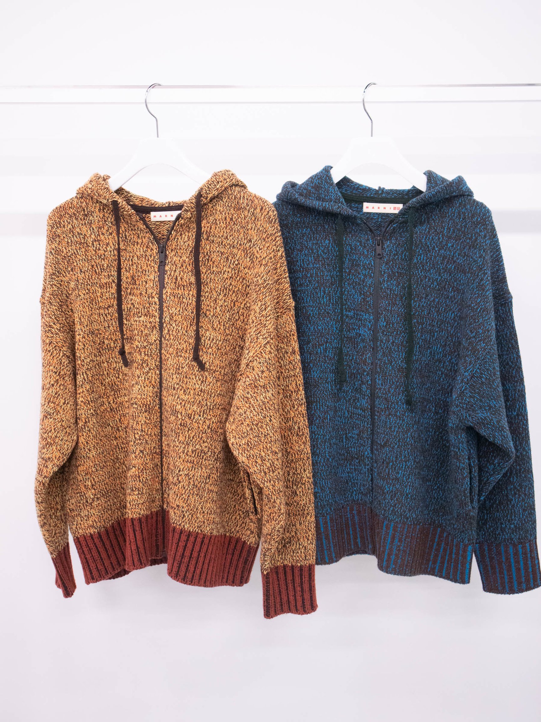 〈ミックスカラーニットオーバーサイズフルジップパーカ〉