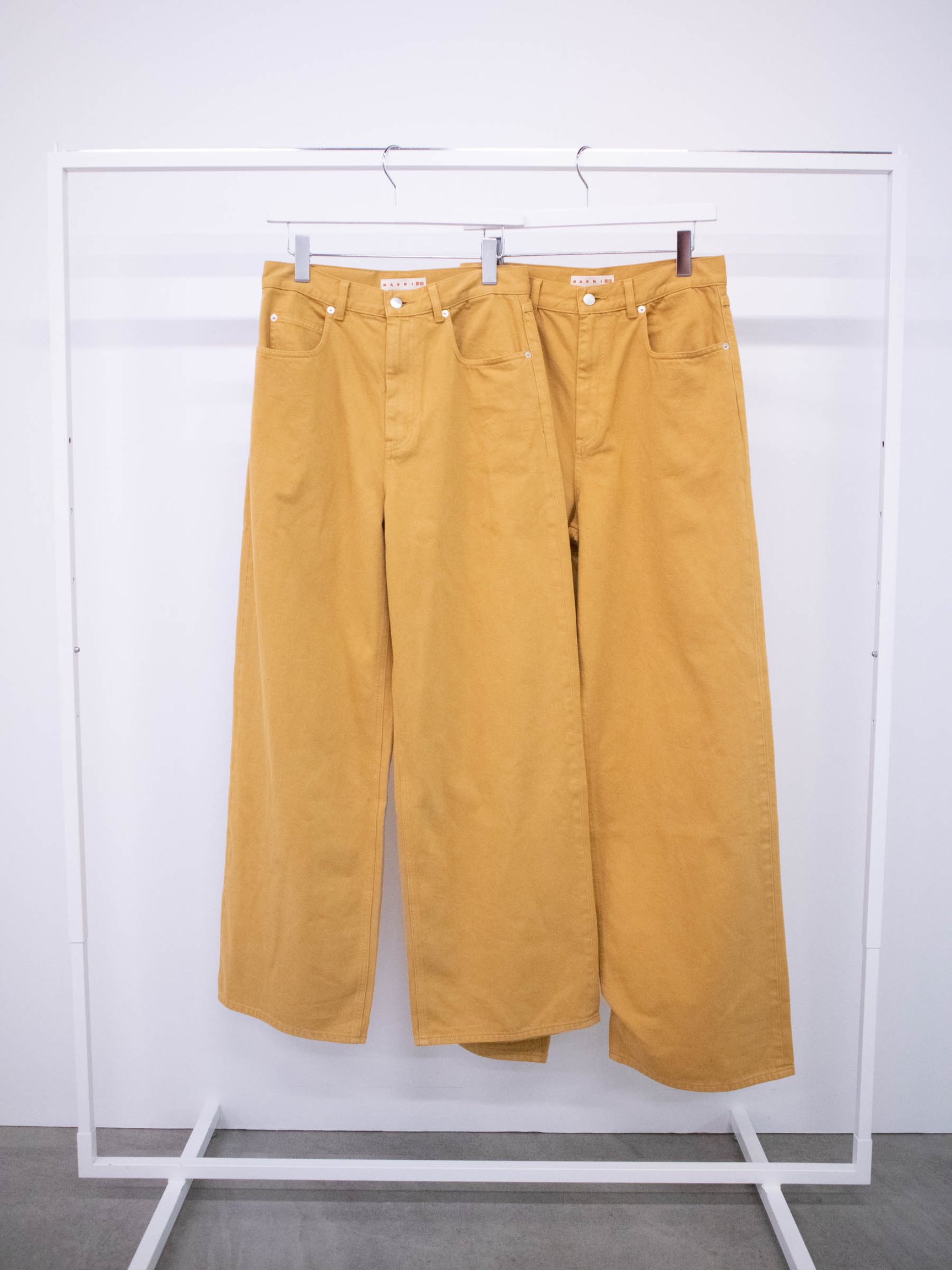 メンズ、ウィメンズ共に展開があった第1弾コラボですが、今回はウィメンズのみの展開となり、残念に感じている人も多いはず。そんなメンズの皆さんに朗報です。「バギージーンズ」はオンライン限定で丈長めバージョンが用意されているので、メンズのサイジングにも対応しています。大胆にワイドなシルエットと鮮やかなカラーリングが特徴で、コーディネートの主役として活躍してくれそう。ハイウエスト仕様なのでスタイルアップも叶います。