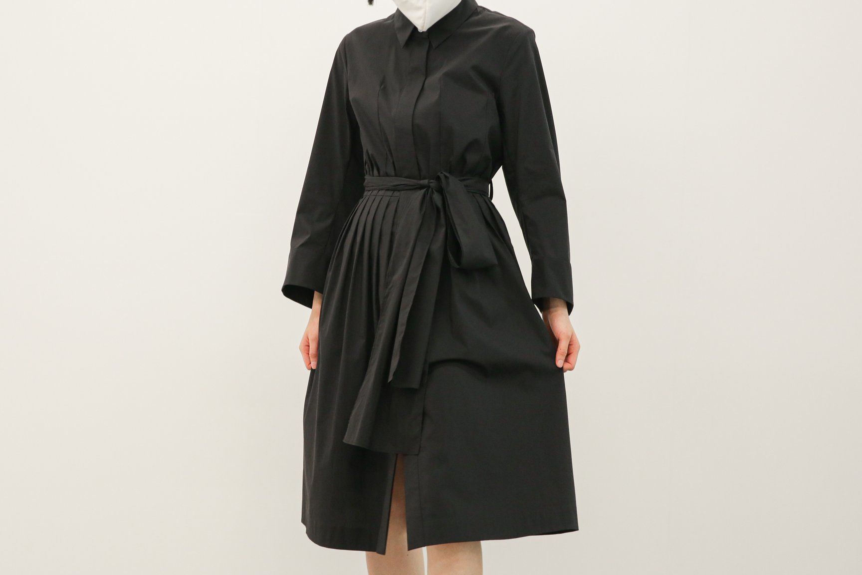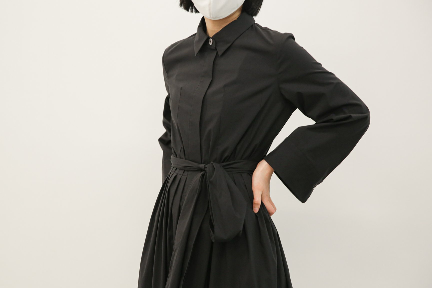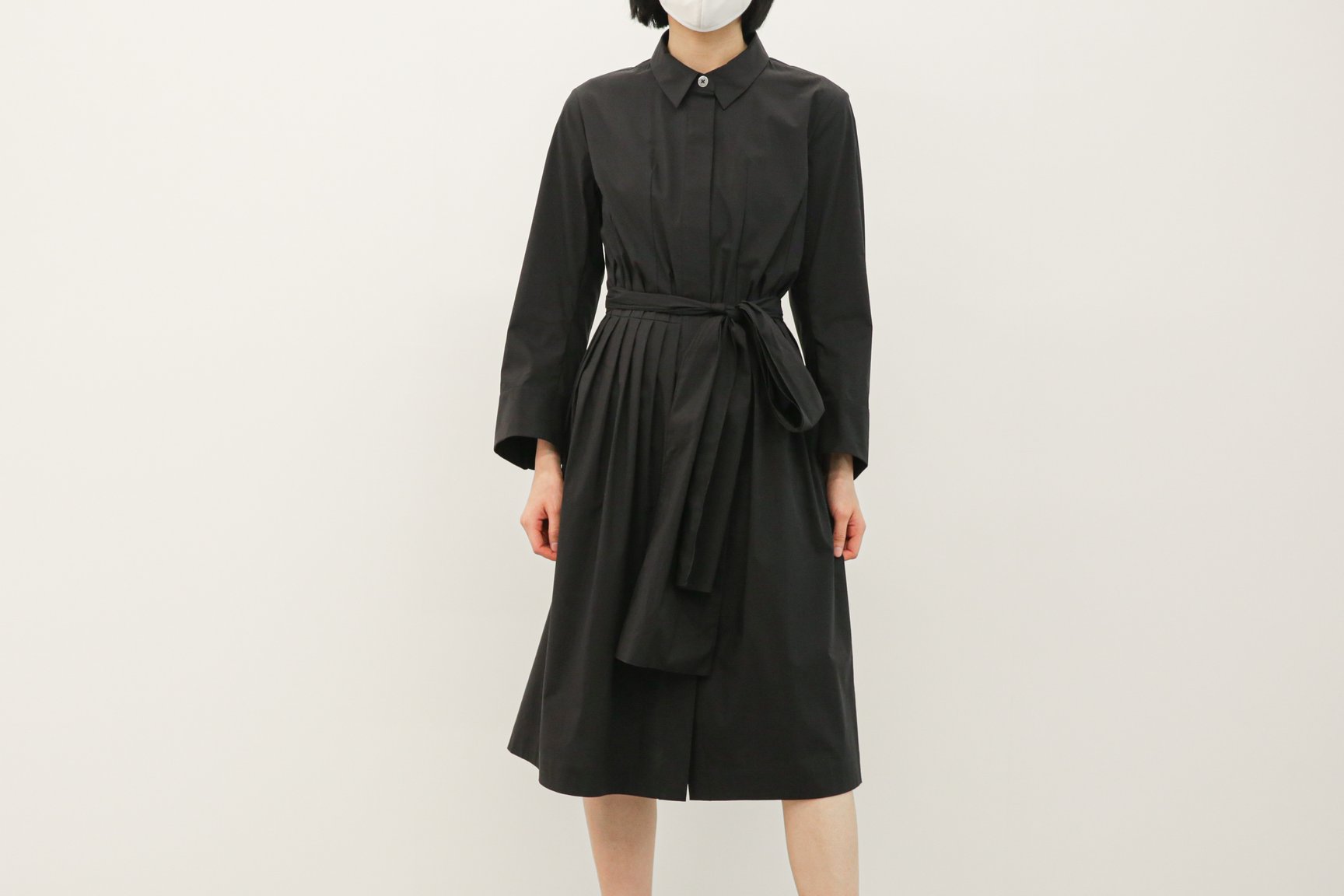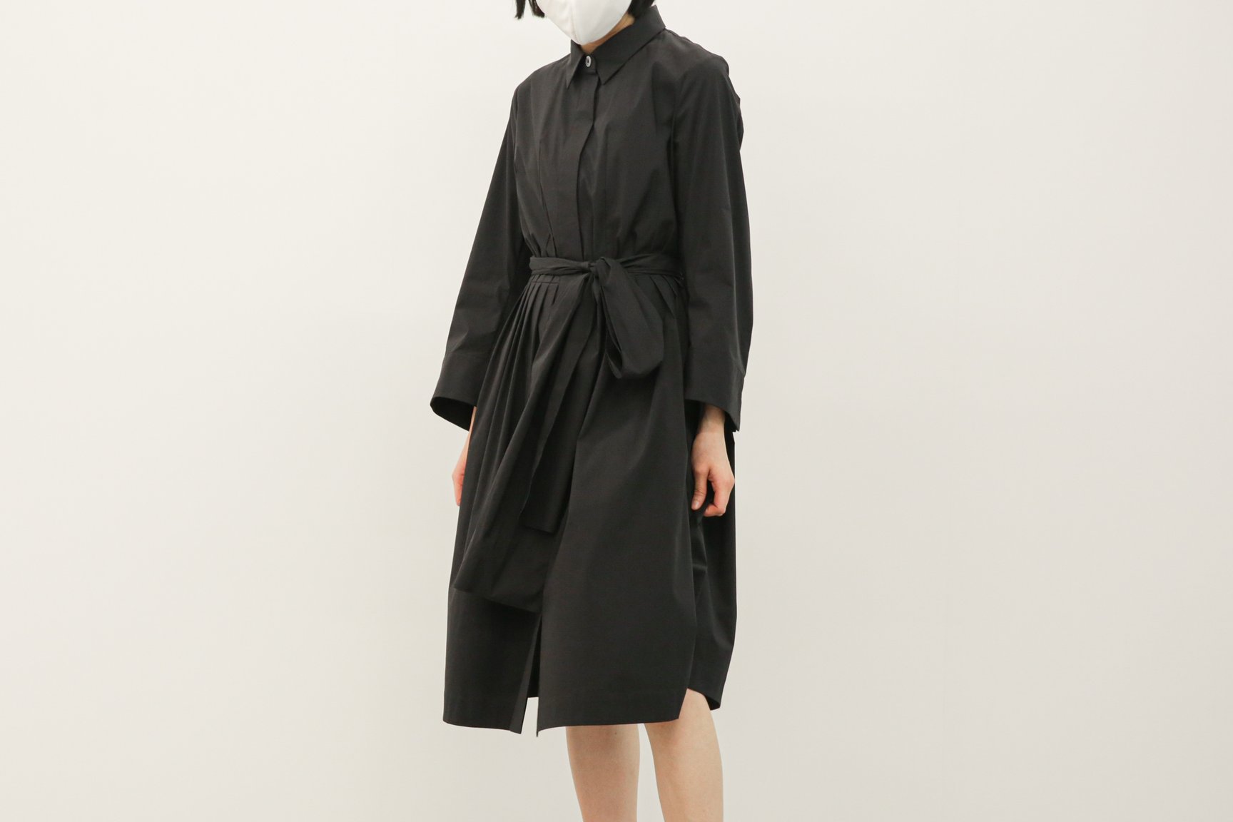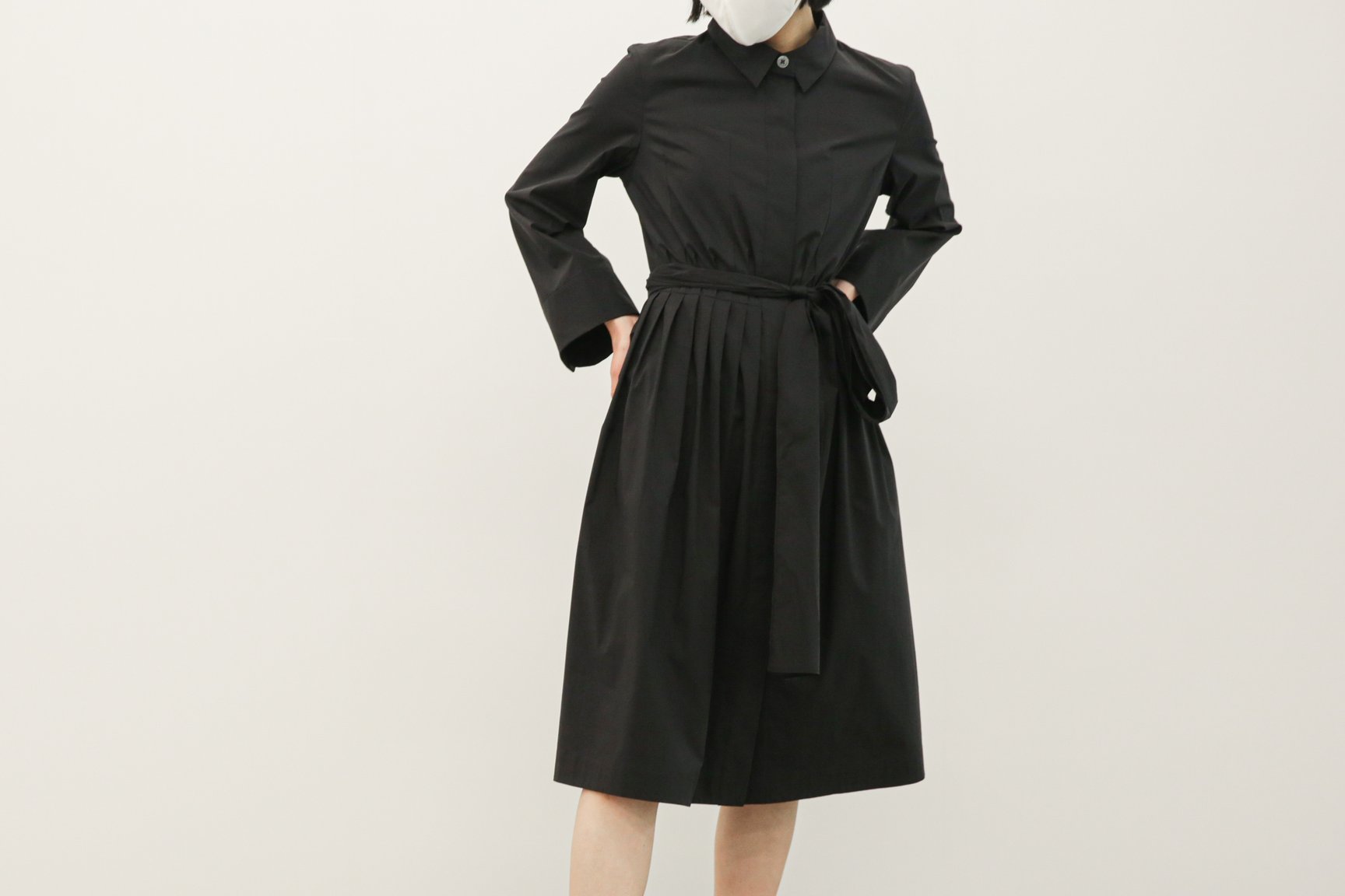 編集A:ハードめのブーツと合わせたいですね。そういえば先シーズン、ウィメンズのシャツワンピースをインターンの男の子が買っていて、コートみたいに羽織っているのを見かけたんですよ。ユニセックスで着用できるんだなと印象に残っていて。今回は秋冬と比べて、よりフェミニンなテイストを打ち出していますね。裾も綺麗なフレアが出ていますし。ブラックとダークグレーあたりはシーン問わず着れそうです。