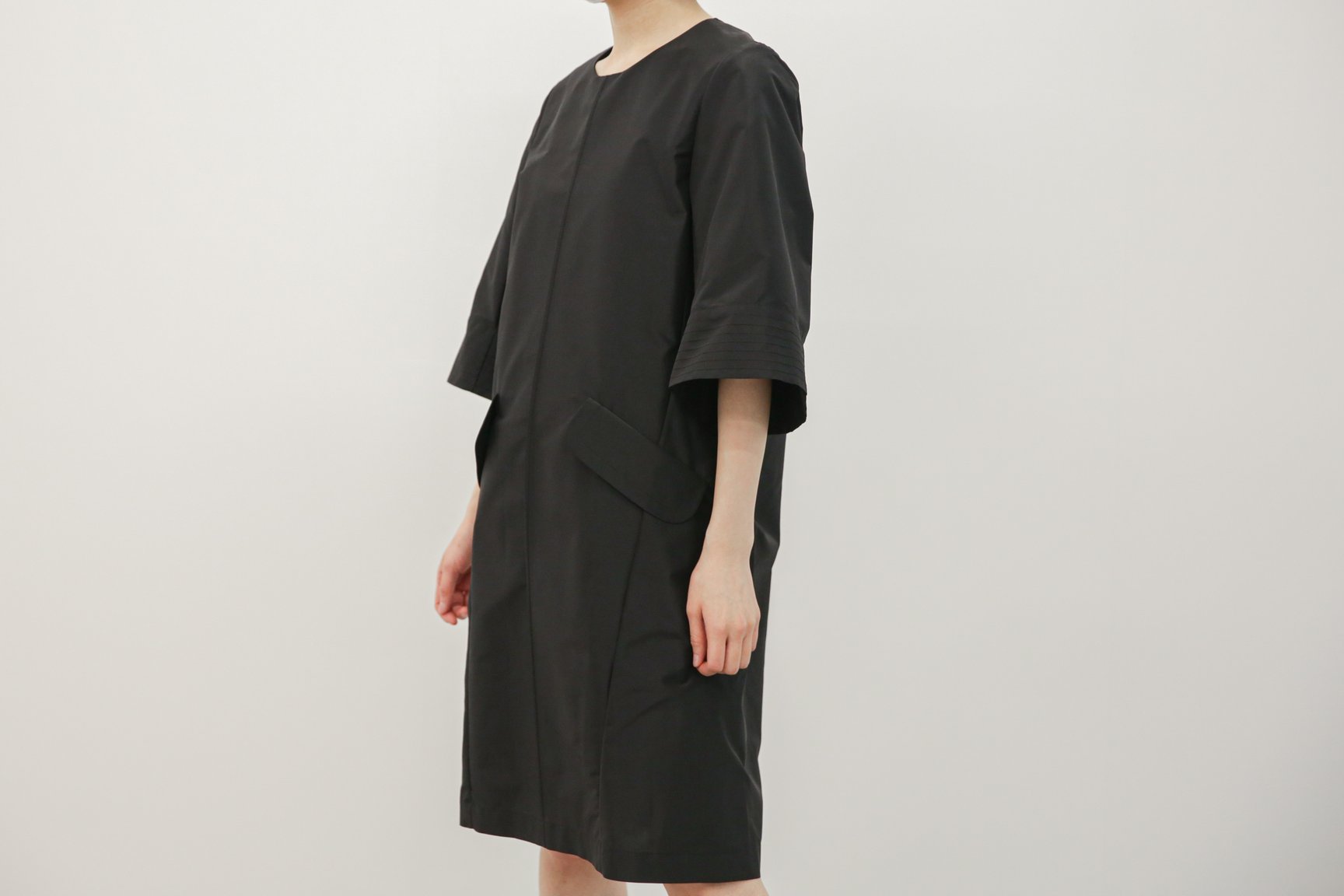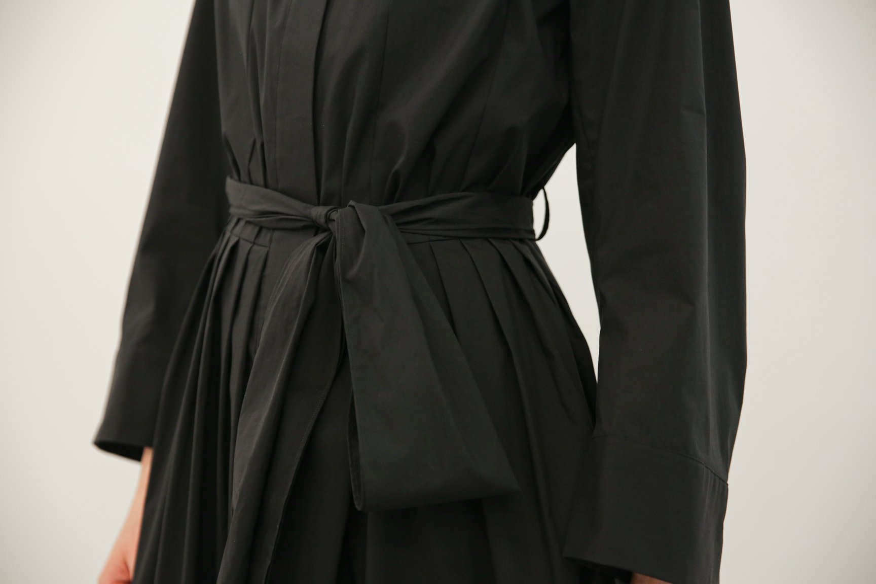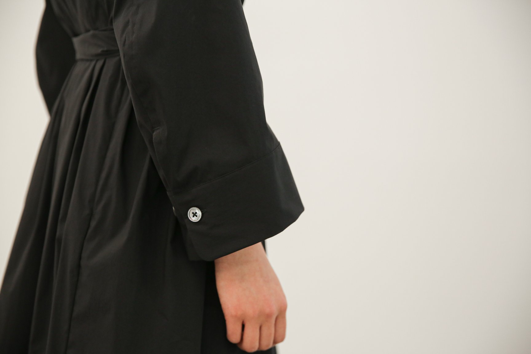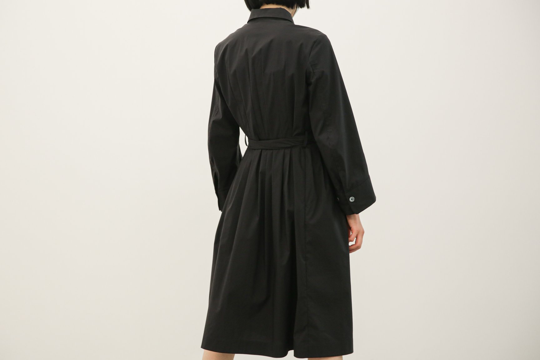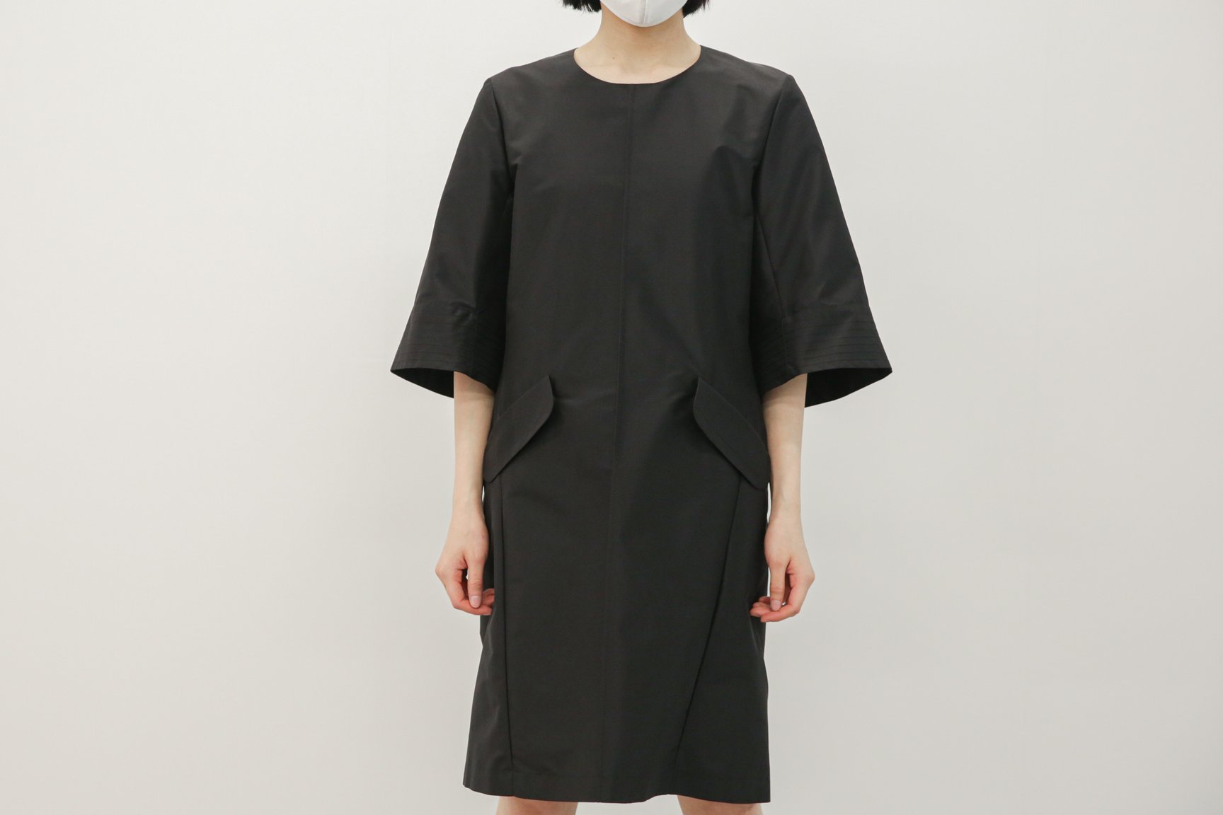 編集A:ハードめのブーツと合わせたいですね。そういえば先シーズン、ウィメンズのシャツワンピースをインターンの男の子が買っていて、コートみたいに羽織っているのを見かけたんですよ。ユニセックスで着用できるんだなと印象に残っていて。今回は秋冬と比べて、よりフェミニンなテイストを打ち出していますね。裾も綺麗なフレアが出ていますし。ブラックとダークグレーあたりはシーン問わず着れそうです。