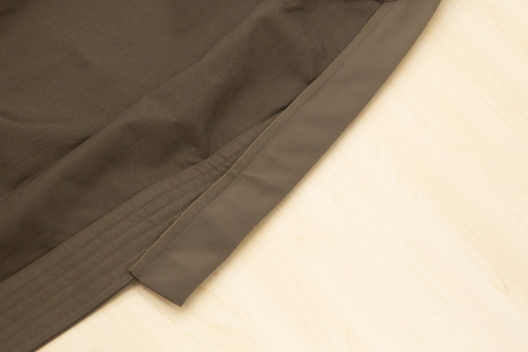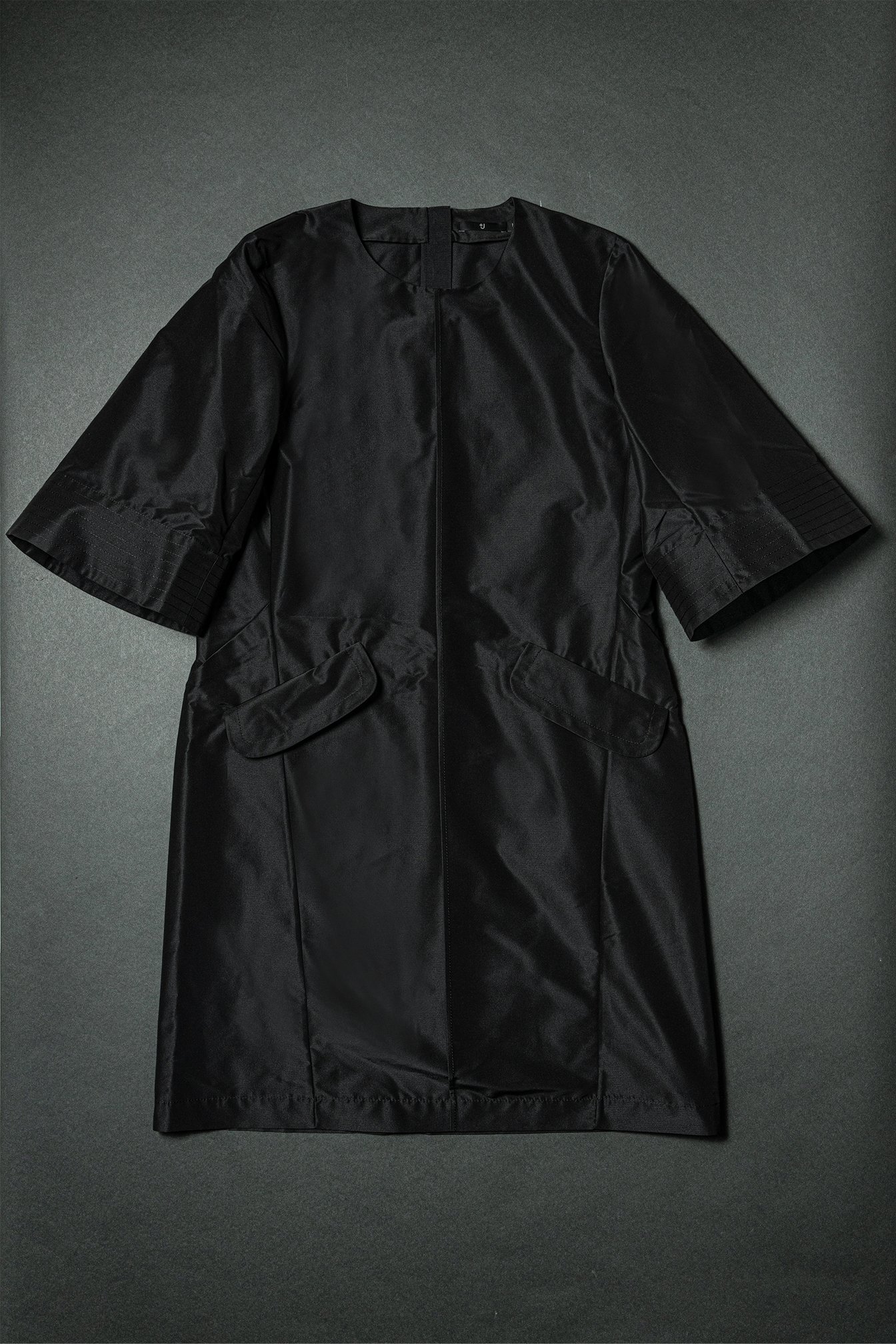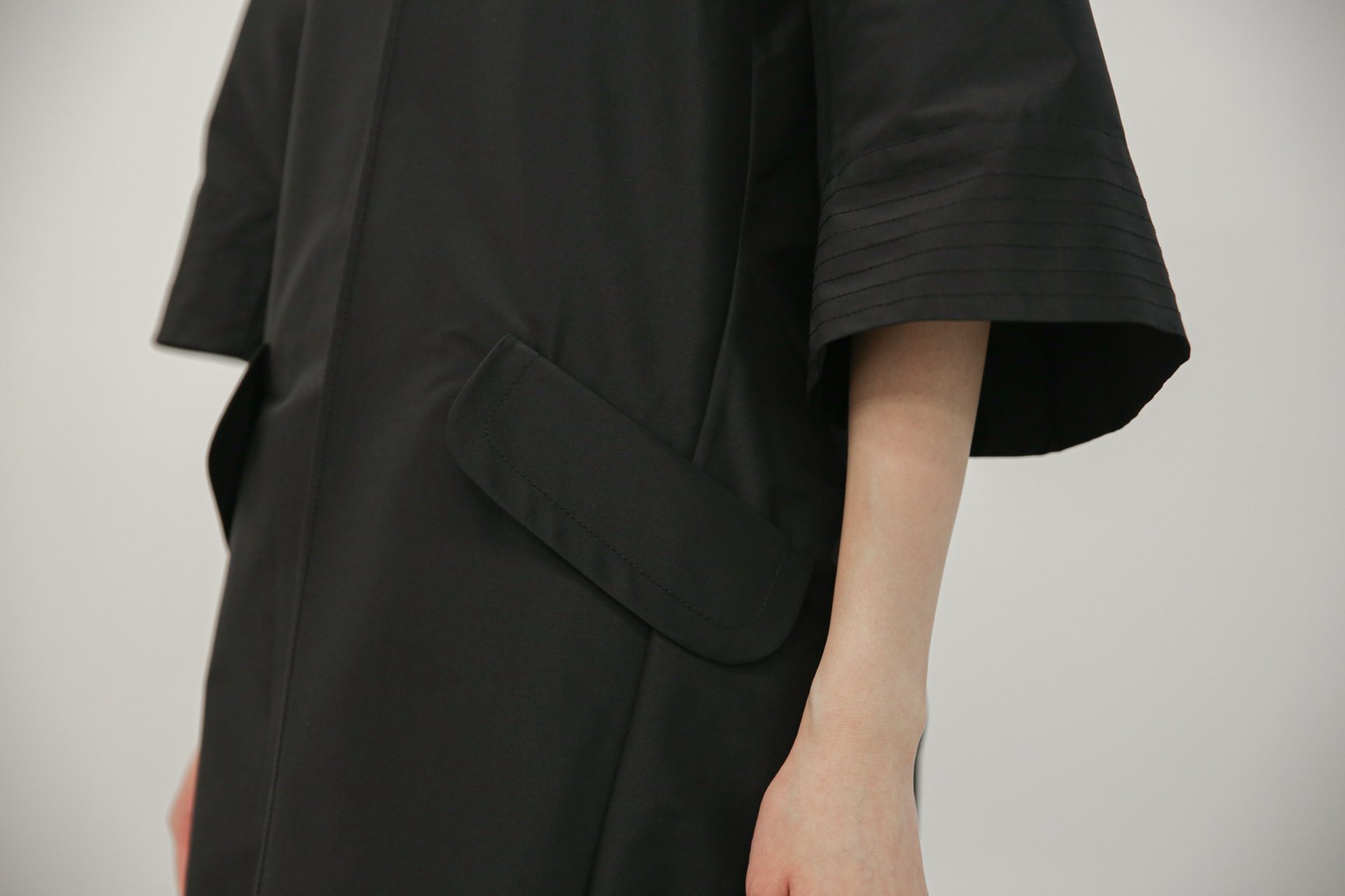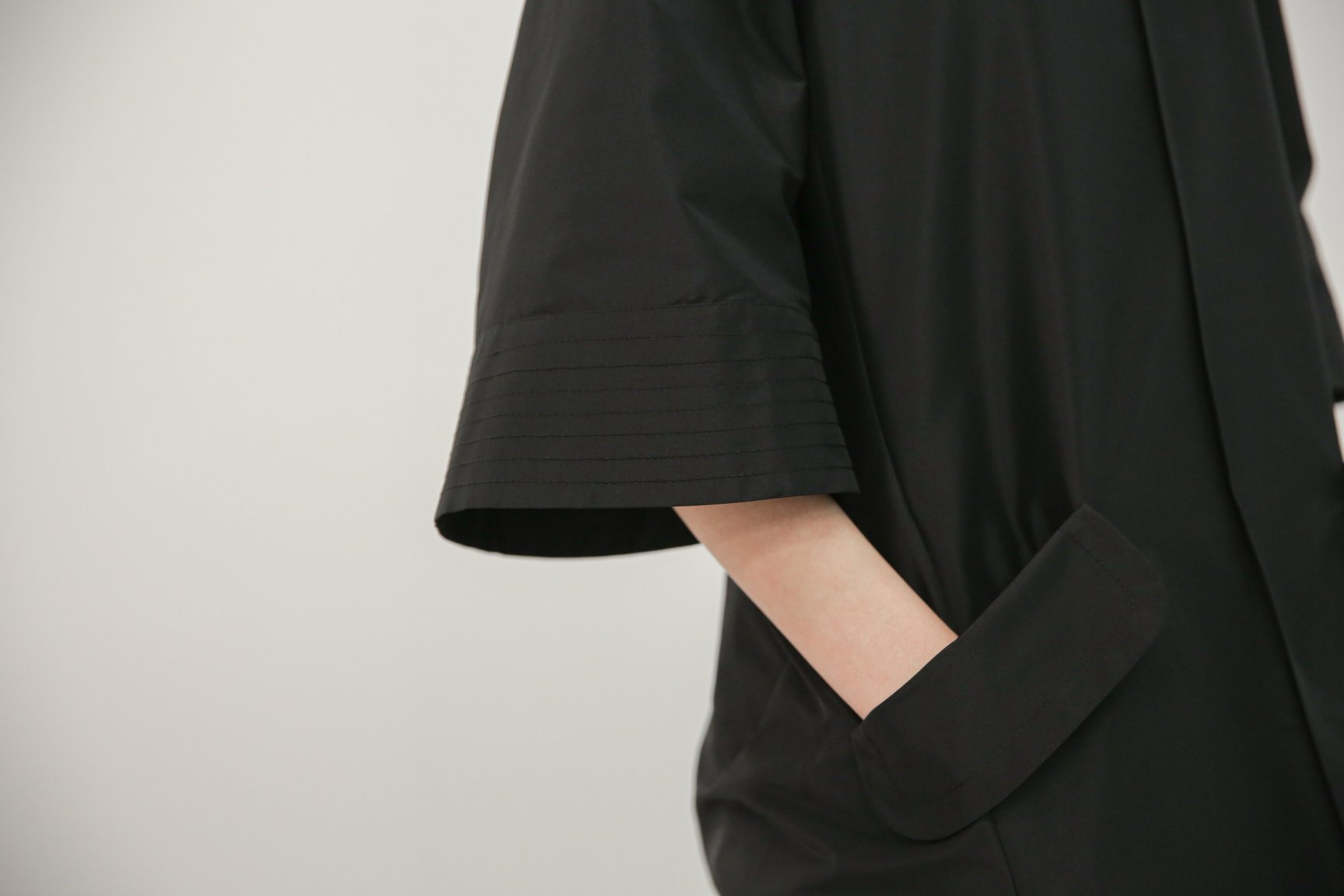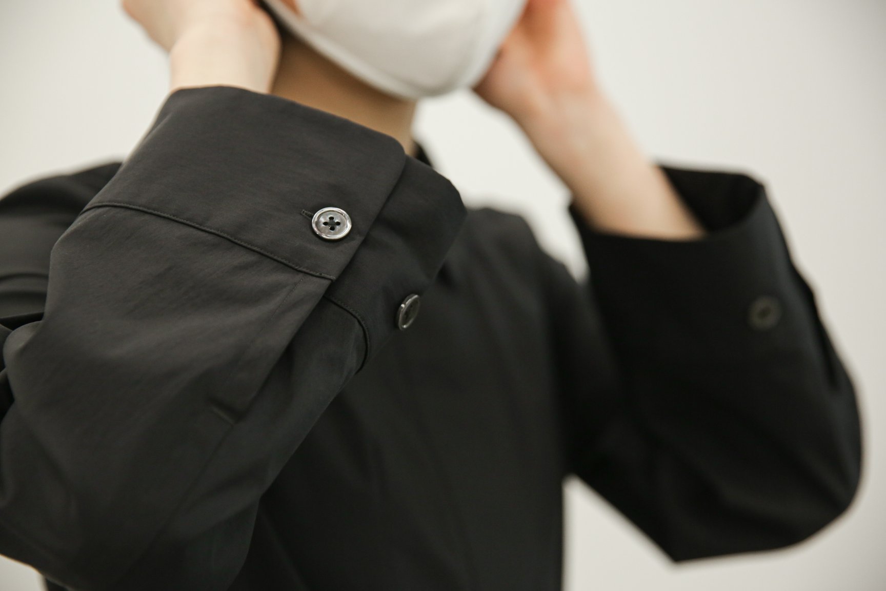 編集A:ハードめのブーツと合わせたいですね。そういえば先シーズン、ウィメンズのシャツワンピースをインターンの男の子が買っていて、コートみたいに羽織っているのを見かけたんですよ。ユニセックスで着用できるんだなと印象に残っていて。今回は秋冬と比べて、よりフェミニンなテイストを打ち出していますね。裾も綺麗なフレアが出ていますし。ブラックとダークグレーあたりはシーン問わず着れそうです。
